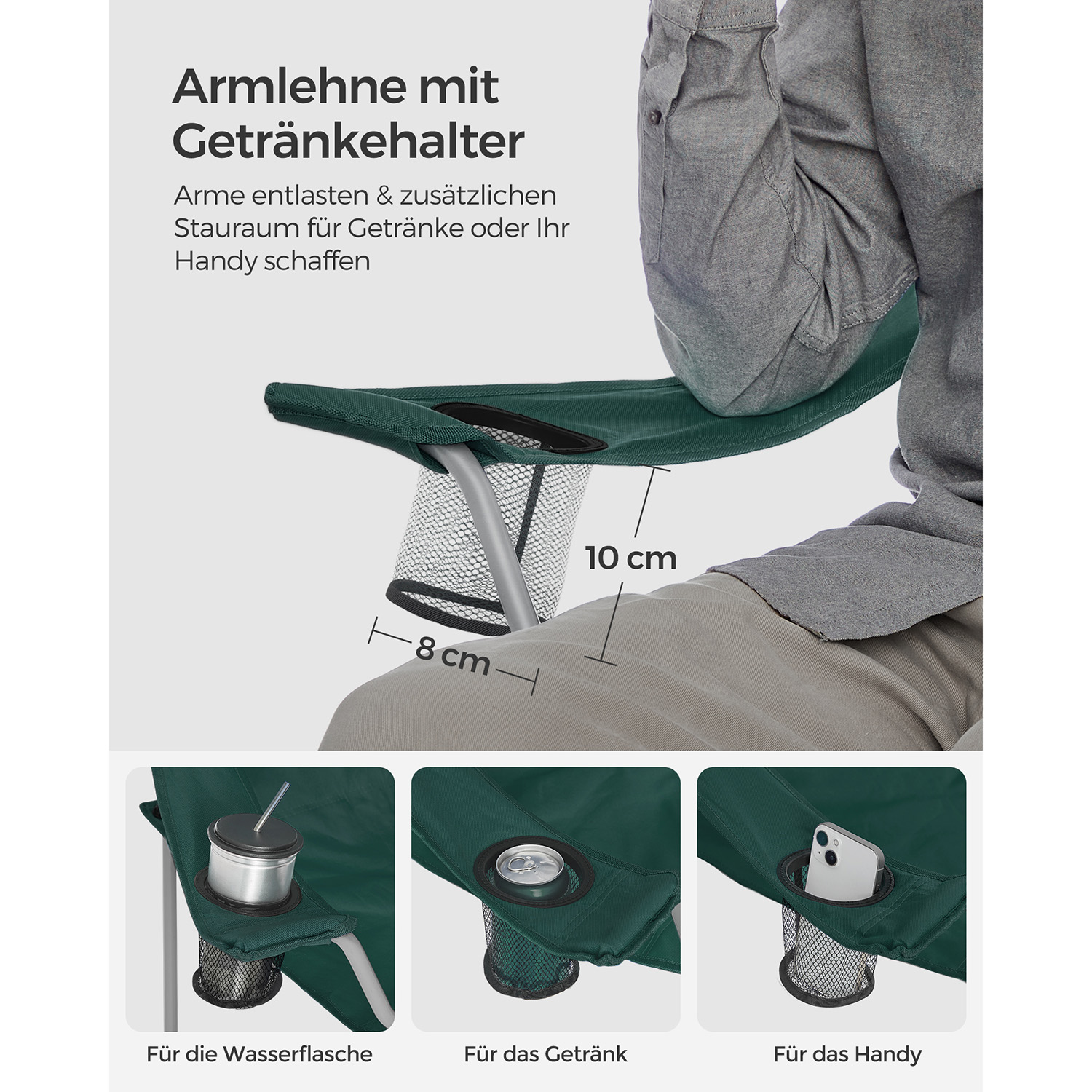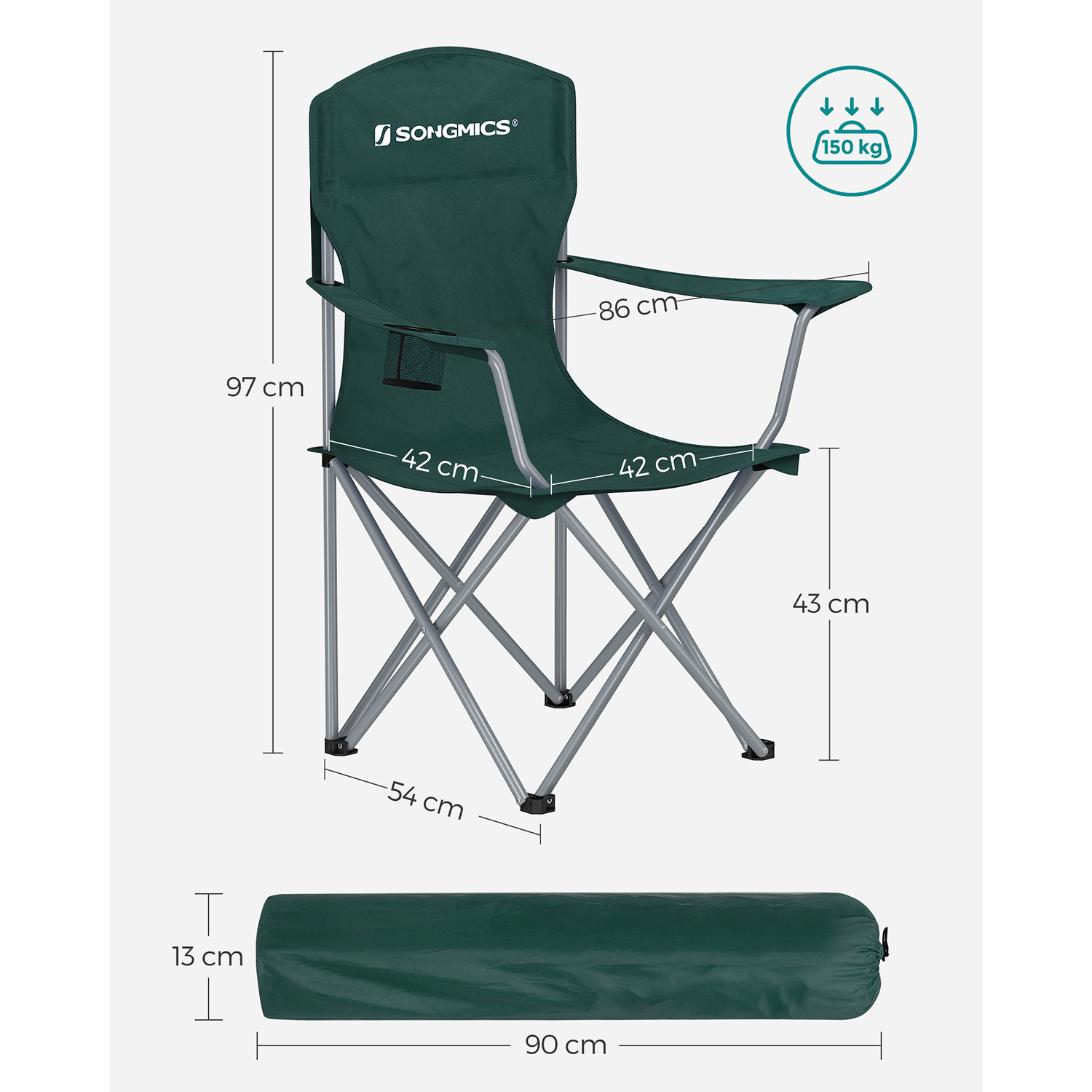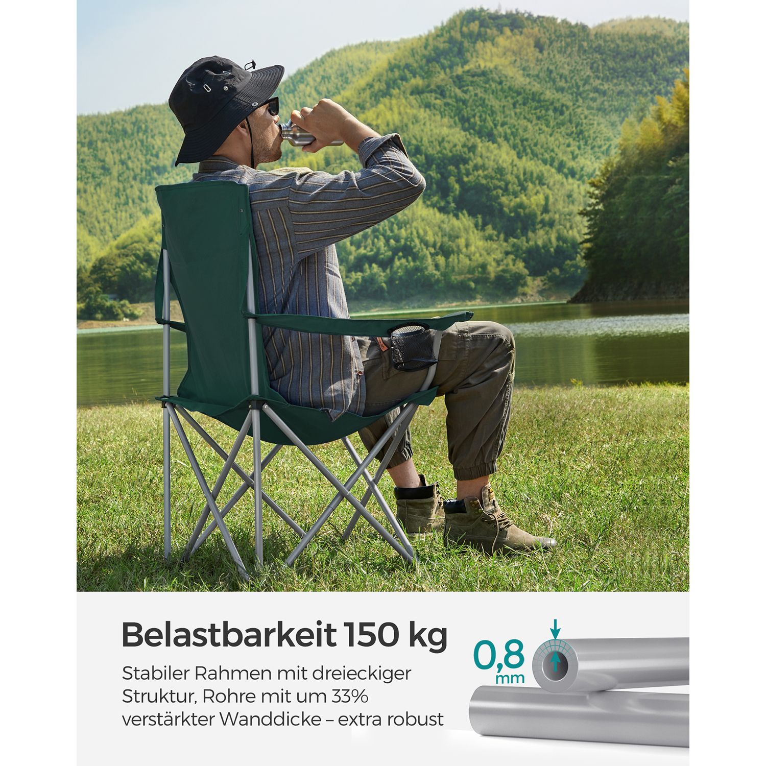 SONGMICS camping chair, set of 2, foldable, comfortable, folding chair with sturdy frame, load capacity up to 150 kg, with bottle holder, outdoor chair, blue GCB08BU, XL