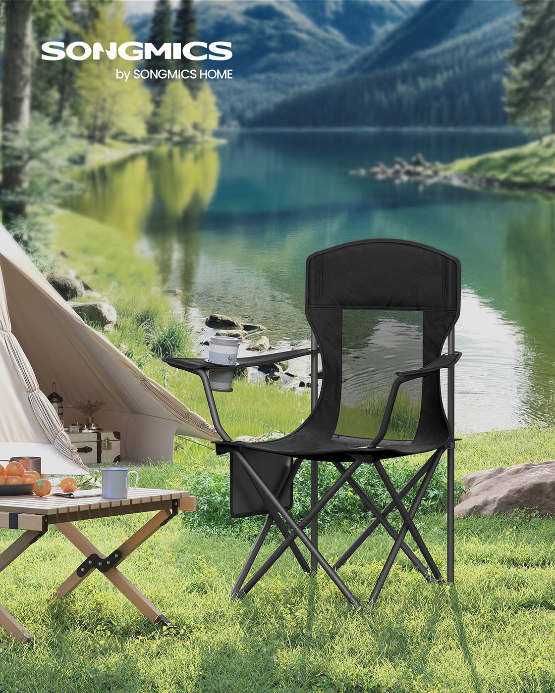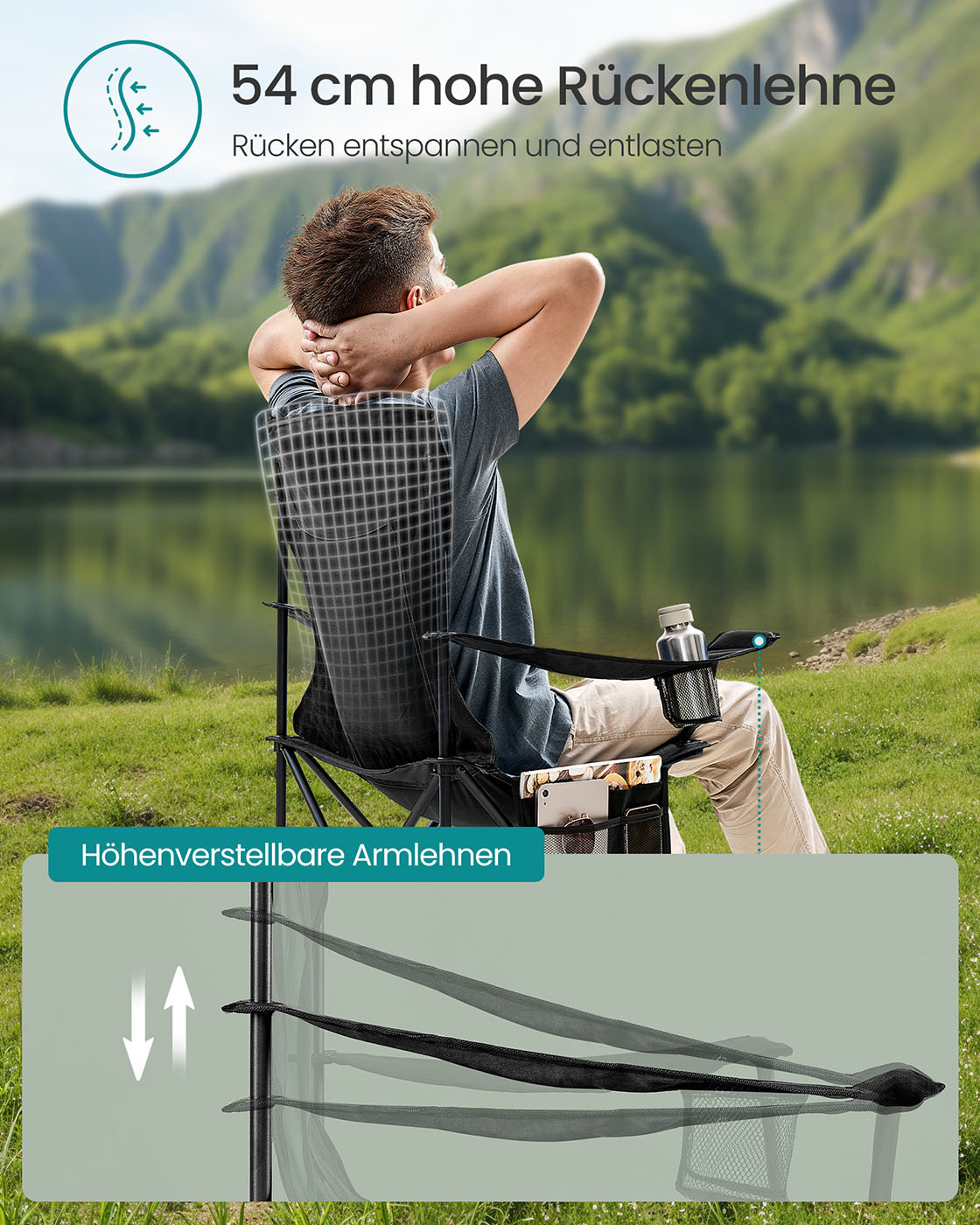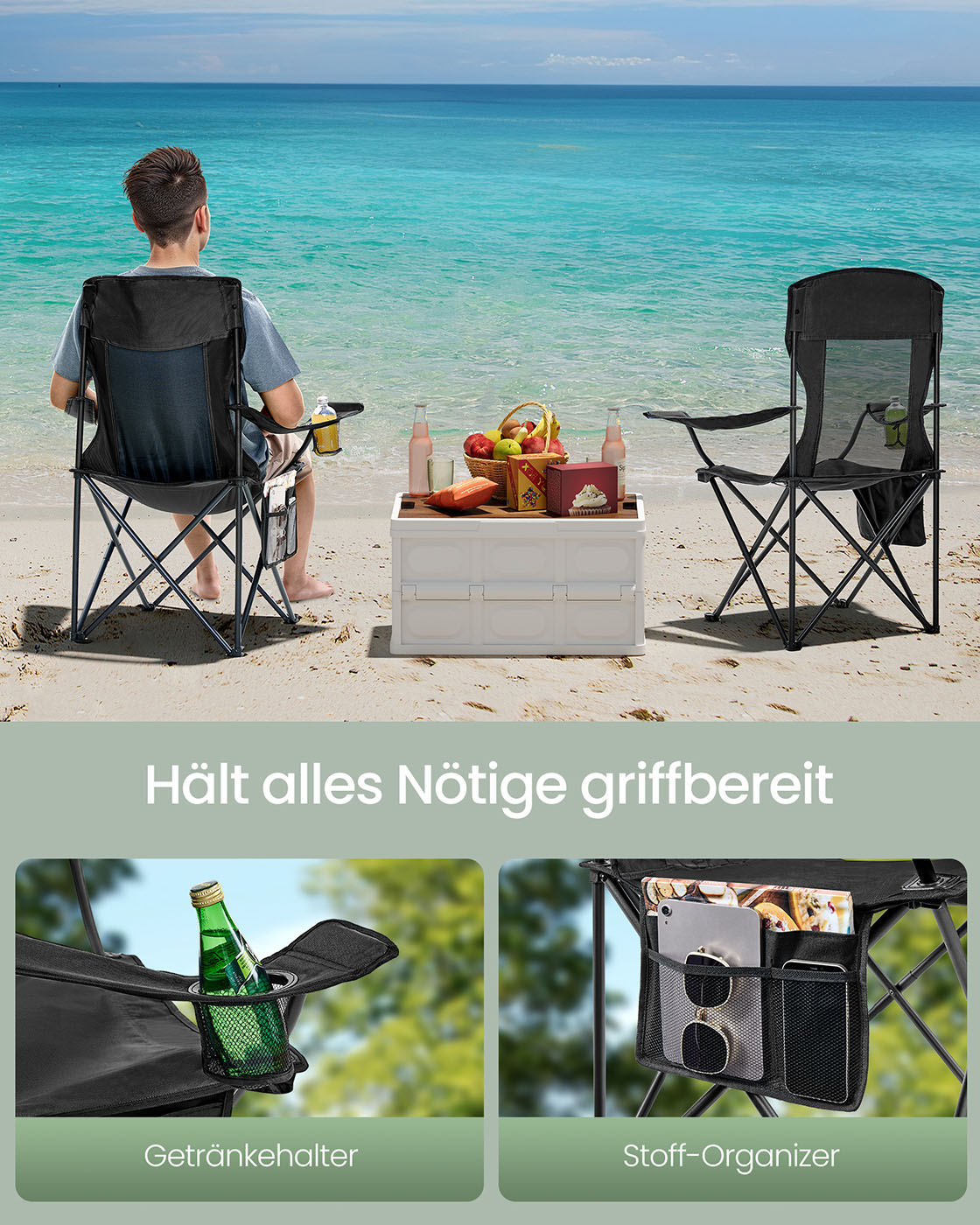 SONGMICS Camping Chair 2-Piece Set, Folding Chair Outdoor, Fishing Chair, High Backrest, Adjustable Armrests, Cup Holder, Foldable, Load Capacity up to 150 kg, Camping Garden