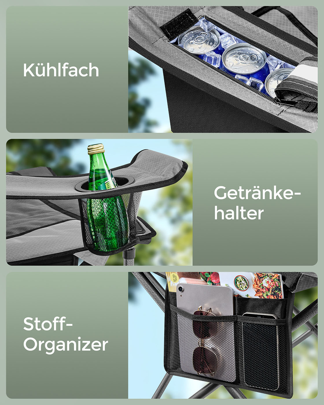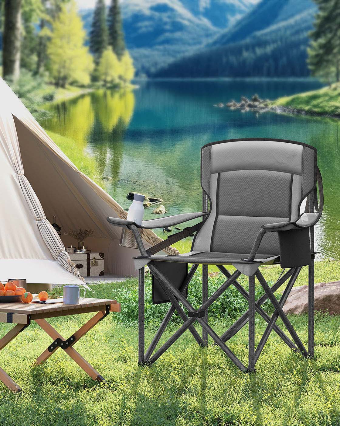 SONGMICS camping chair, folding chair with drink holder, fishing chair, foam padding, foldable, load capacity up to 205 kg, outdoor chair, high backrest