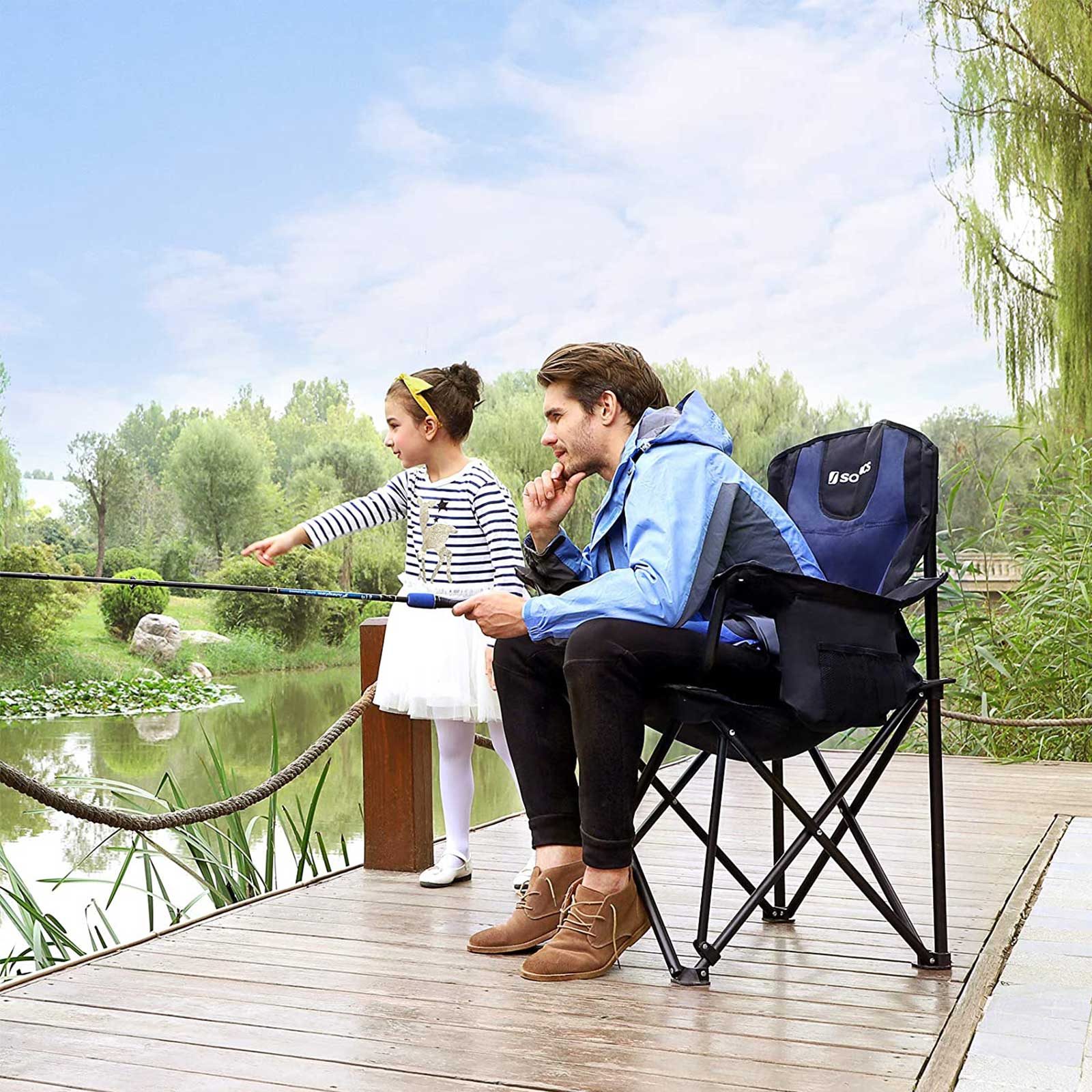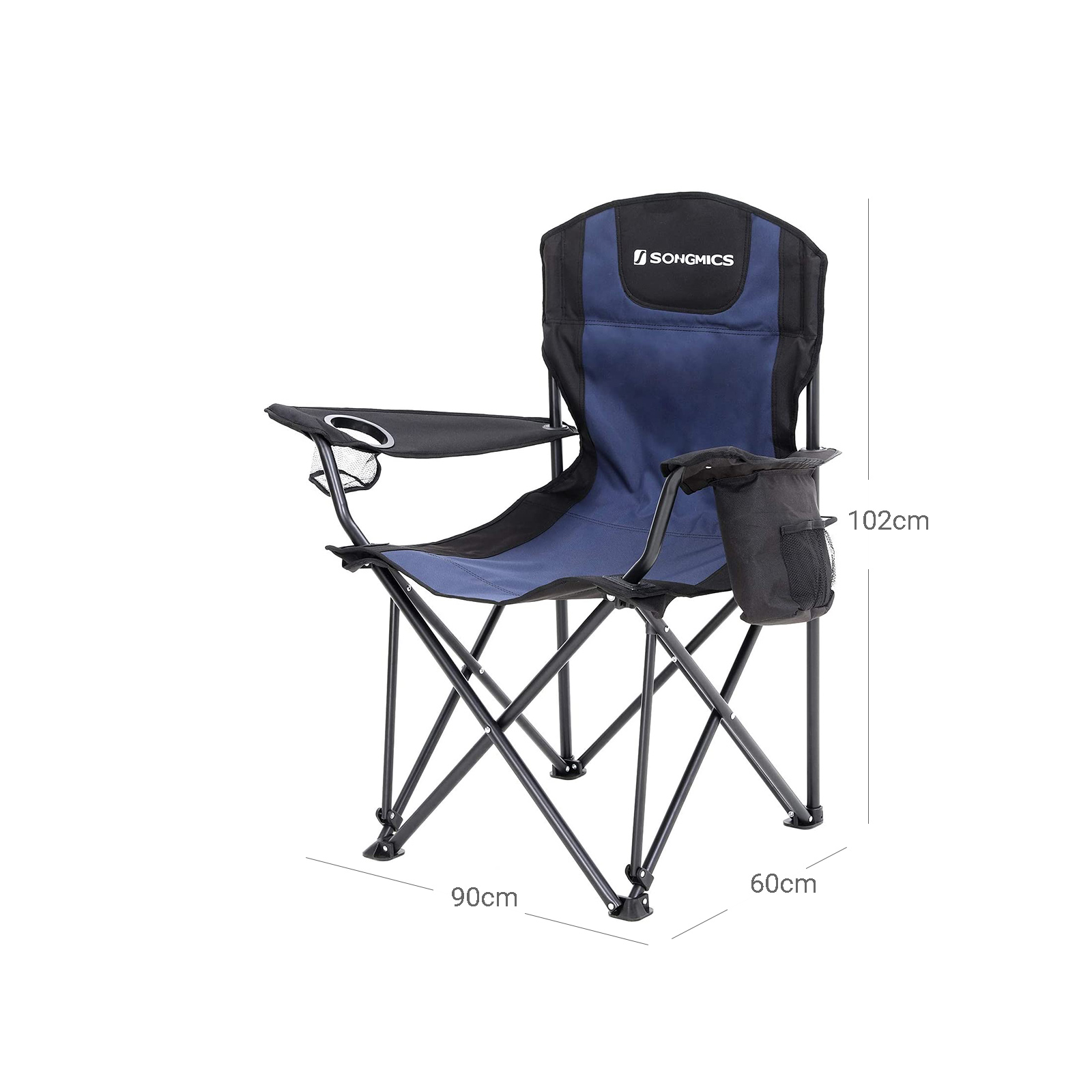 SONGMICS has developed a range of outdoor chairs to increase your comfort when relaxing on the beach, at the campsite, or in the garden. Enjoy your vacation! Fits anywhere This versatile camping chair is perfect for camping. However, if you are a passionate angler, you can also take it with you to the river or the sea. This folding chair is also ideal if you want to have a picnic in the park with your family. Comfortable and practical Enjoying your free time to the fullest after a long day at work is sometimes just what you need! Sit down on this comfortable camping chair, which has foam-padded armrests and a high backrest. Planning a camping vacation in nature? This chair weighs only 5.5 kg! Simply fold it up, put it in the included carrying bag, and carry it over your shoulder; then let the adventure begin! If you are a nature and outdoor lover, check out the other outdoor chairs from SONGMICS! Product details:- Color: Red and black – Material: 600D Oxford fabric, powder-coated iron tubes, foam – Dimensions: 90 x 60 x 103 cm (L x W x H) – Weight: 5.5 kg – Max. load capacity: 150 kg Scope of delivery: – 1 x camping chair – 1 x carrying bag SONGMICS notes:- The product must not come into contact with sharp or pointed objects.