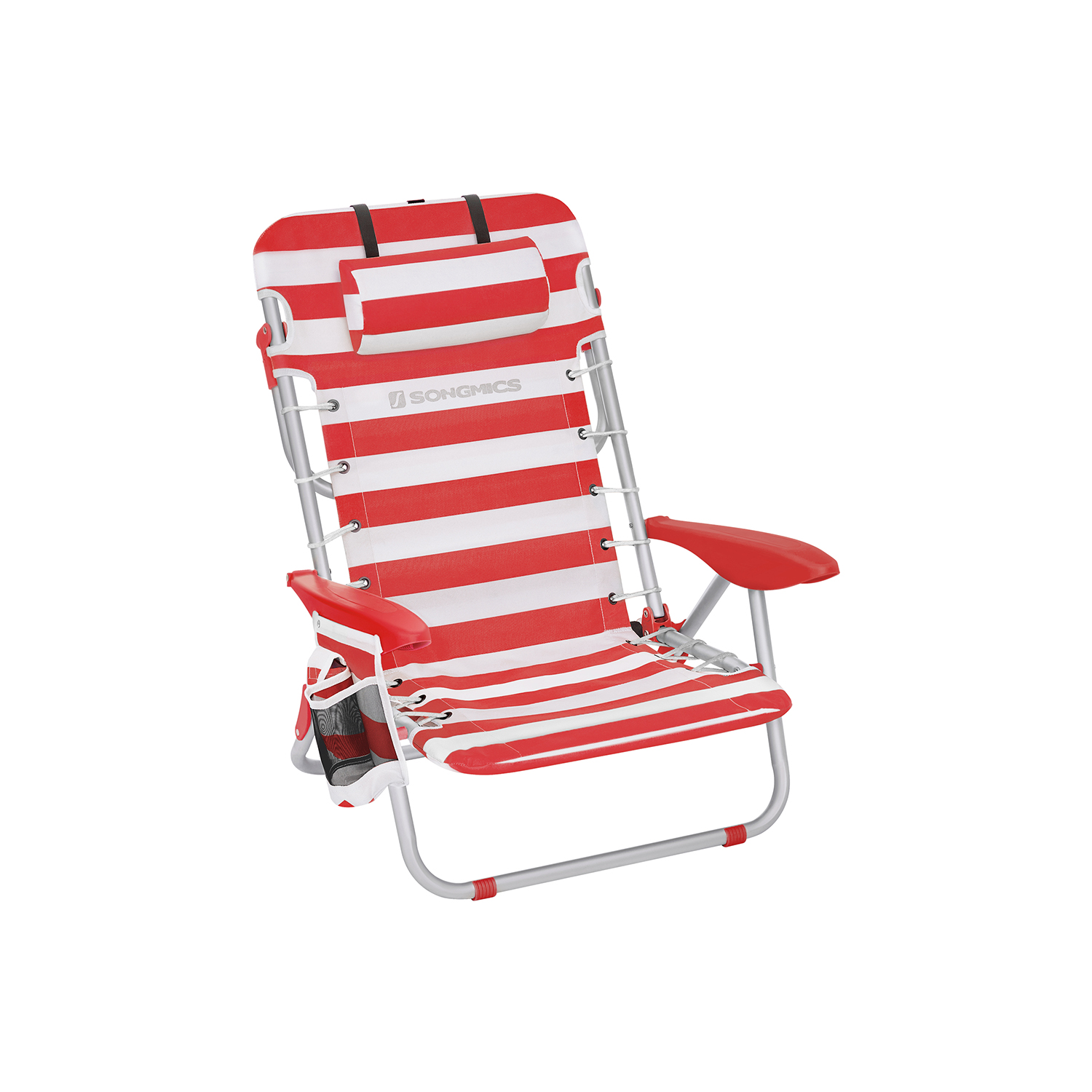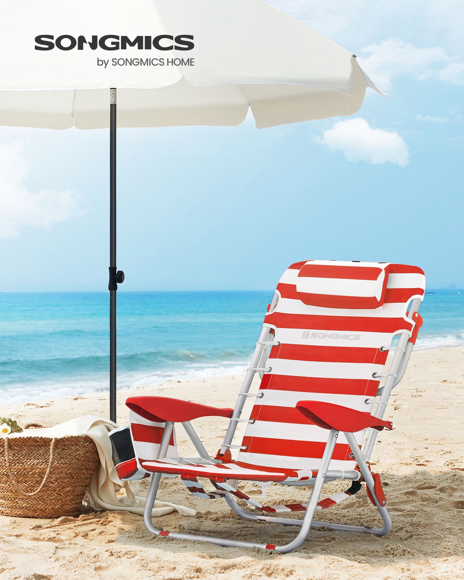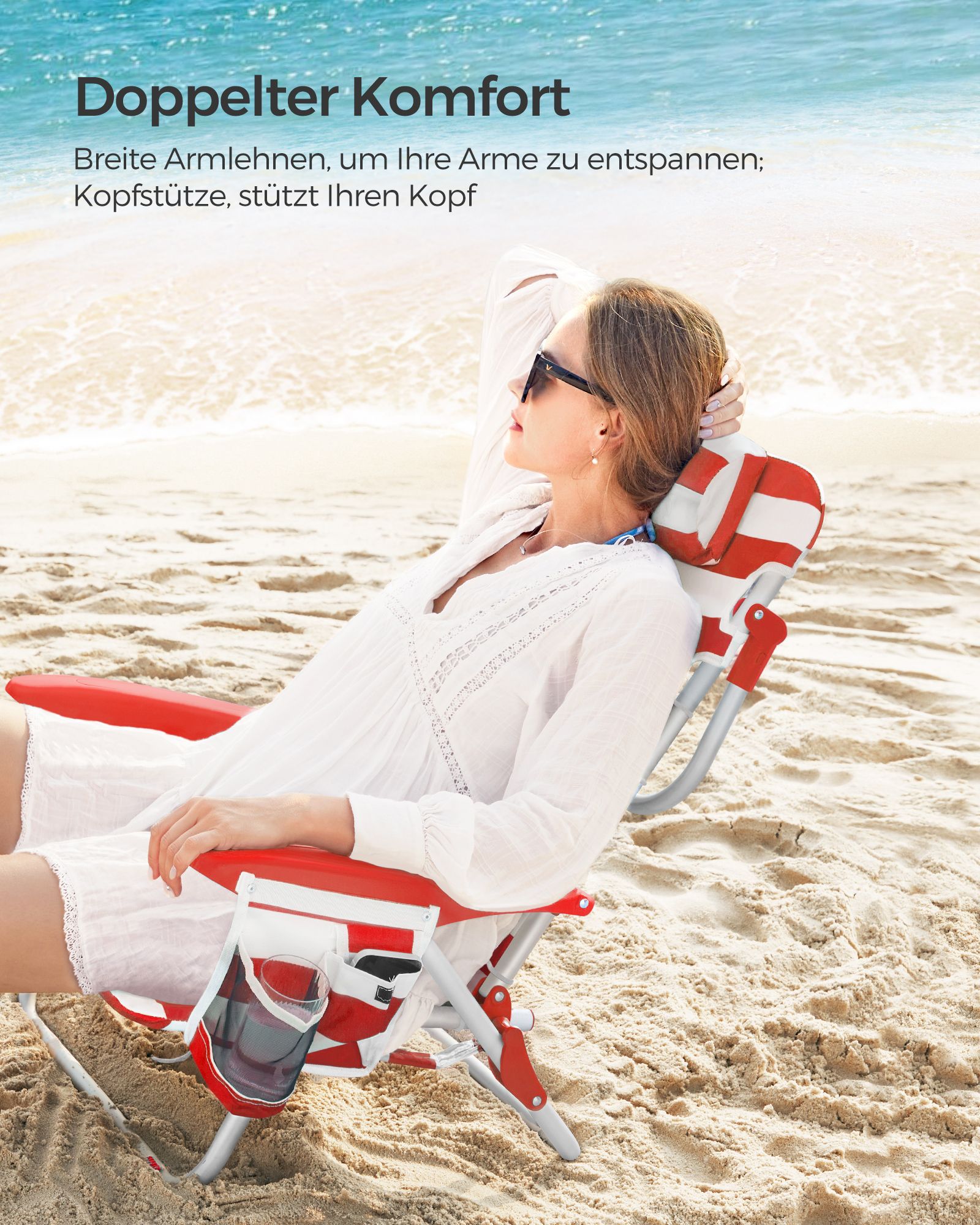 SONGMICS beach chair, camping chair, folding chair, outdoor chair, portable, with shoulder straps, foldable, adjustable backrest, with headrest, armrests, 2 side pockets