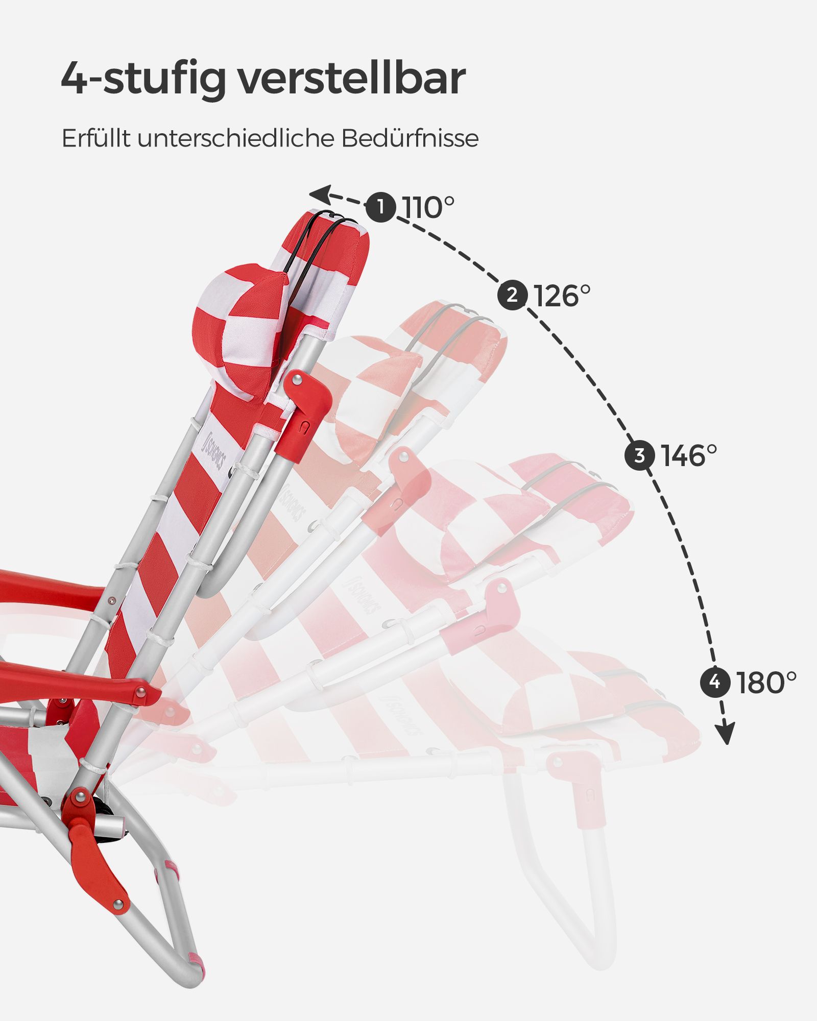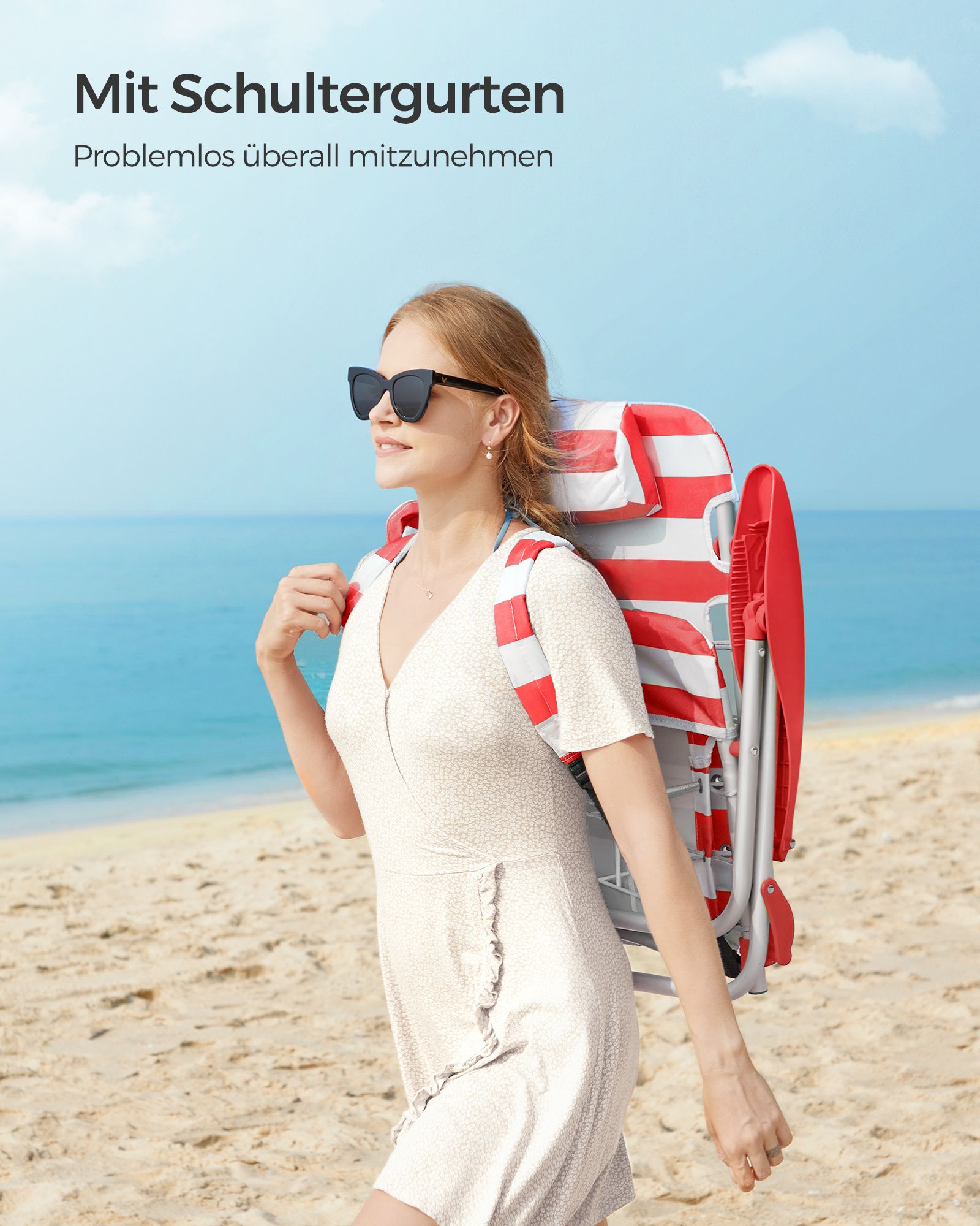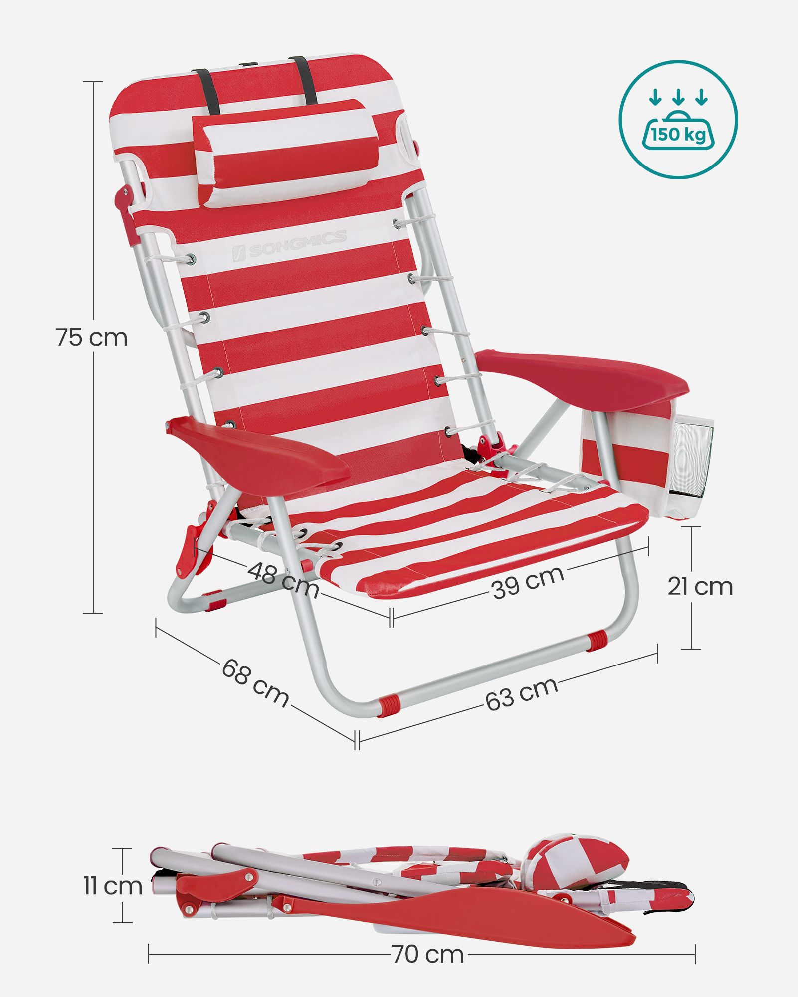 SONGMICS beach chair, camping chair, folding chair, outdoor chair, portable, with shoulder straps, foldable, adjustable backrest, with headrest, armrests, 2 side pockets
