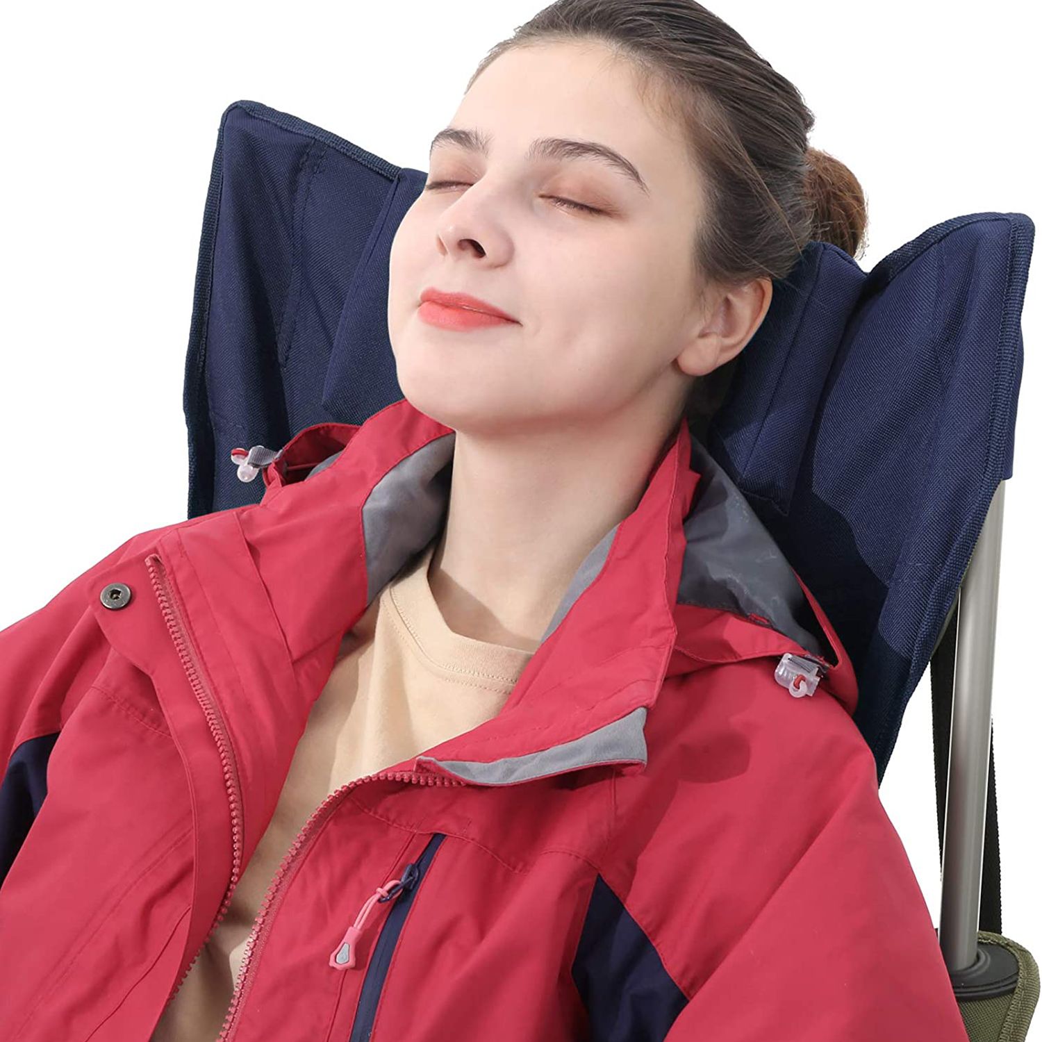 SONGMICS camping chair, folding chair, outdoor chair with armrests, headrest, and cup holders, sturdy frame, load capacity up to 150 kg, black GCB09BK