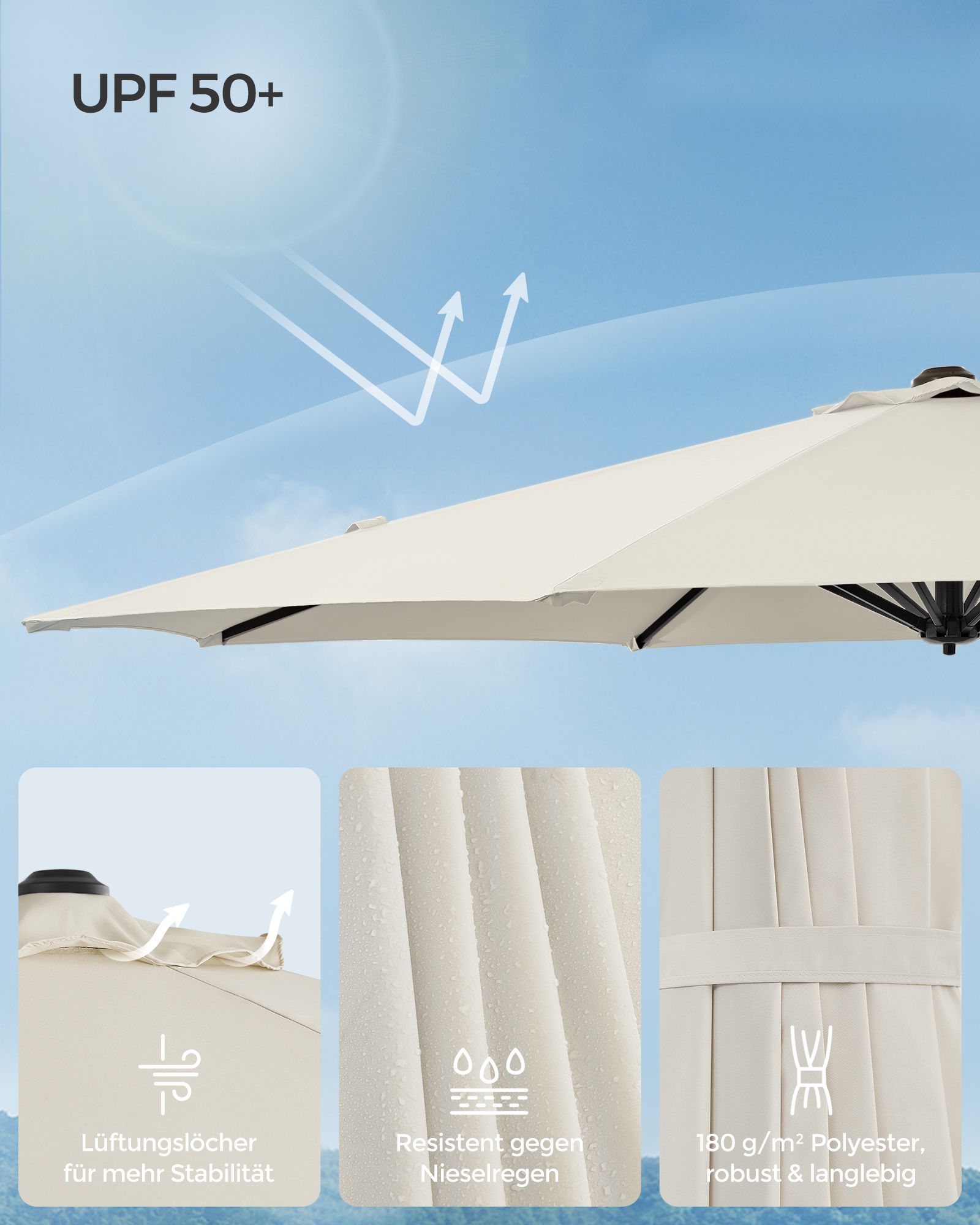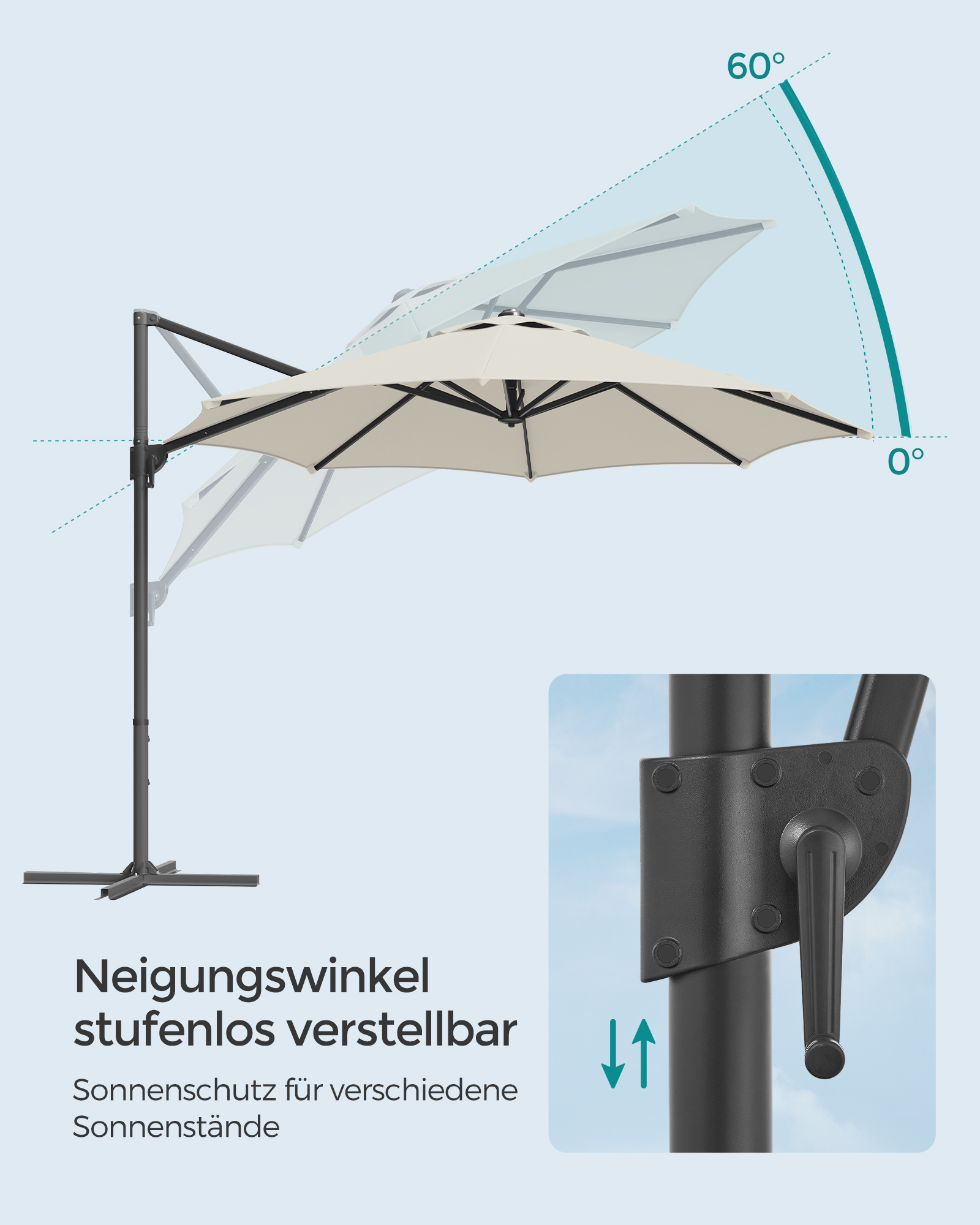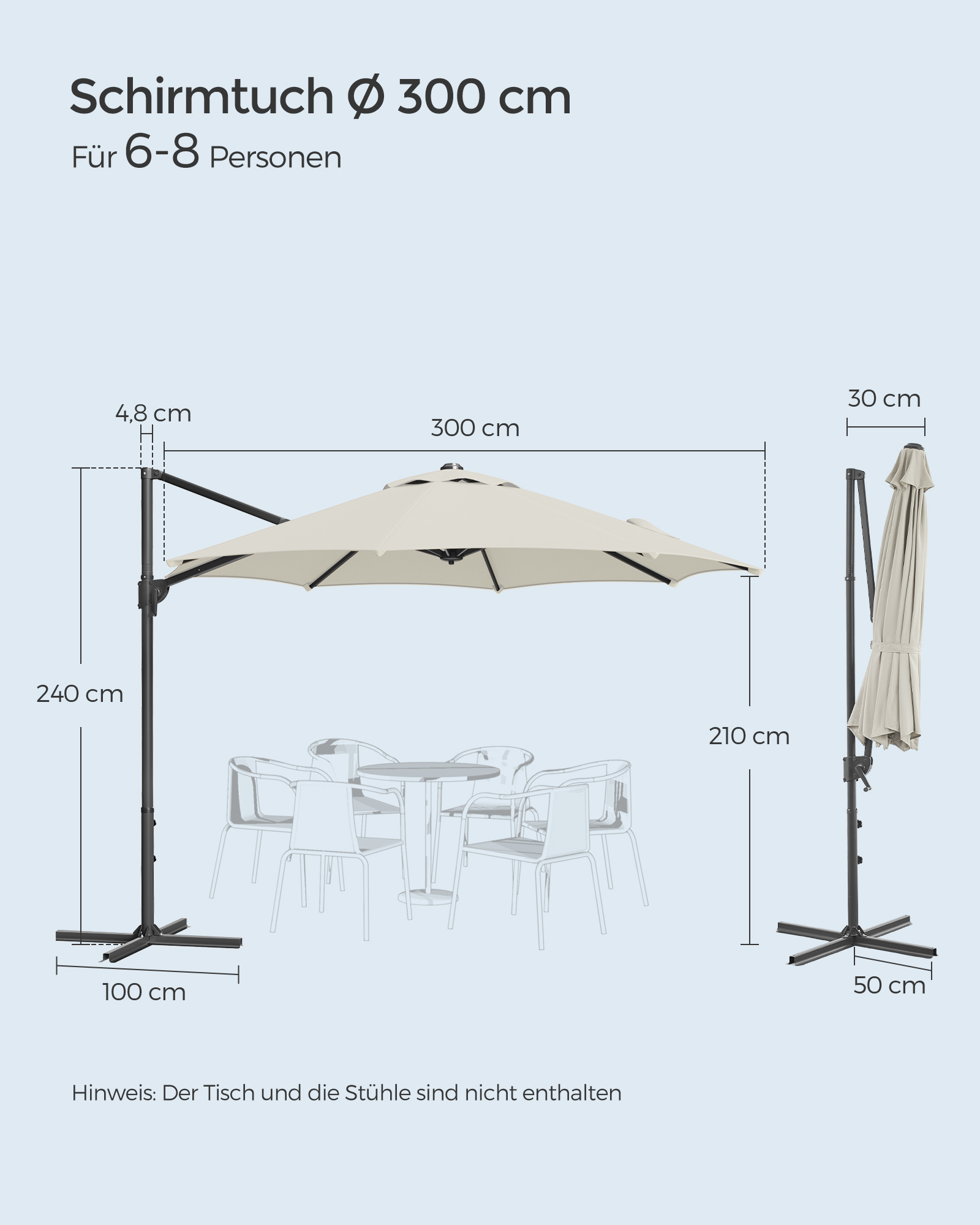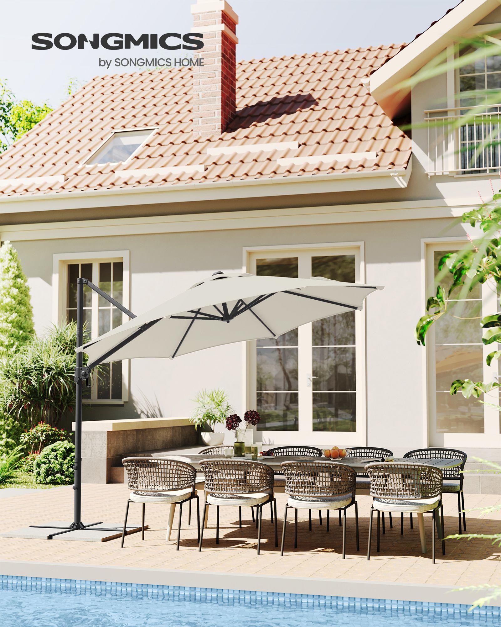 SONGMICS parasol, cantilever parasol, 300 cm, UPF 50+, garden parasol, 360° rotatable, continuously adjustable tilt angle, with crank, cross base