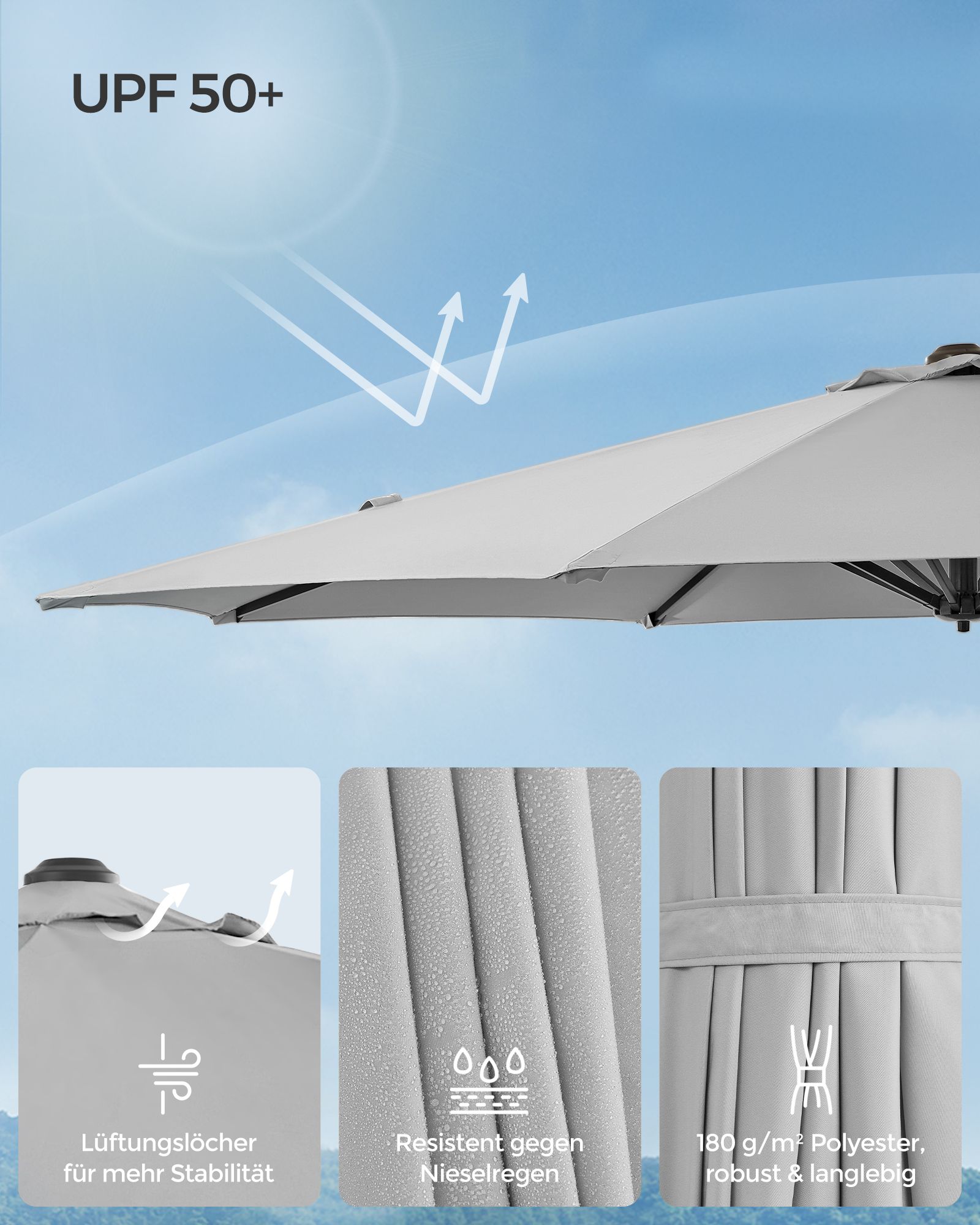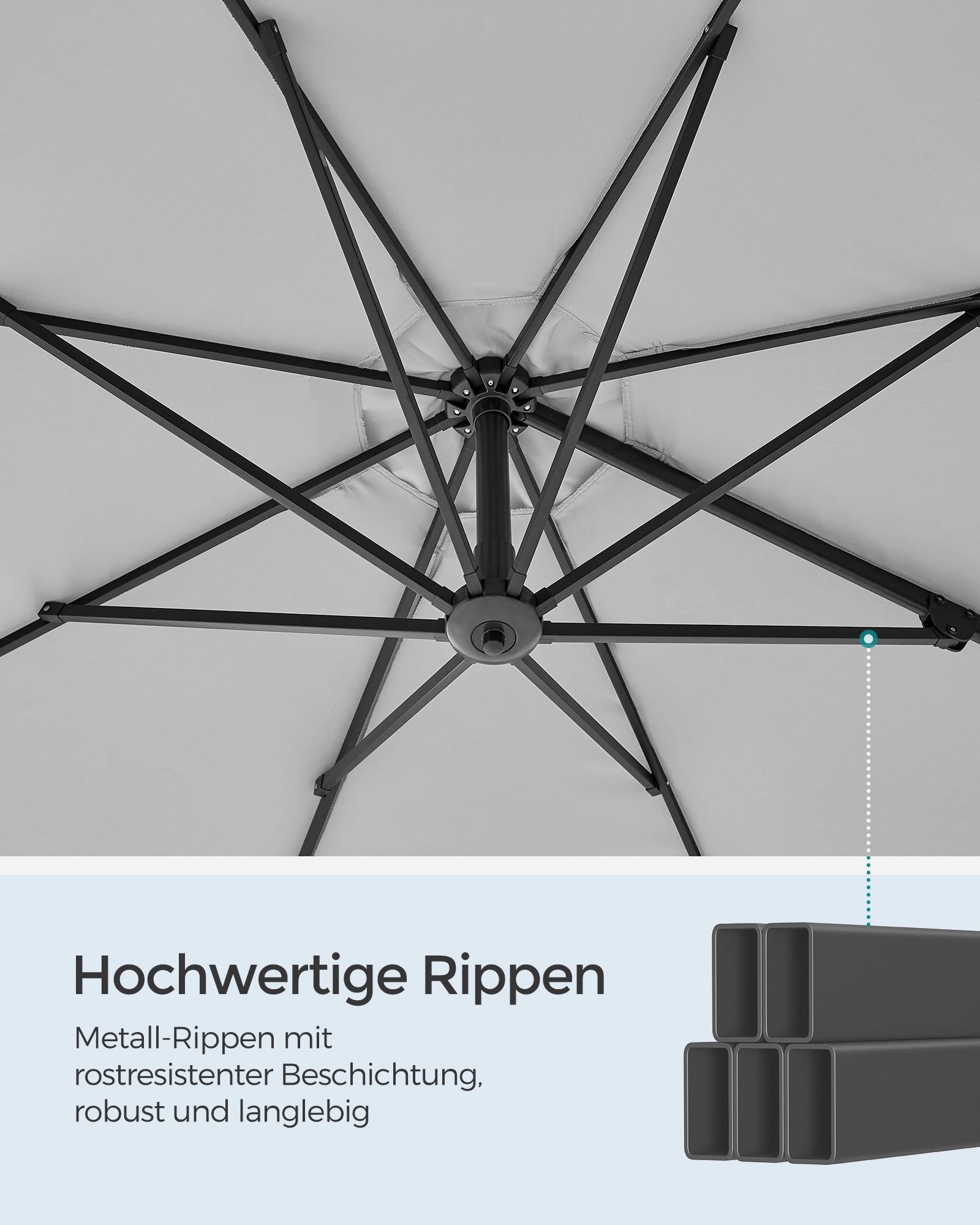 SONGMICS parasol, cantilever parasol, 300 cm, UPF 50+, garden parasol, 360° rotatable, continuously adjustable tilt angle, with crank, cross base