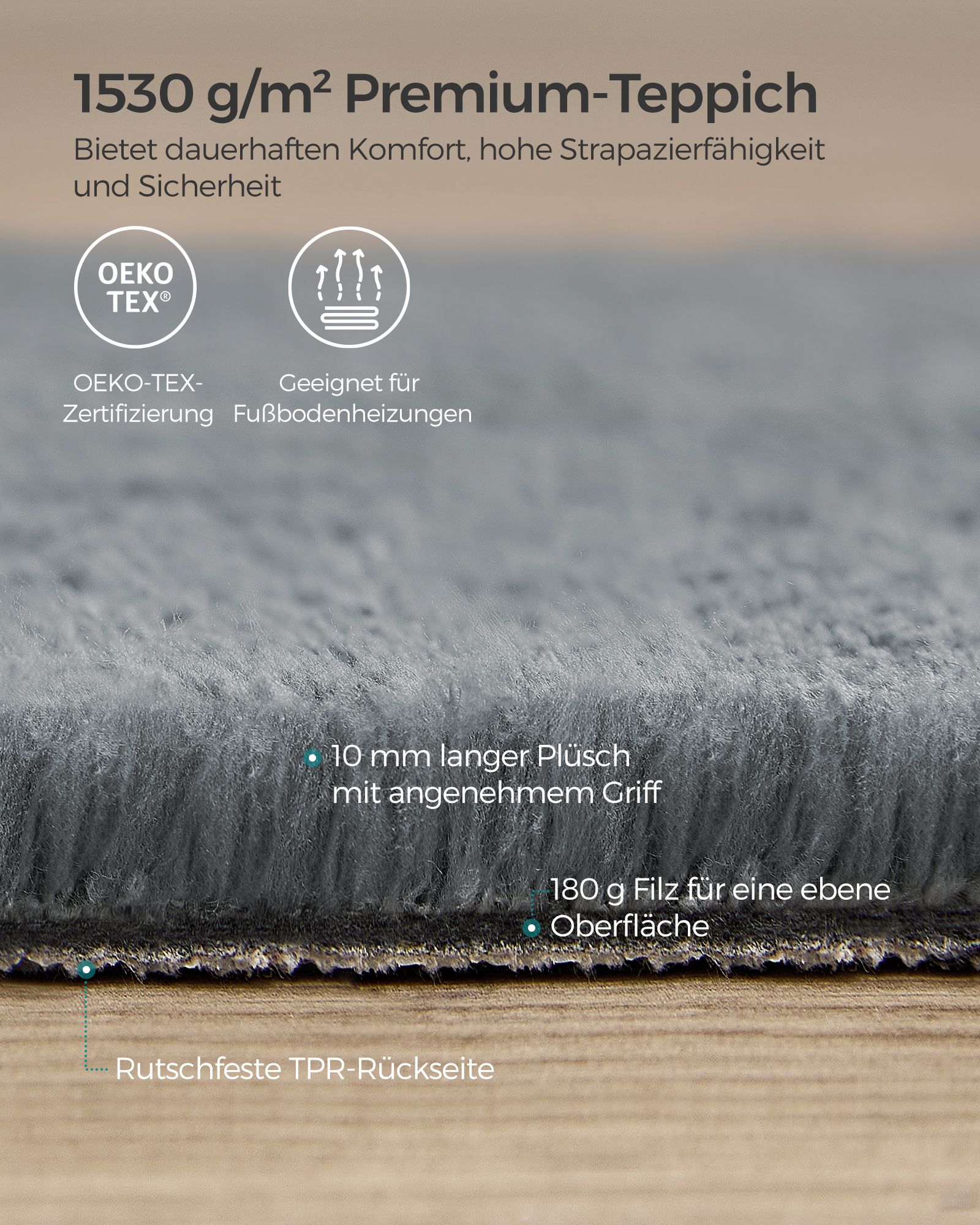SONGMICS Rug, 80 x 150 cm, Living Room Rug, Non-Slip Rug, Decoration, for Living Room, Bedroom, Children’s Room, Machine Washable, Super Soft, Modern, Dove Gray TAR011G01