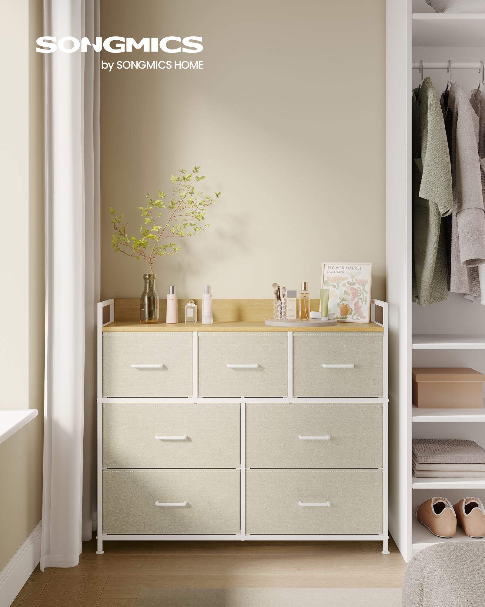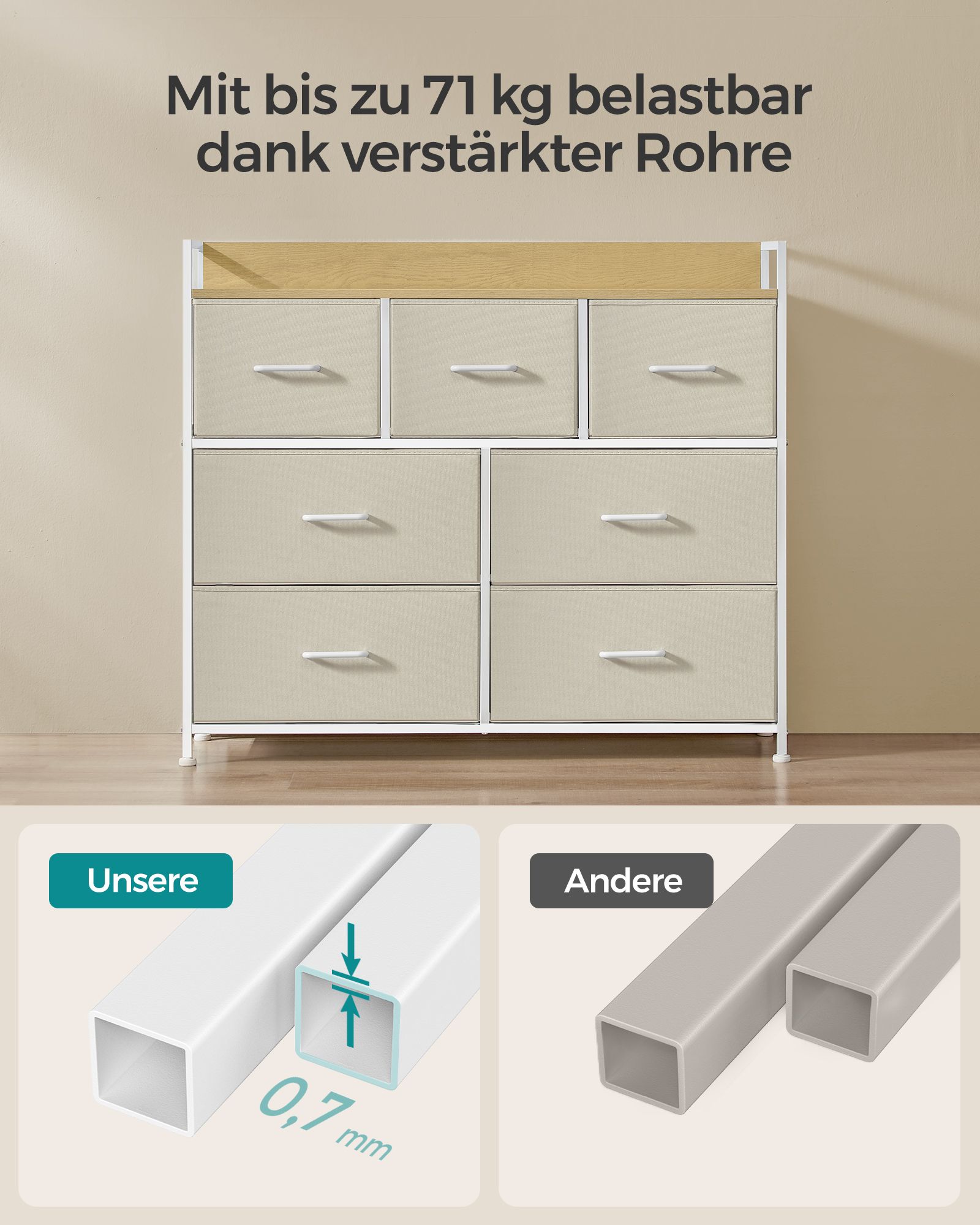 SONGMICS chest of drawers, cabinet, 7 fabric drawers with handles, metal frame, industrial design, vintage brown-black LTS137B01