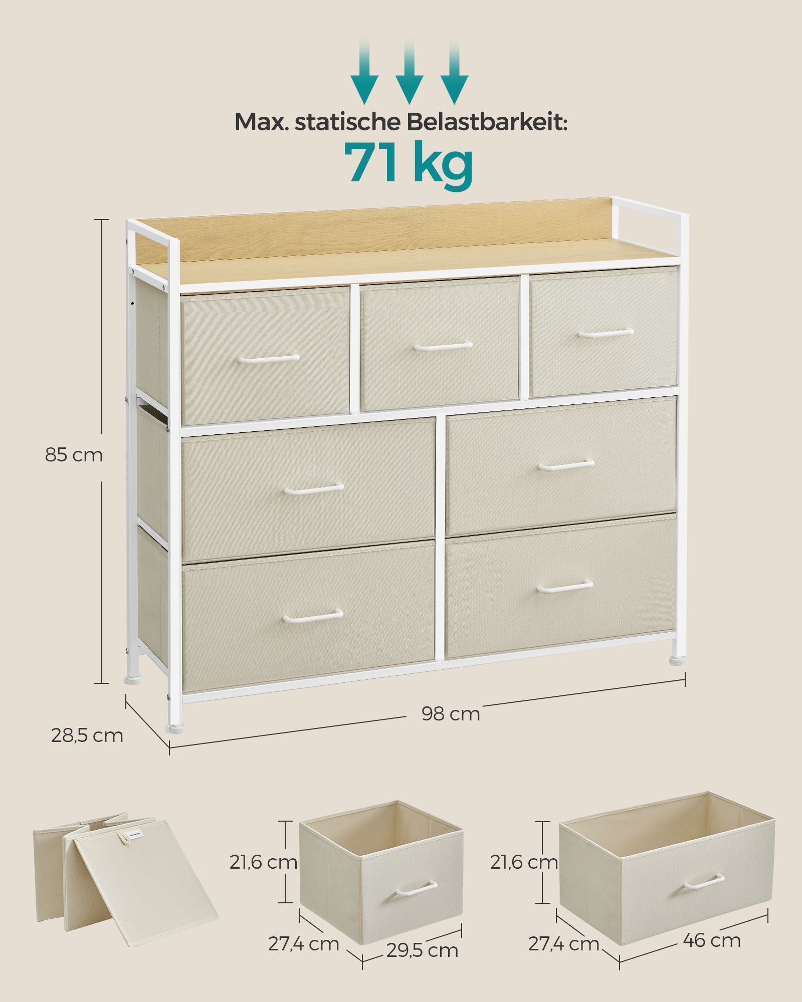 Max. static load capacity of each drawer: 3 kg