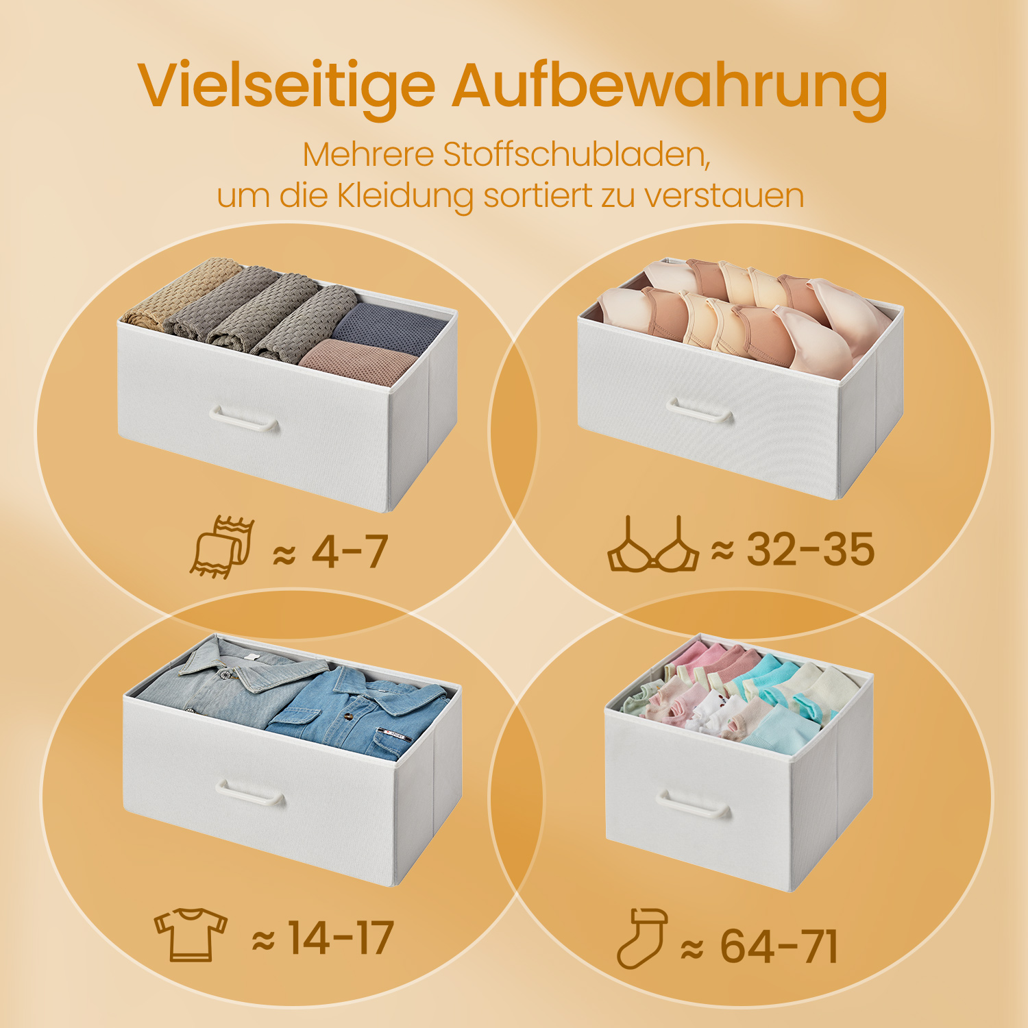Chest of drawers, cabinet, 7 fabric drawers with handles, metal frame, industrial design, dove gray-cloud white