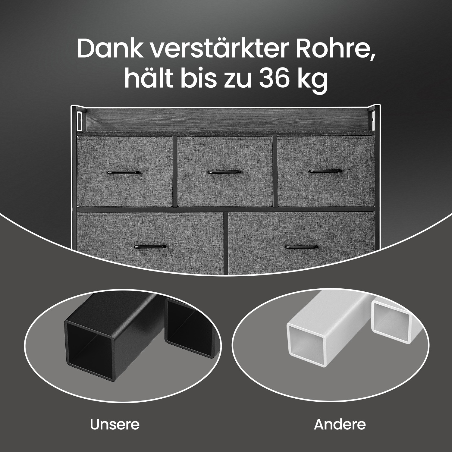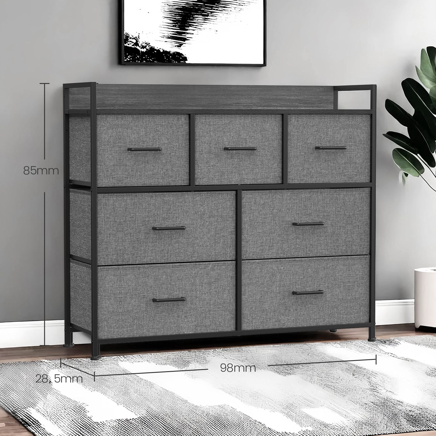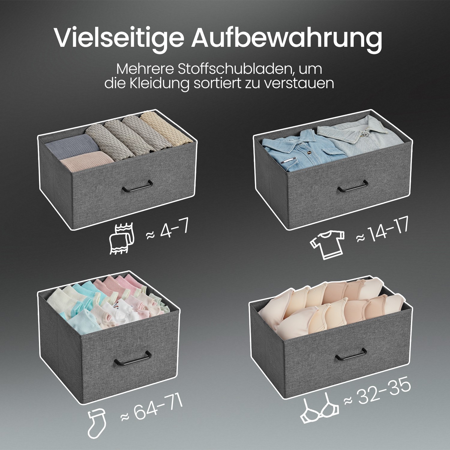 Chest of drawers, cabinet, 7 fabric drawers with handles, metal frame, industrial design, dove gray-cloud white