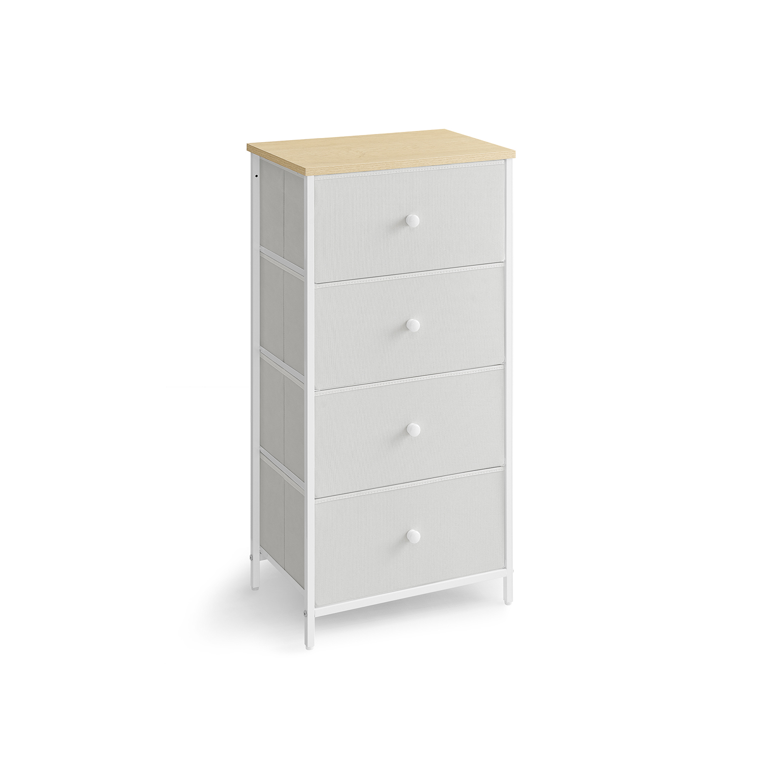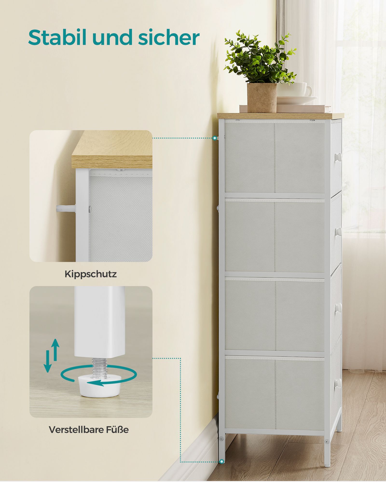 SONGMICS chest of drawers, storage cabinet with 4 fabric drawers, metal frame, tall and narrow, dove gray-cream white LTS314L10