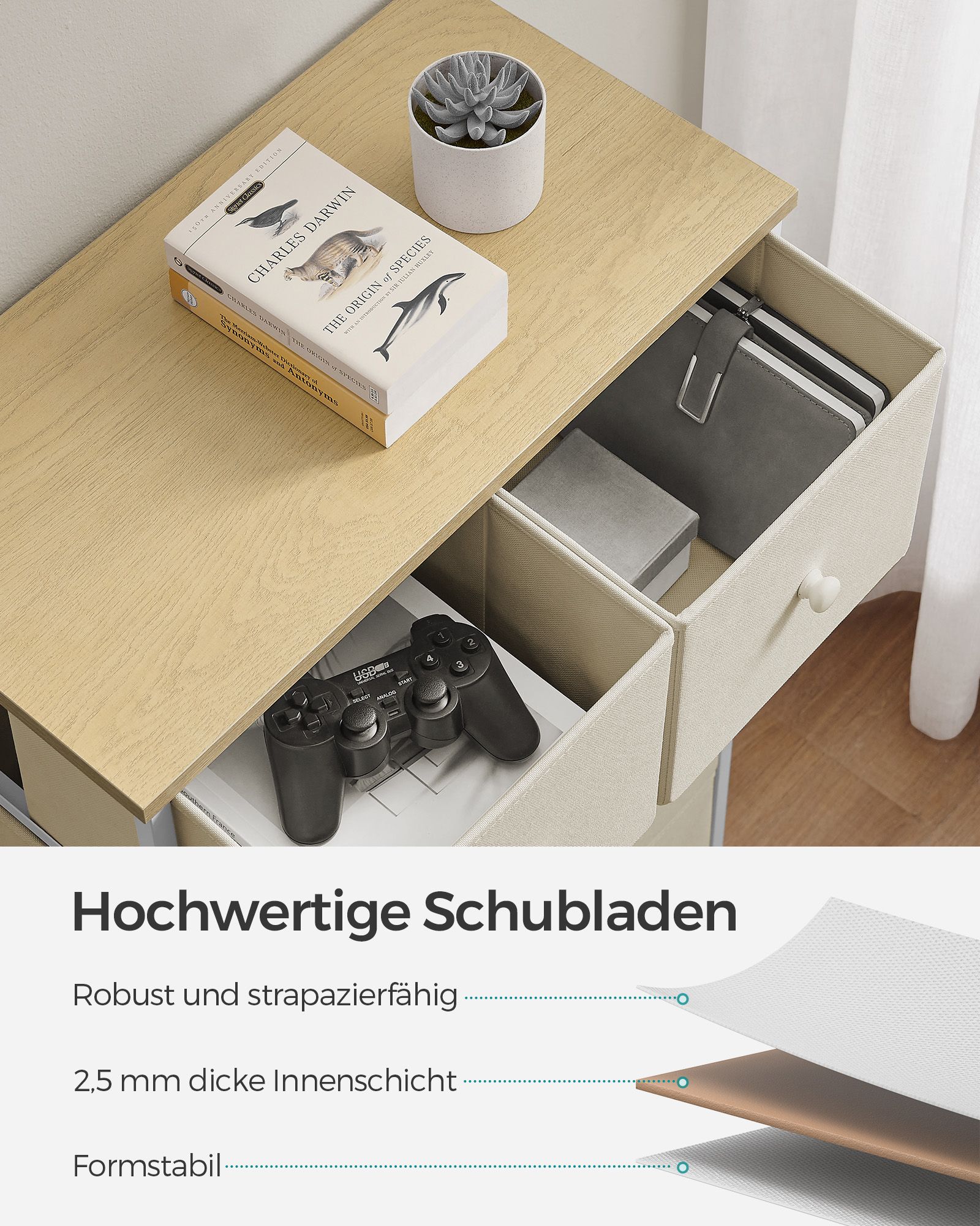 SONGMICS Chest of Drawers, Storage Cabinet, 5 Fabric Drawers, for Hallway, Living Room, Light Gray-White LTS514L10