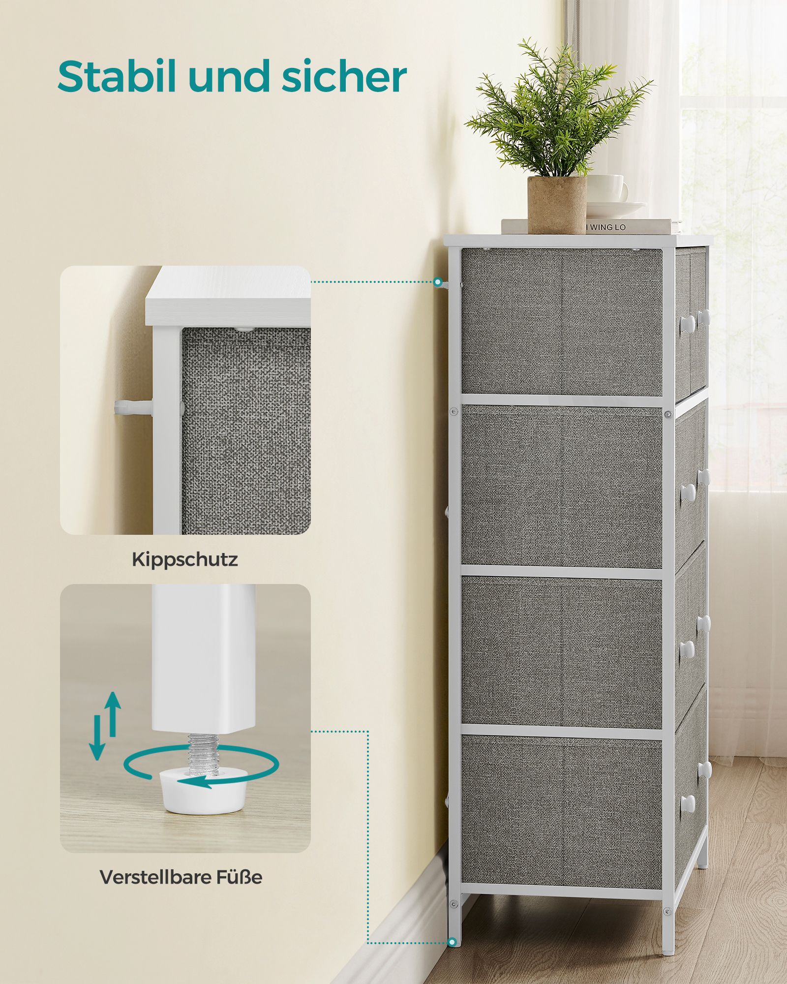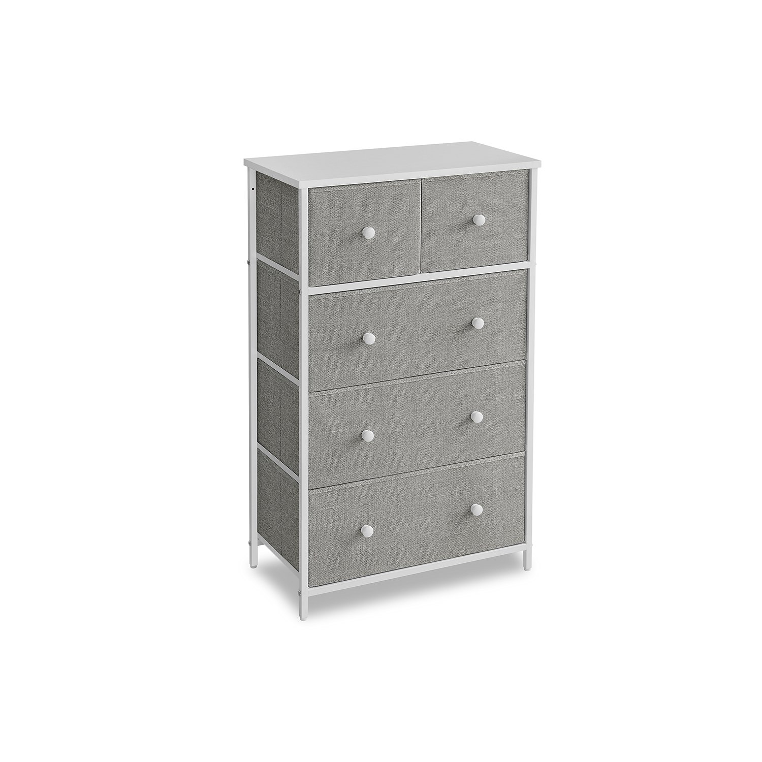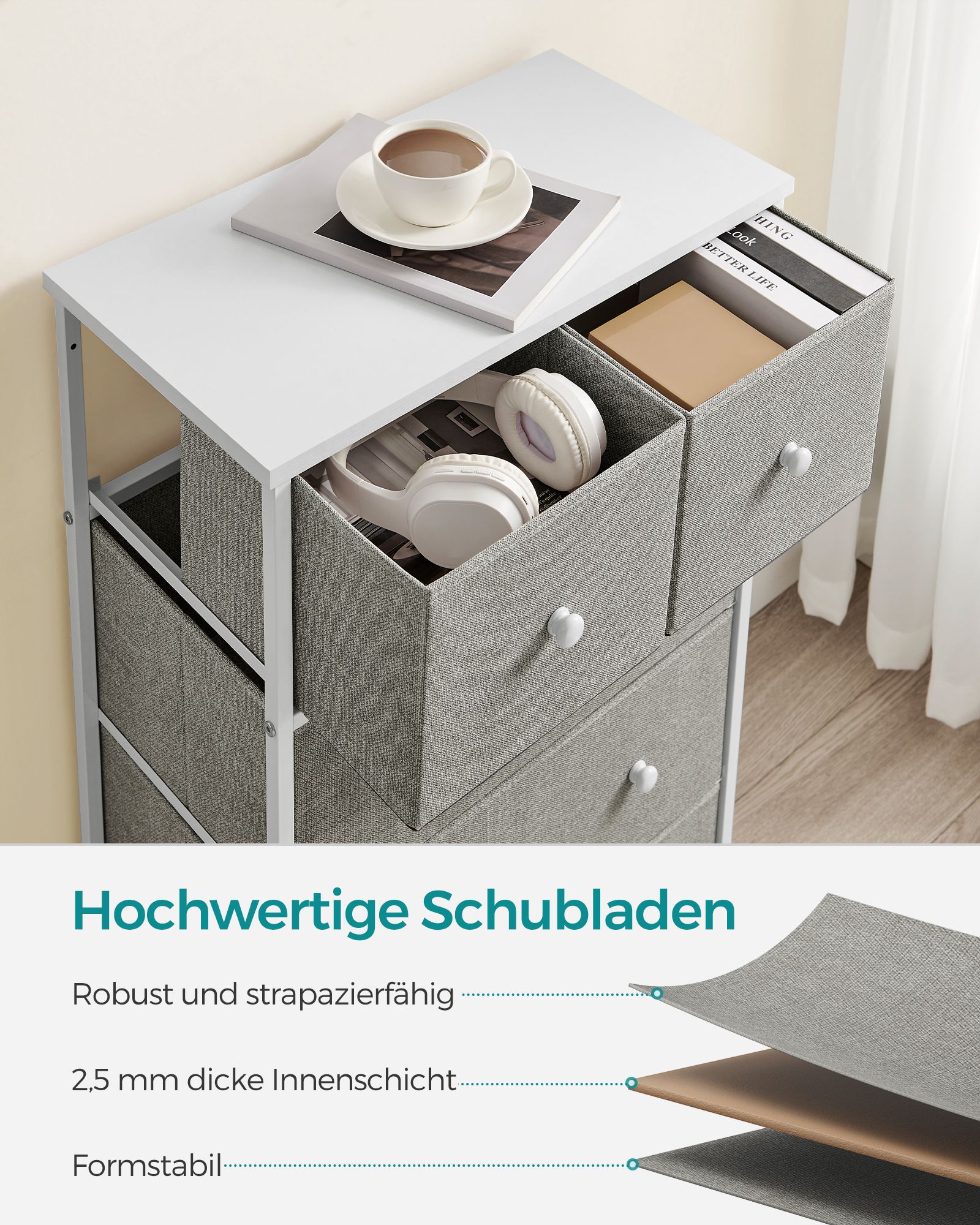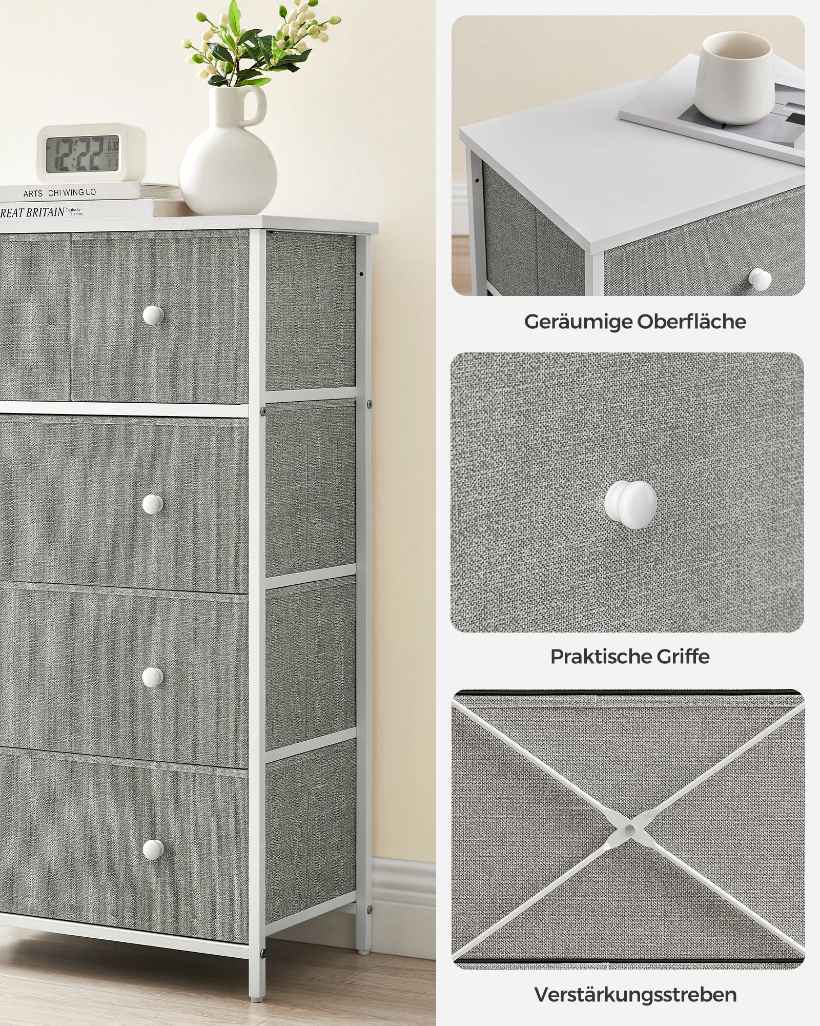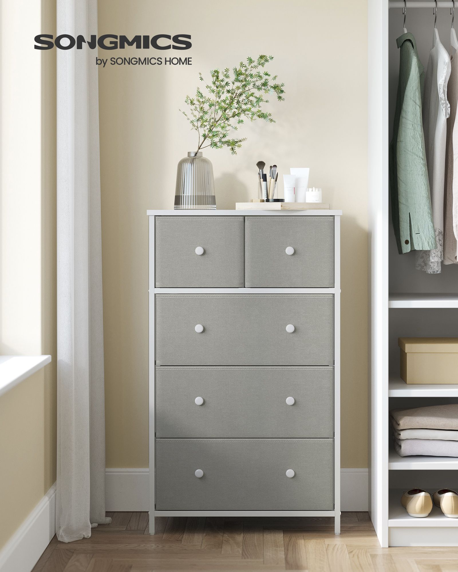 SONGMICS Chest of Drawers, Storage Cabinet, 5 Fabric Drawers, for Hallway, Living Room, Light Gray-White LTS514L10