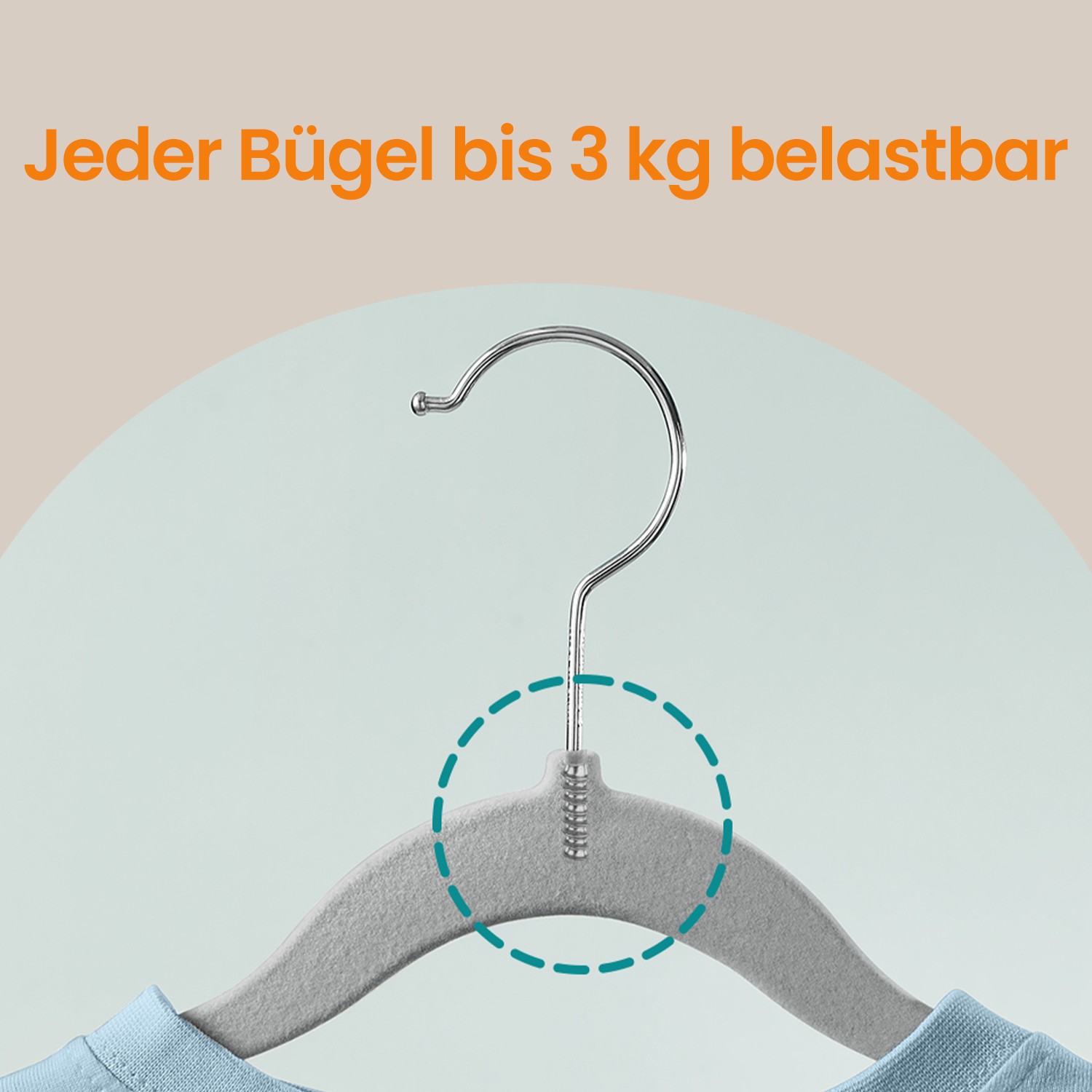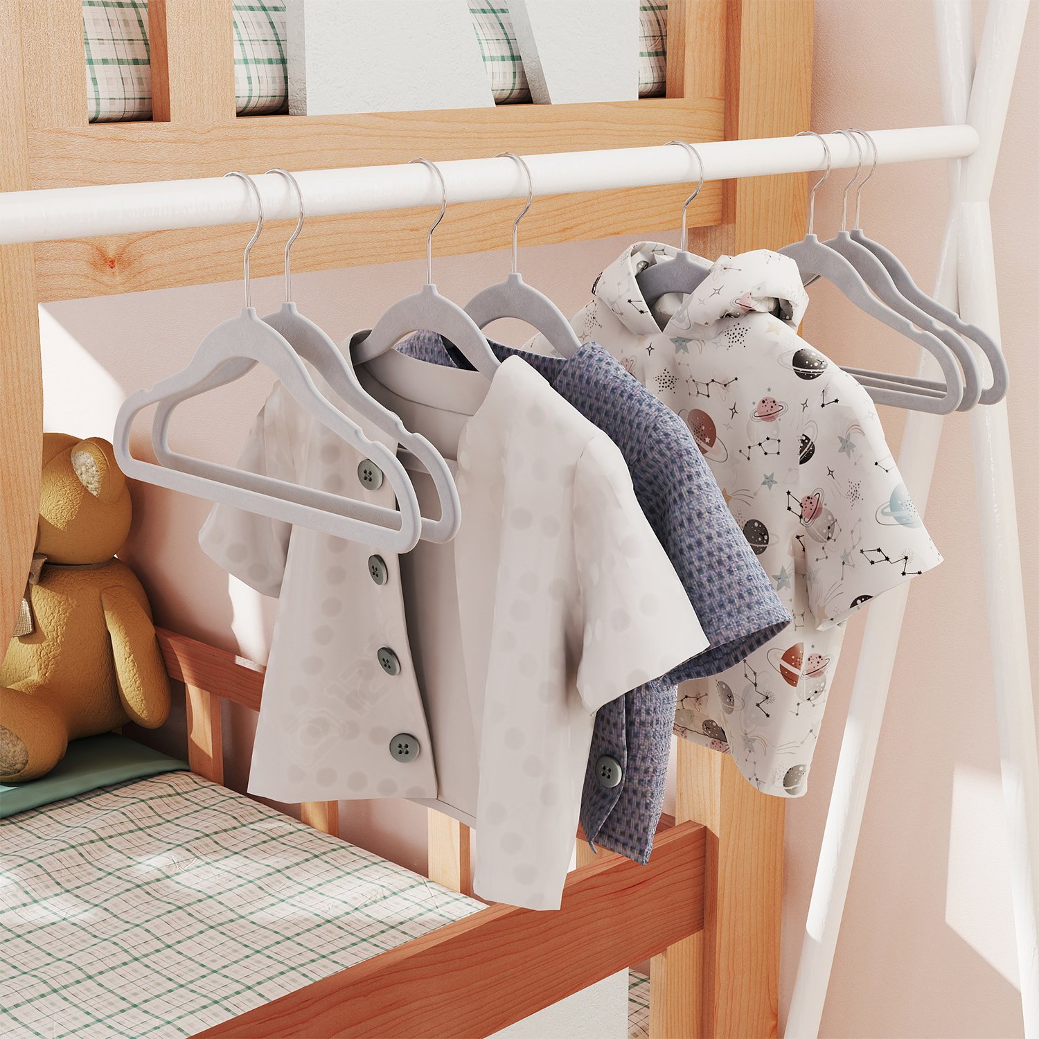 SONGMICS Children’s Clothes Hangers, Set of 50, Velvet Hangers with Hooks in Rose Gold, Non-Slip, for Wardrobes, for Children’s Clothes, Baby Clothes, Skirts and Pants for Children, Light Pink CRF027P01