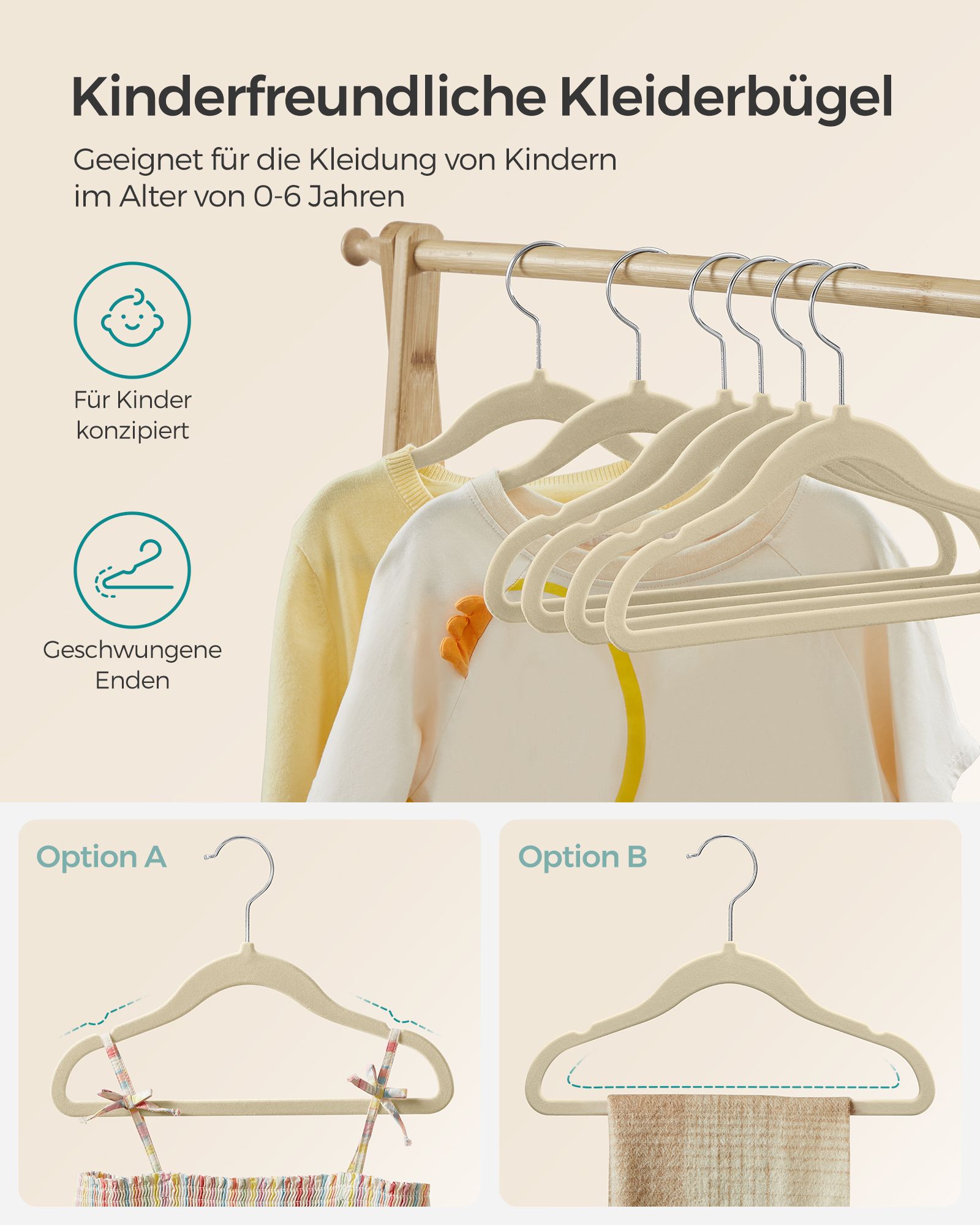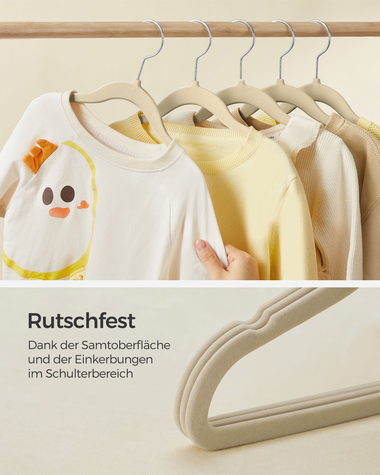 SONGMICS Children’s Clothes Hangers 50-Piece Set with 360° Rotating Hooks Sand Beige