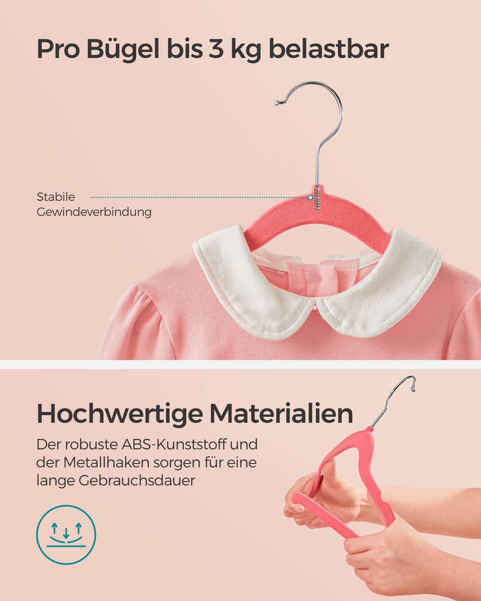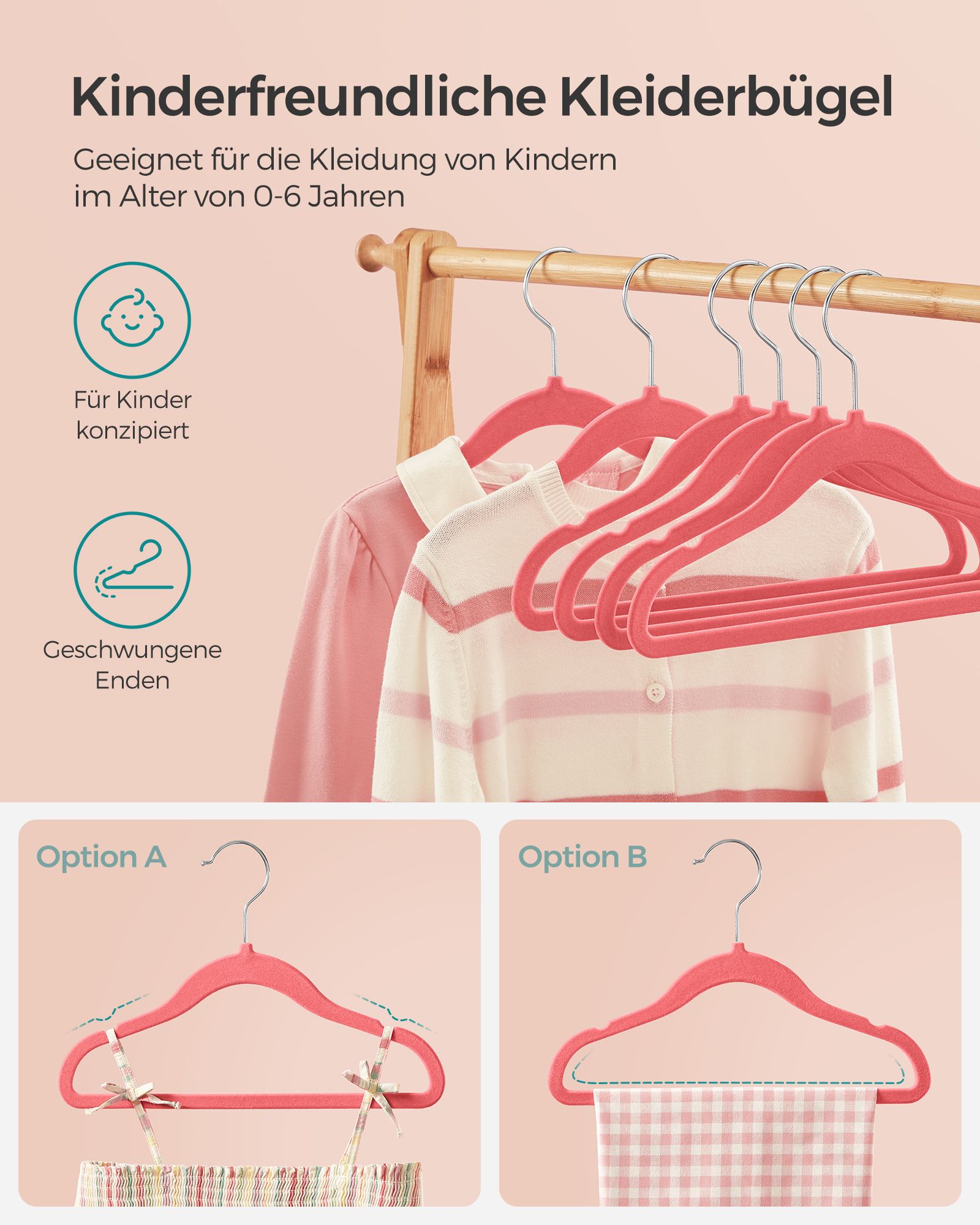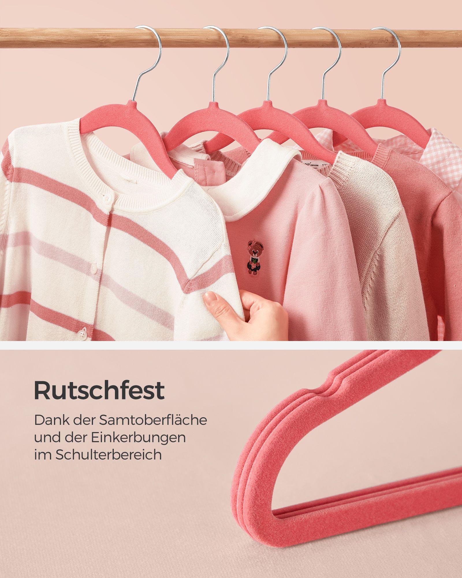 SONGMICS children’s hangers, set of 50, velvet hangers with rose gold hooks, non-slip, for wardrobes, for children’s clothing, baby clothing, skirts and pants for children, light pink CRF027P01