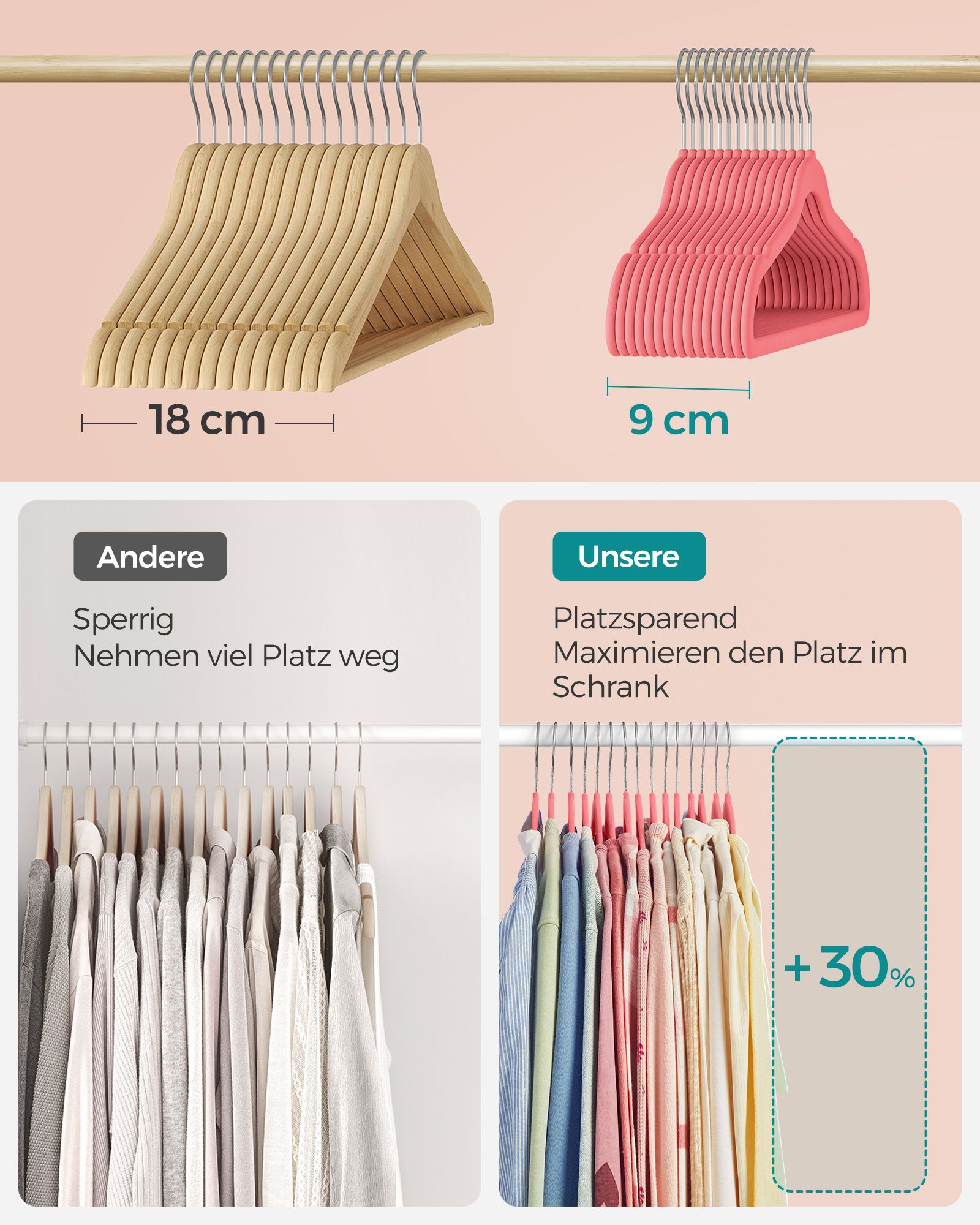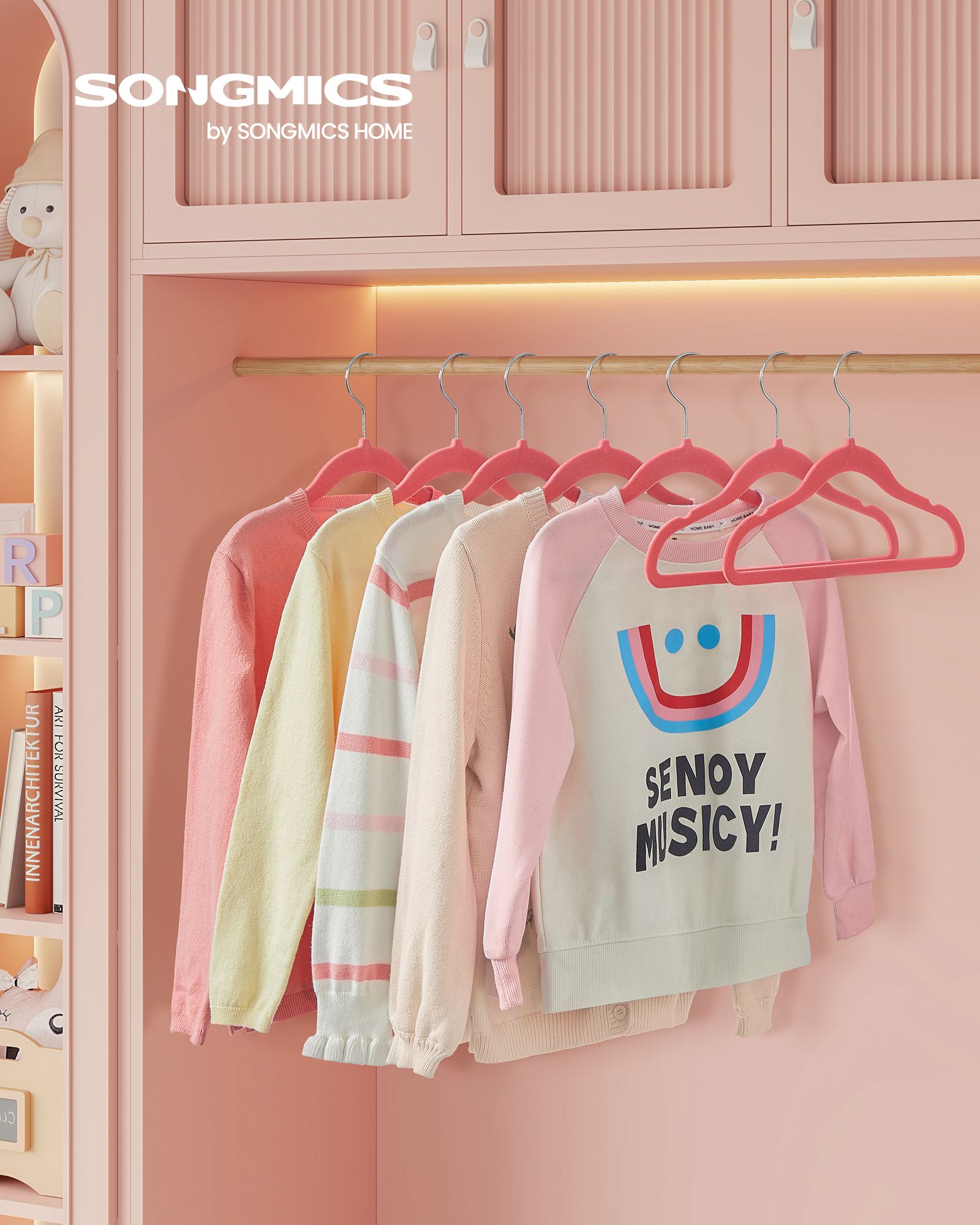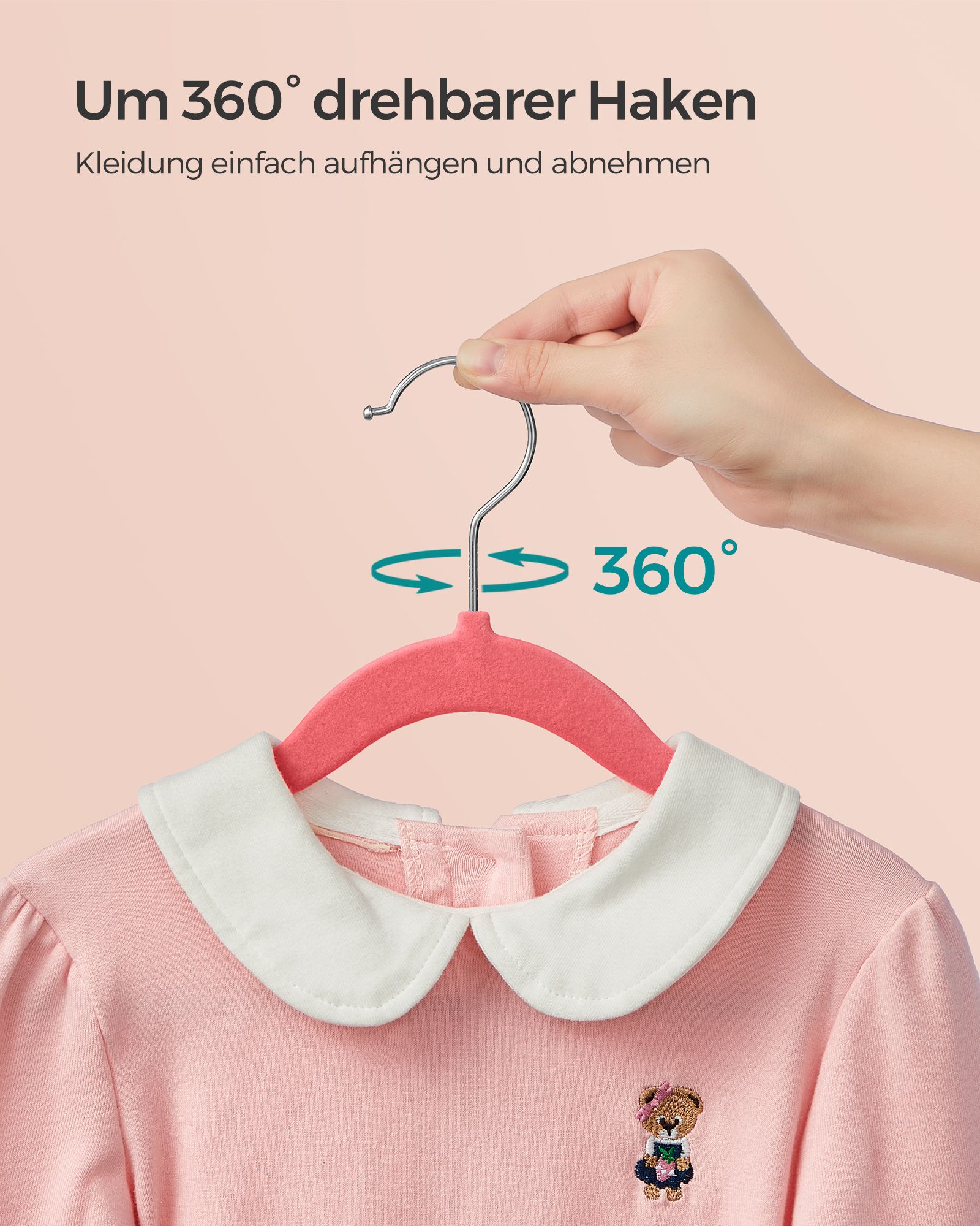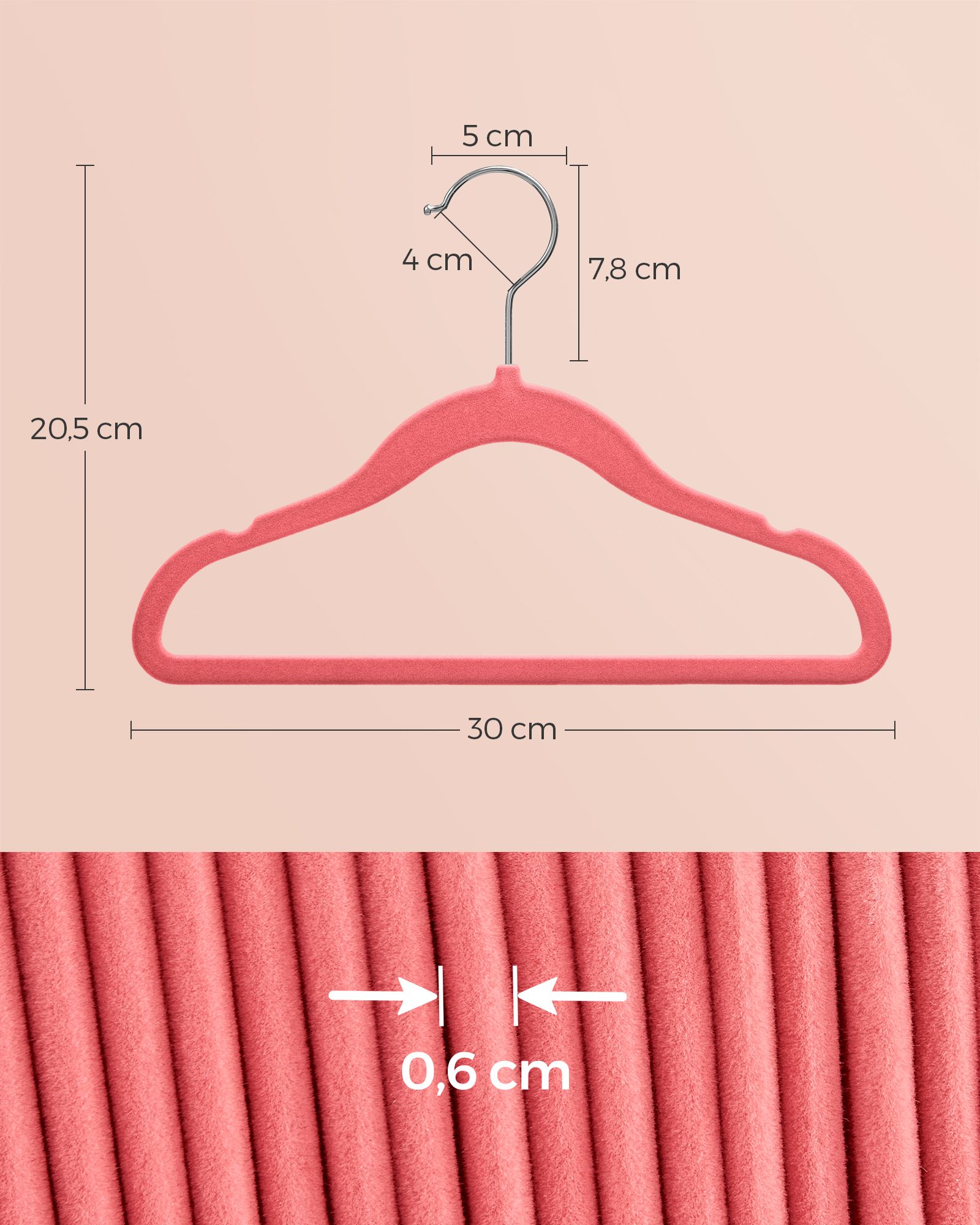 SONGMICS children’s hangers, set of 50, velvet hangers with rose gold hooks, non-slip, for wardrobes, for children’s clothing, baby clothing, skirts and pants for children, light pink CRF027P01