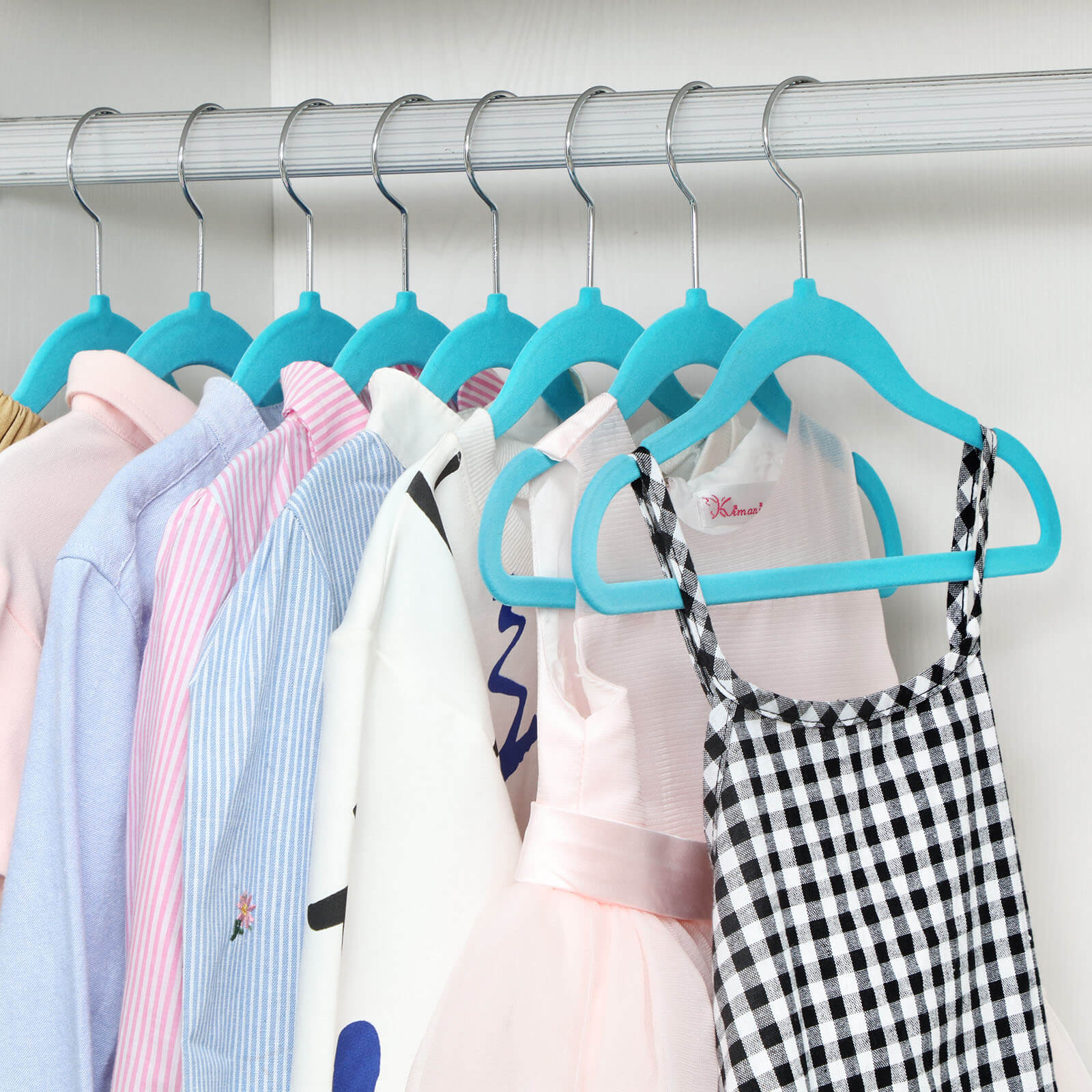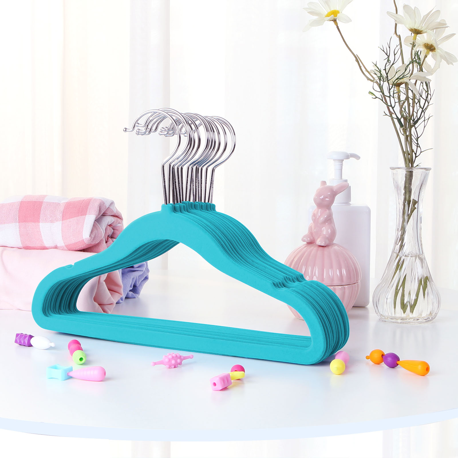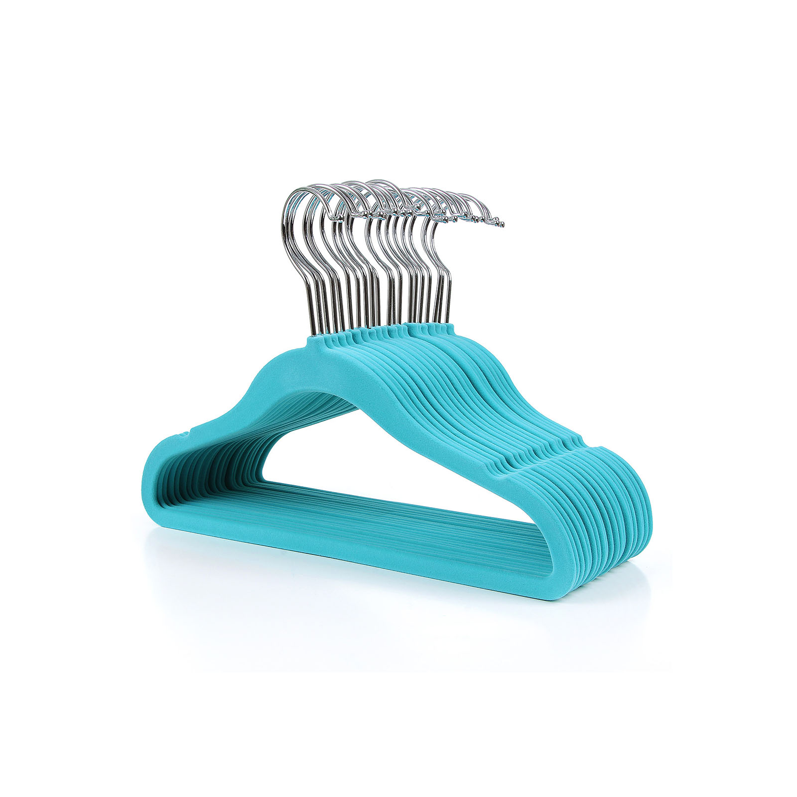 Are you always annoyed by your children’s clothes lying around everywhere? Are you looking for suitable hangers for your children? The Songmics children’s hanger with velvet surface is your best choice. It is specially designed for children’s clothing. The bright color is also very attractive to children. In addition, it is only 0.5 cm thick. Once you start using them, you’ll be surprised at how much space you can save. Thanks to the ergonomic curves on both sides, the shoulders won’t wrinkle or distort when hanging. It also has two notches so that skirts or tops with loops can be held securely. And the metal hook is shiny, rust-free, and rotates 360°. The Songmics children’s hanger is sure to be your family’s “capable assistant.” Product details: – Material: ABS (plastic) + velvet – Color: turquoise blue – Dimensions: 30 x 20.5 x 0.5 cm (W x H x D) – Hook height: 7.8 cm – Hook width: 5.1 cm – Gross weight: 1.4 kg Scope of delivery: – 20 x children’s hangers Notes: – Before use, please use a hair dryer to blow away any surface fluff (surface fluff may be present in the packaging bags or on the hangers; this is normal, so please do not worry). – Please avoid leaving the hangers in rooms with high humidity and temperature for long periods of time. – Please avoid using the hangers to hang wet laundry.