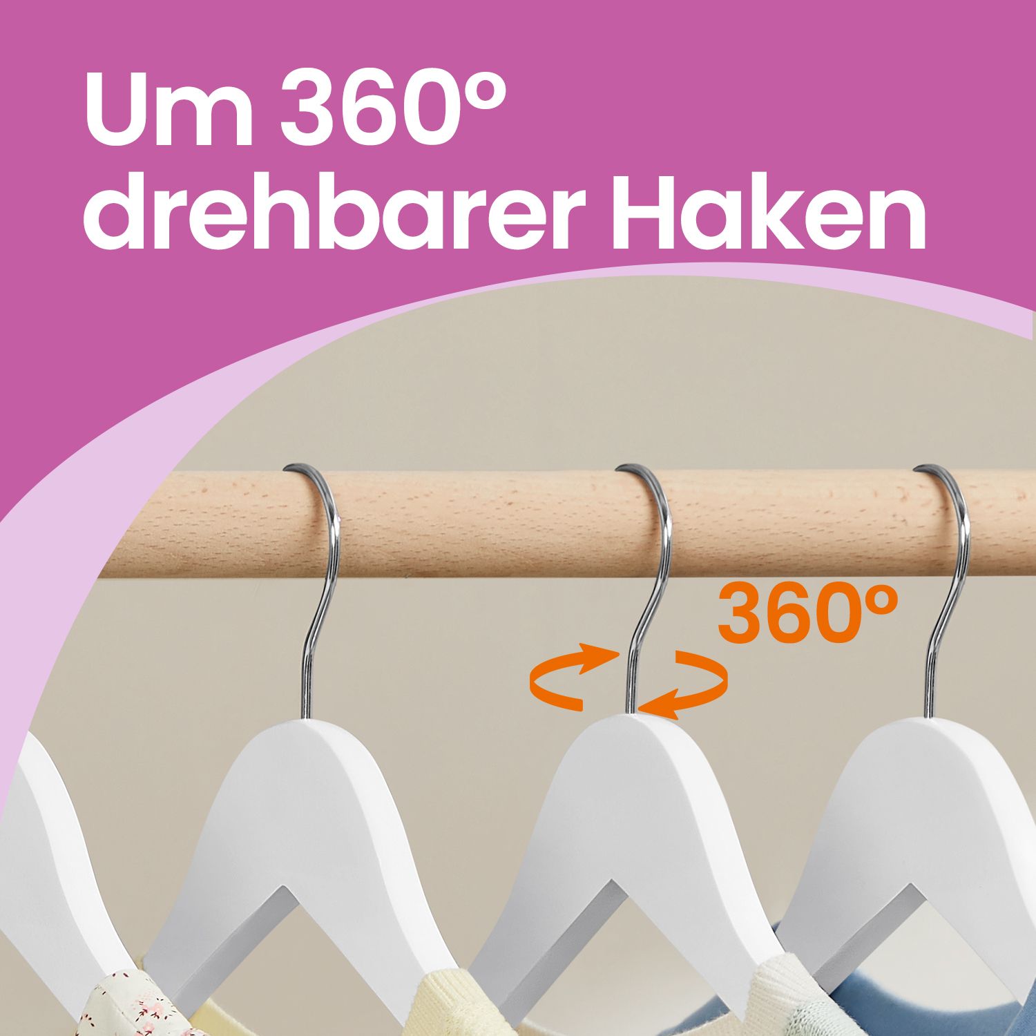 The Songmics children’s clothes hanger is sure to be your family’s “capable assistant.” Product details: Material: maple wood + chrome-plated metal hook Color: white Dimensions: 35 x 20 x 1.2 cm each (W x H x D) Hook height: 6.5 cm Hook width: 5 cm Gross weight: 2.35 kg Scope of delivery: 20 x white children’s hangers made of maple wood Note: Please avoid leaving the hangers in rooms with high humidity and temperature for long periods of time. Otherwise, the hangers may become moldy. To clean, simply wipe the surface with a slightly damp cloth.