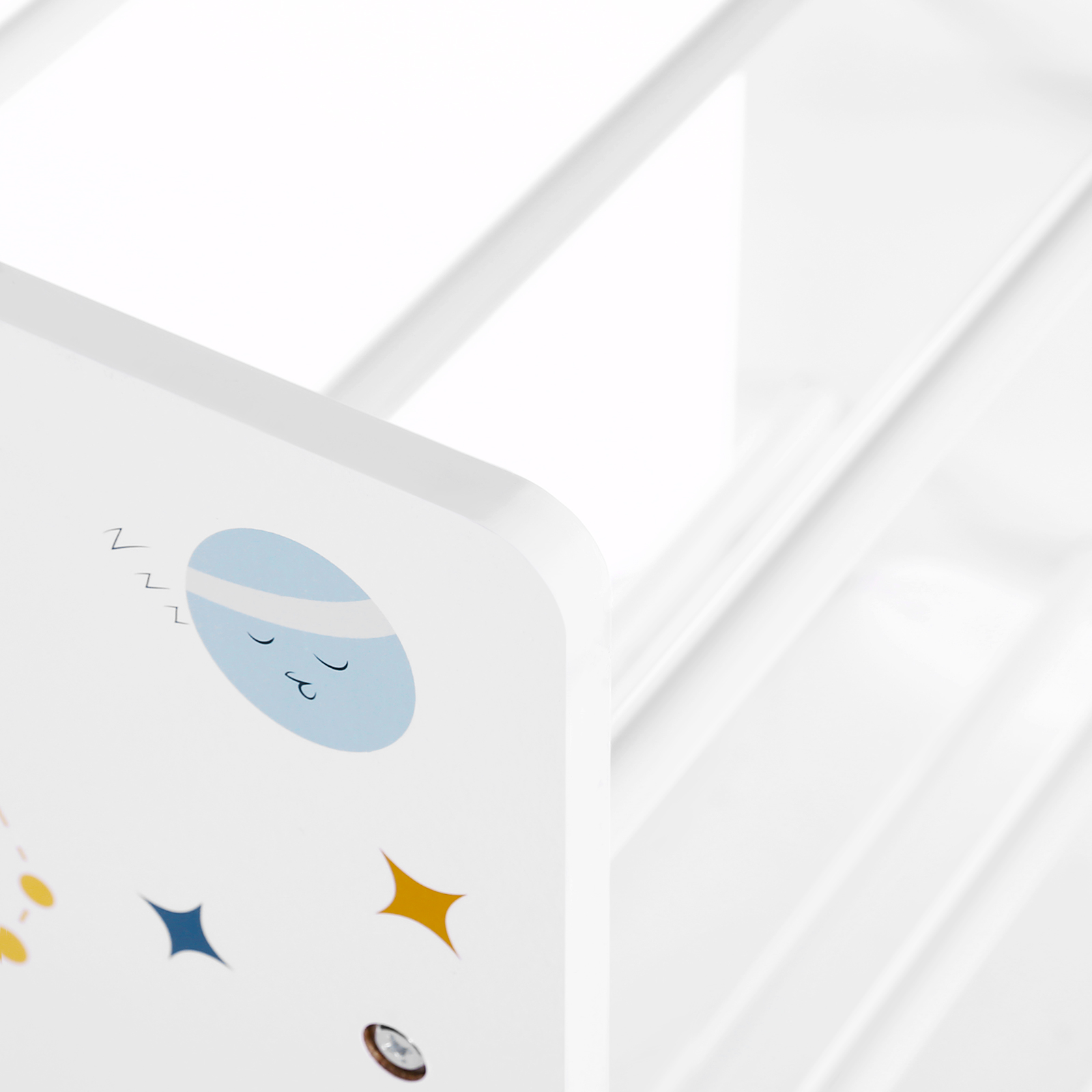 Product details: Color: White shelf; storage boxes in white, blue, and gray Material: Pressboard, fleece, colorful paper stickers Size: 62.5 x 29.5 x 60 cm (L x W x H) Weight: 5.5 kg Scope of delivery: 2 x shelf board 9 x storage box 9 x rod 1 x container with accessories 1 x instructions (DE, EN, FR, ES, IT) SONGMICS Notes:Please clean the product with a damp cloth and then allow it to air dry.