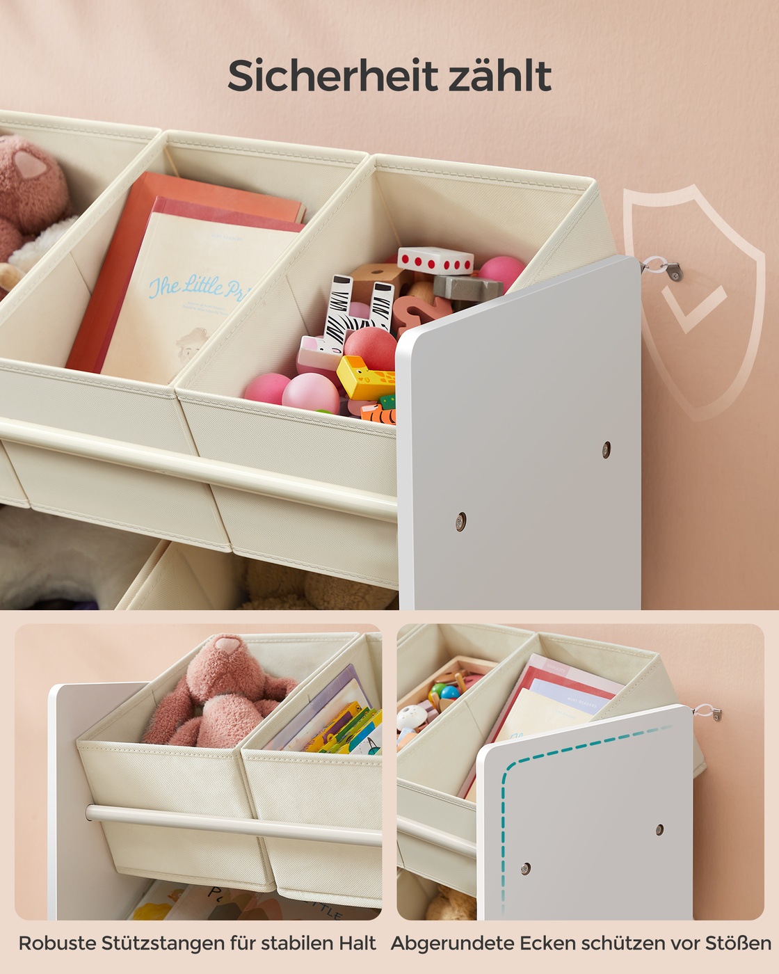 SONGMICS children’s shelf with 7 storage boxes made of non-woven fabric, cloud white