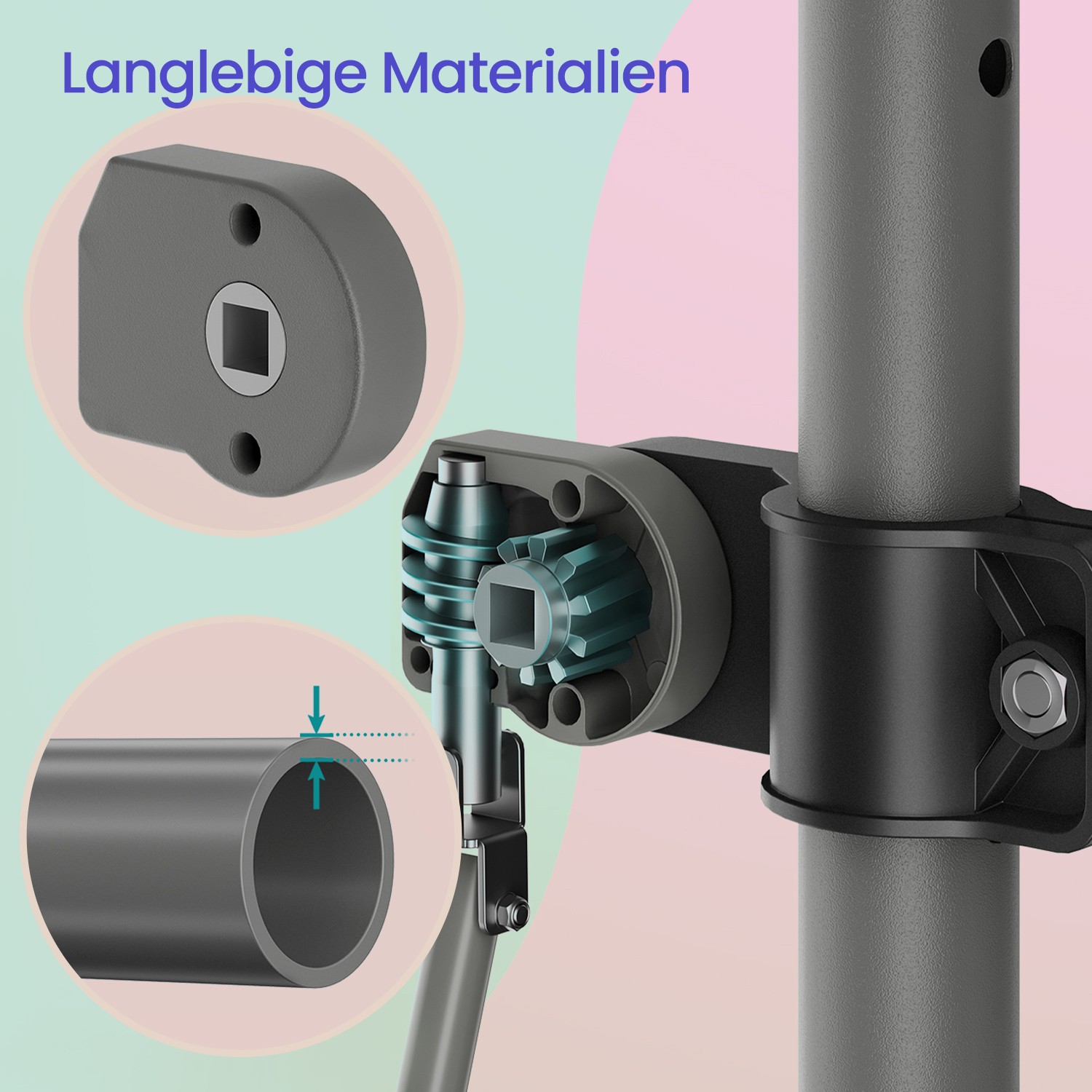 – Material: Powder-coated steel, aluminum alloy, polyester with PA coating (180 g/m²)