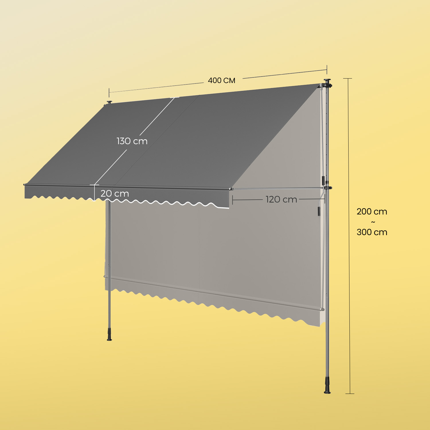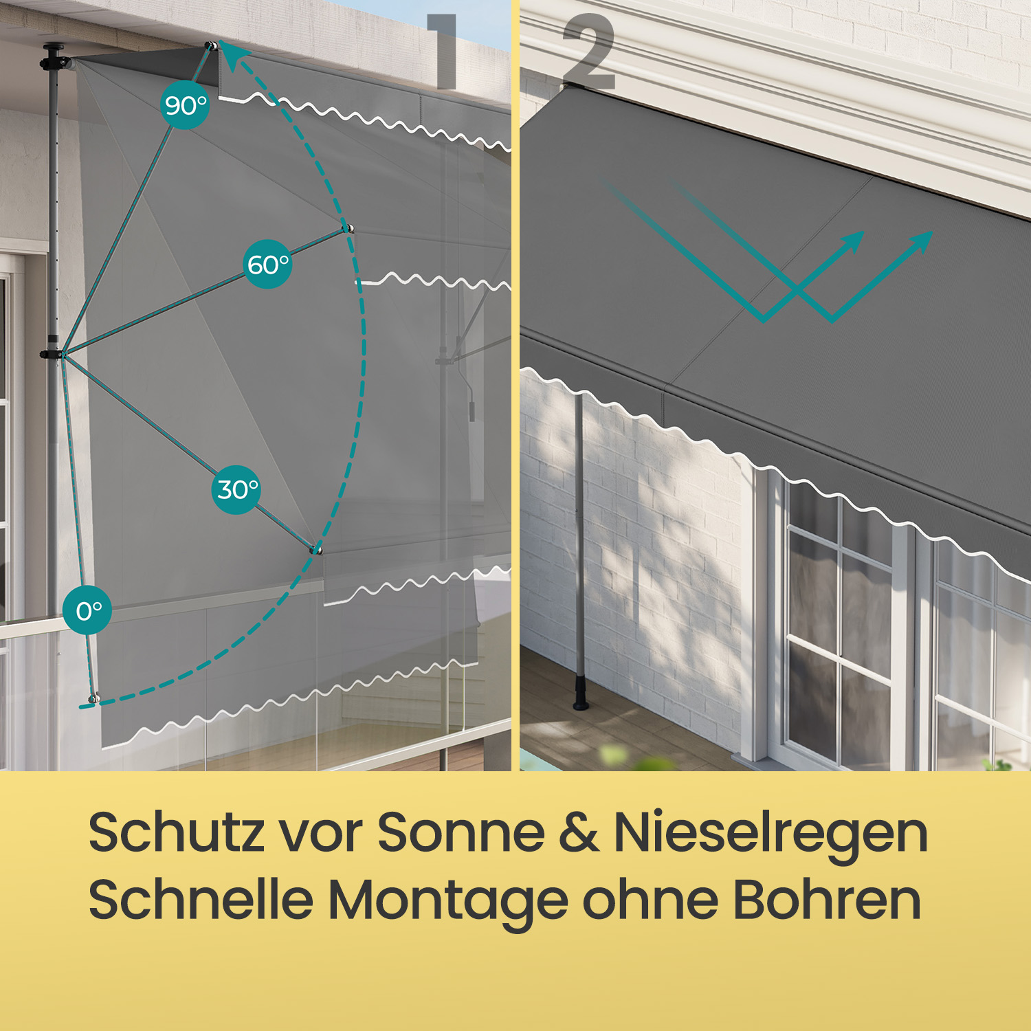 Clamp awning, balcony awning, height-adjustable, with hand crank, sun protection, for balcony, patio, garden, 400 x 120 cm, anthracite