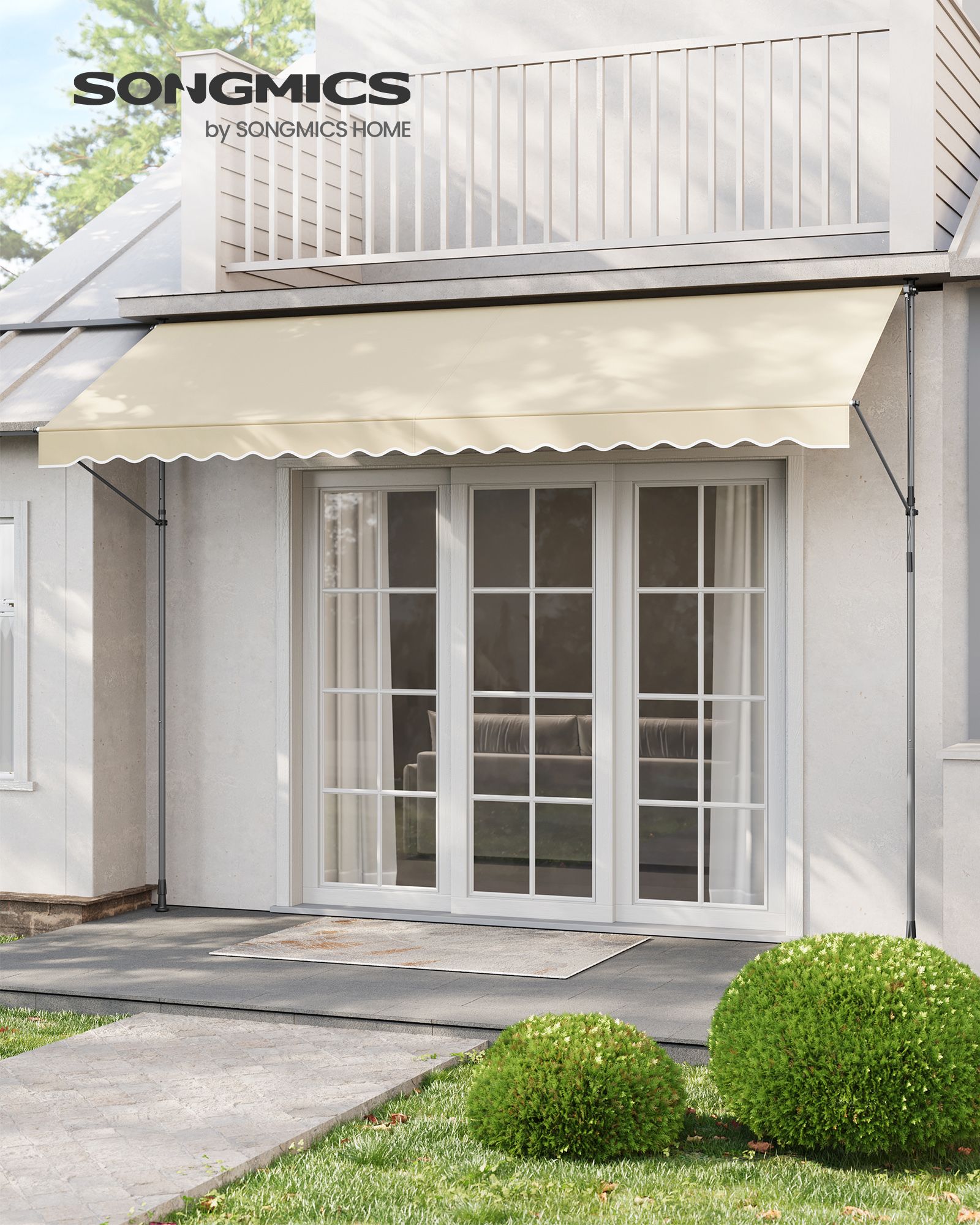 SONGMICS clamp-on awning, balcony awning, height-adjustable, with hand crank, sun protection, for balcony, patio, garden