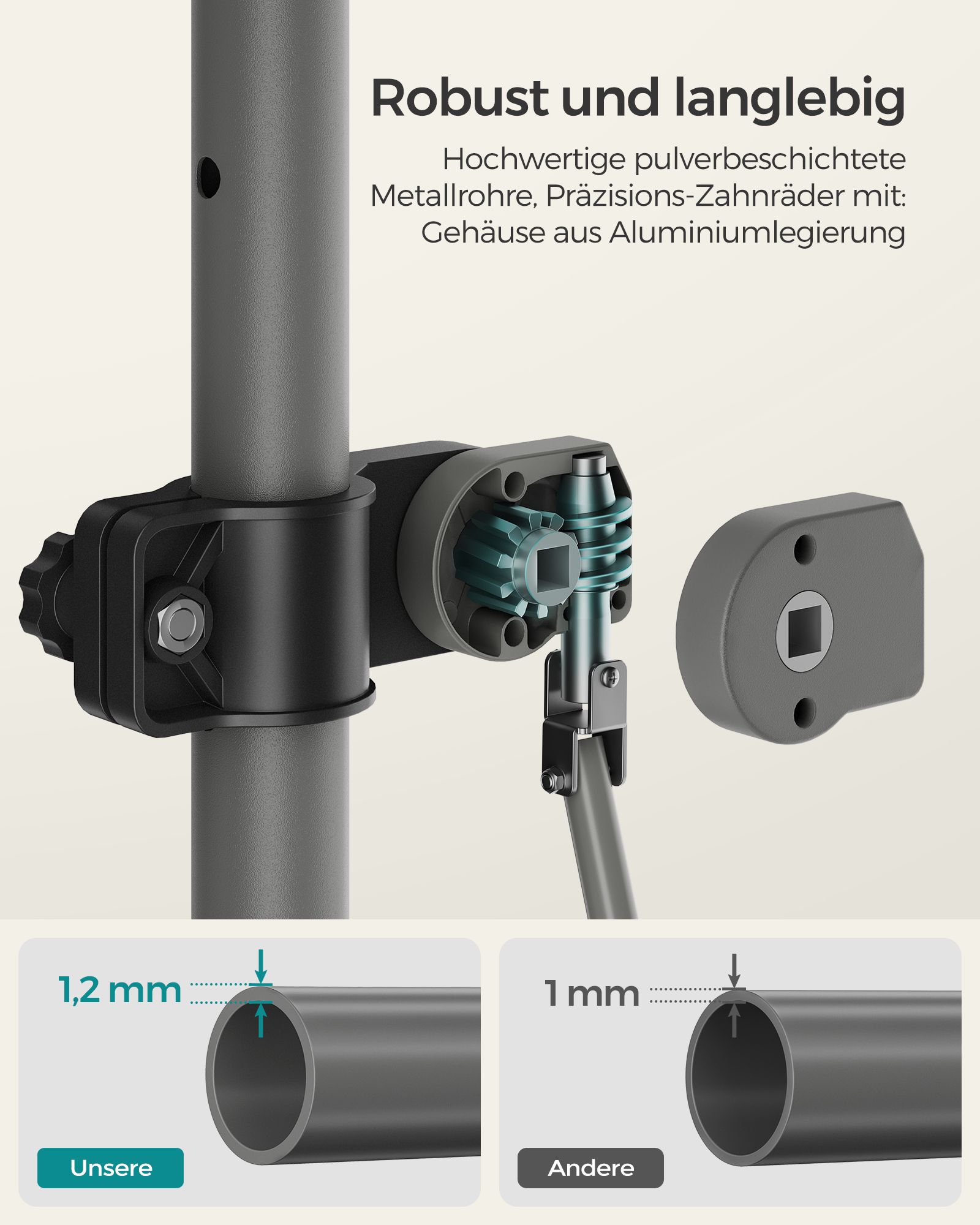 Material: Powder-coated steel, aluminum alloy, polyester with PA coating (180 g/m²)