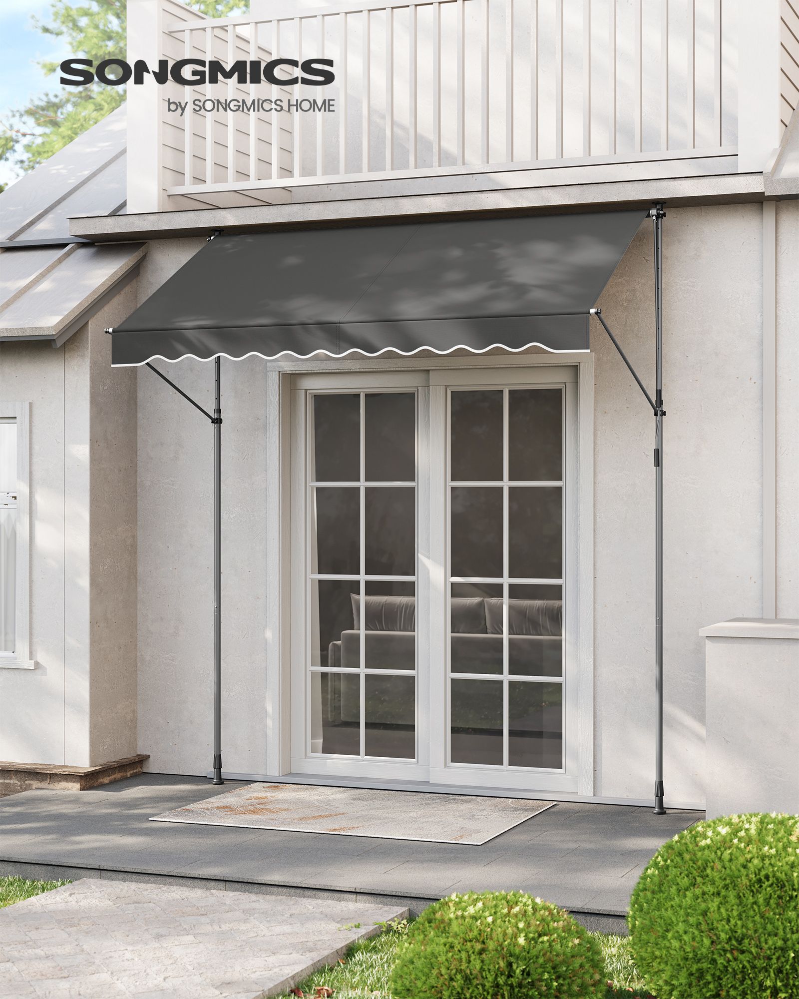 SONGMICS clamp-on awning, balcony awning, height-adjustable, with hand crank, sun protection, for balcony, patio, garden