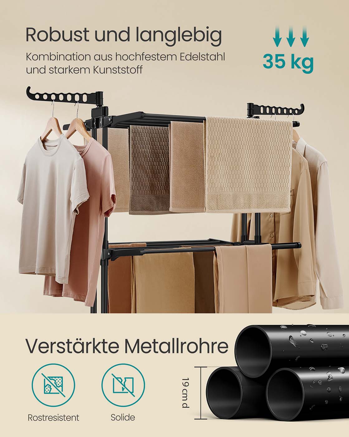Be the first to review “SONGMICS clothes dryer with 4 levels 63.5 x 128 x 173 cm ink black”