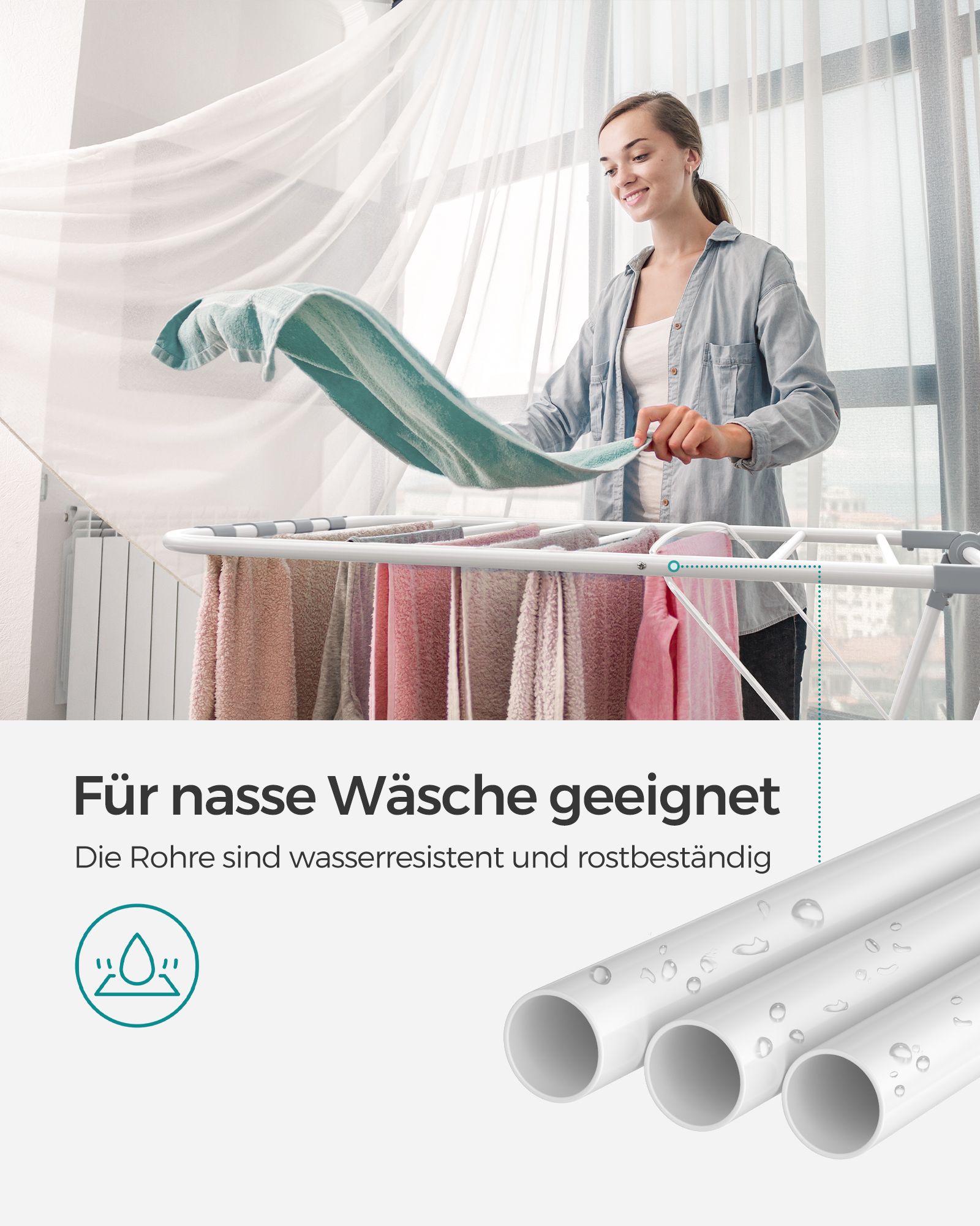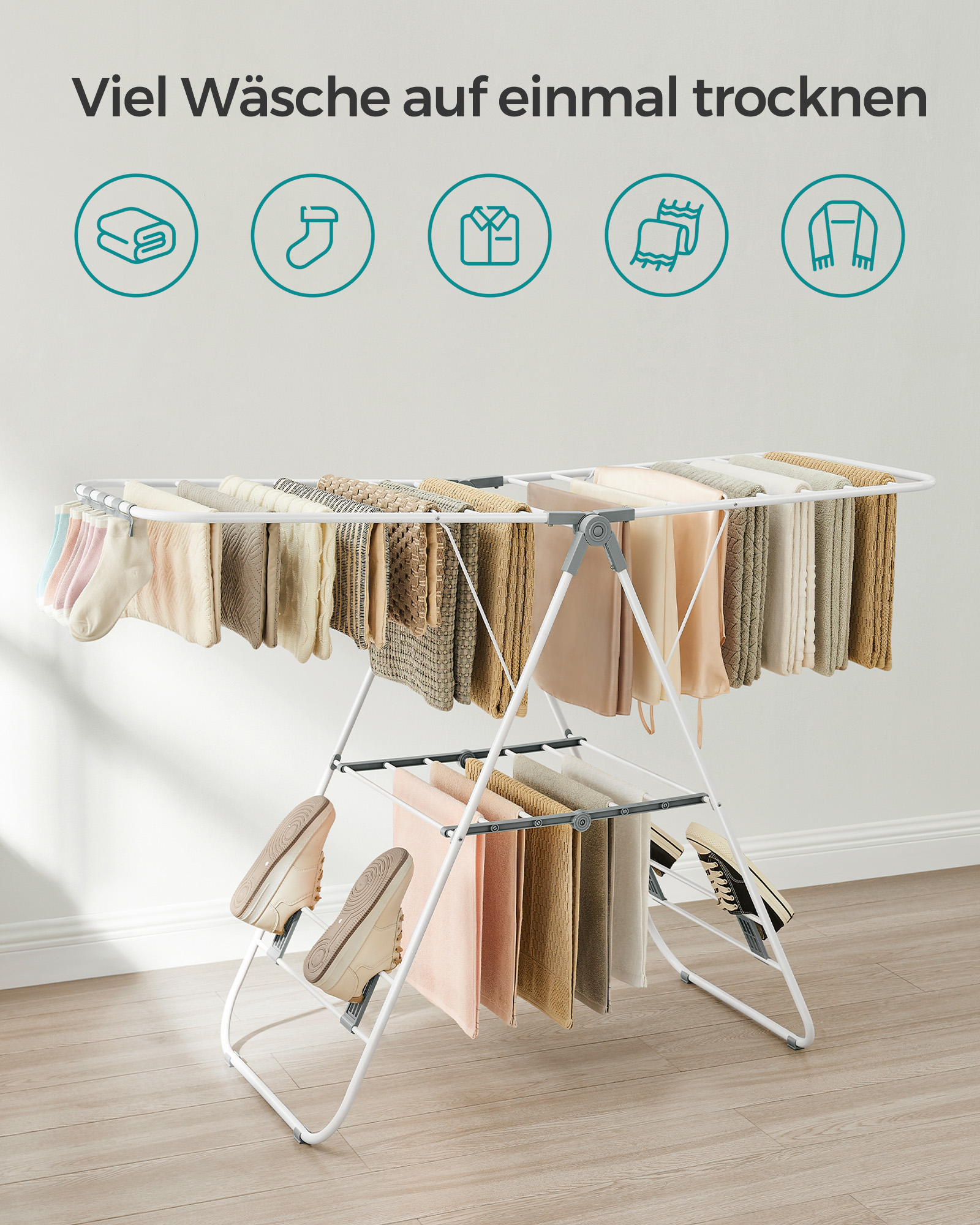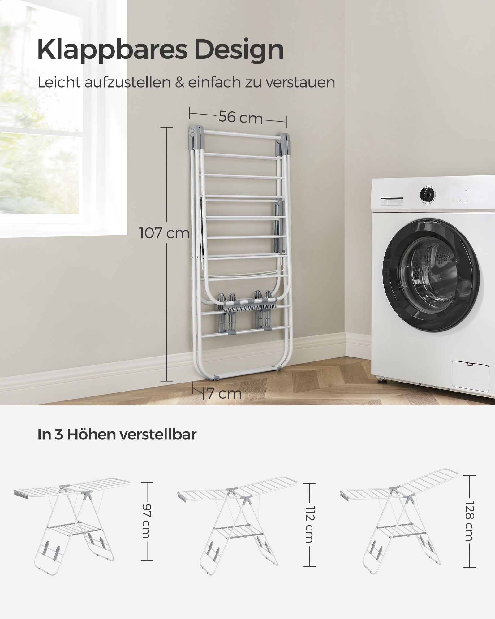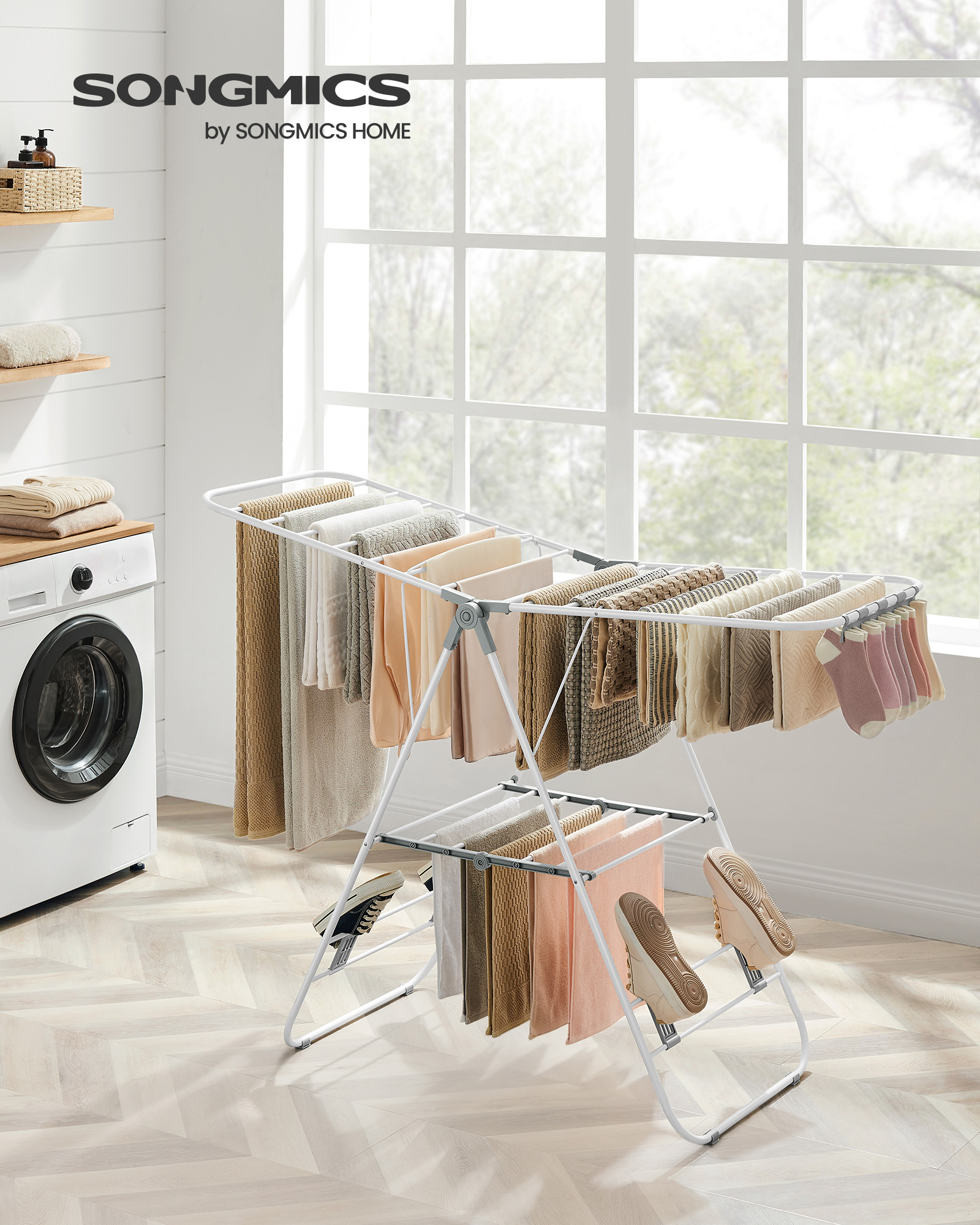 SONGMICS clothes dryer with steel wings, cloud white-dove gray