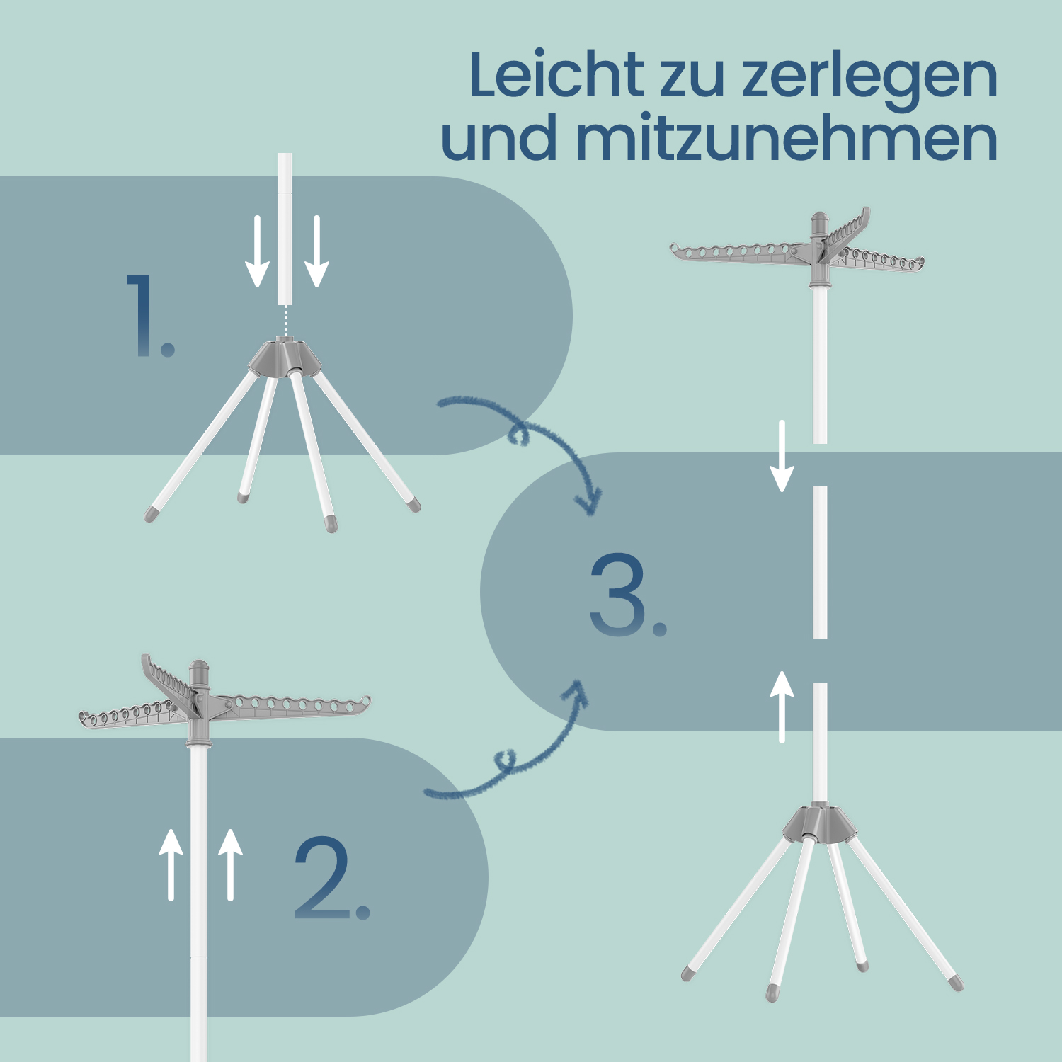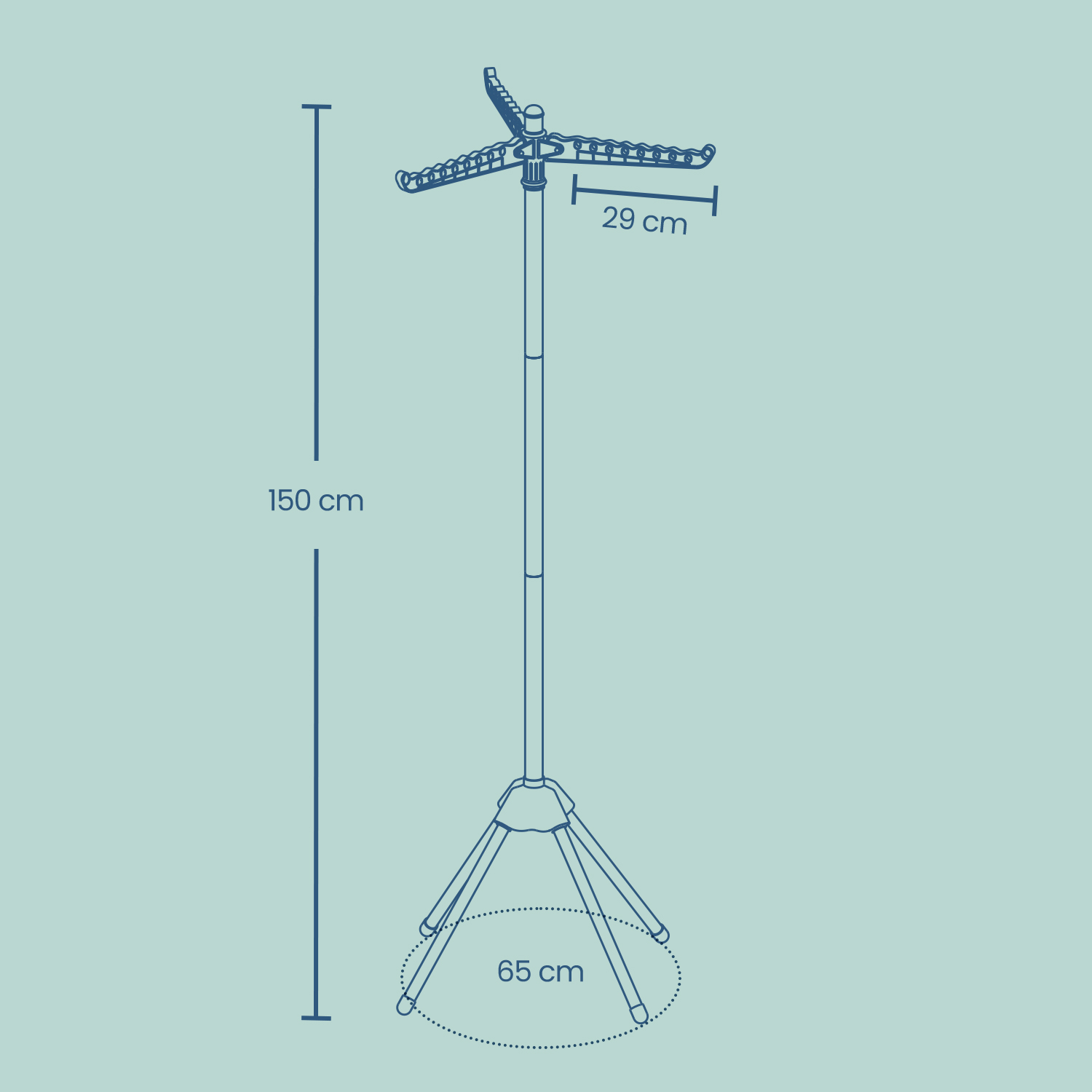 – Dimensions of the stand when unfolded: 65 x 65 x 150 cm (D x W x H)