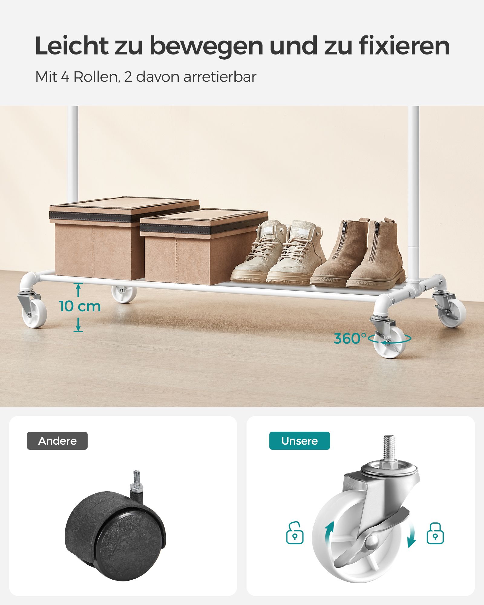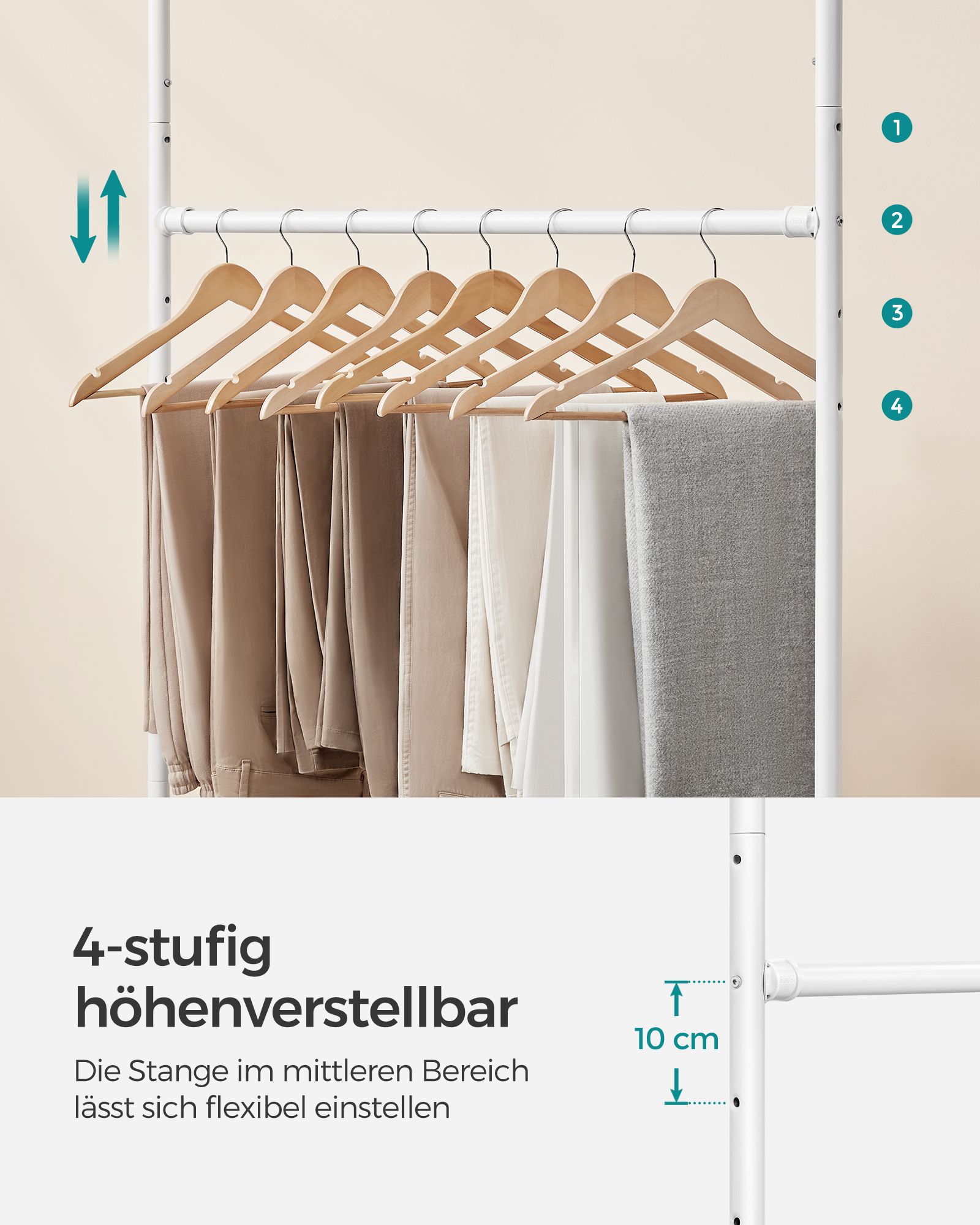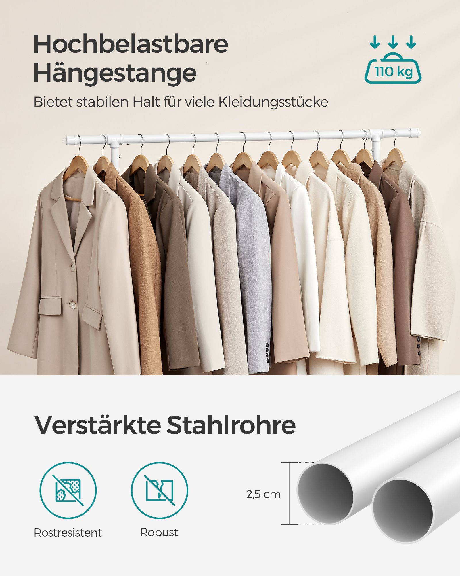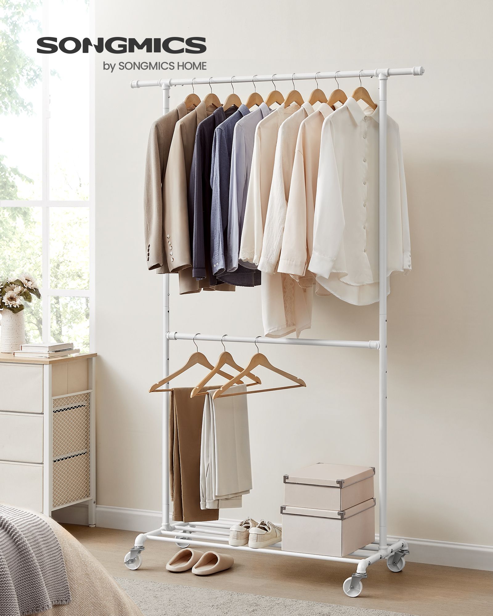 SONGMICS coat rack, coat rack on casters, 2 rails, coat rack with shelf, load capacity up to 110 kg
