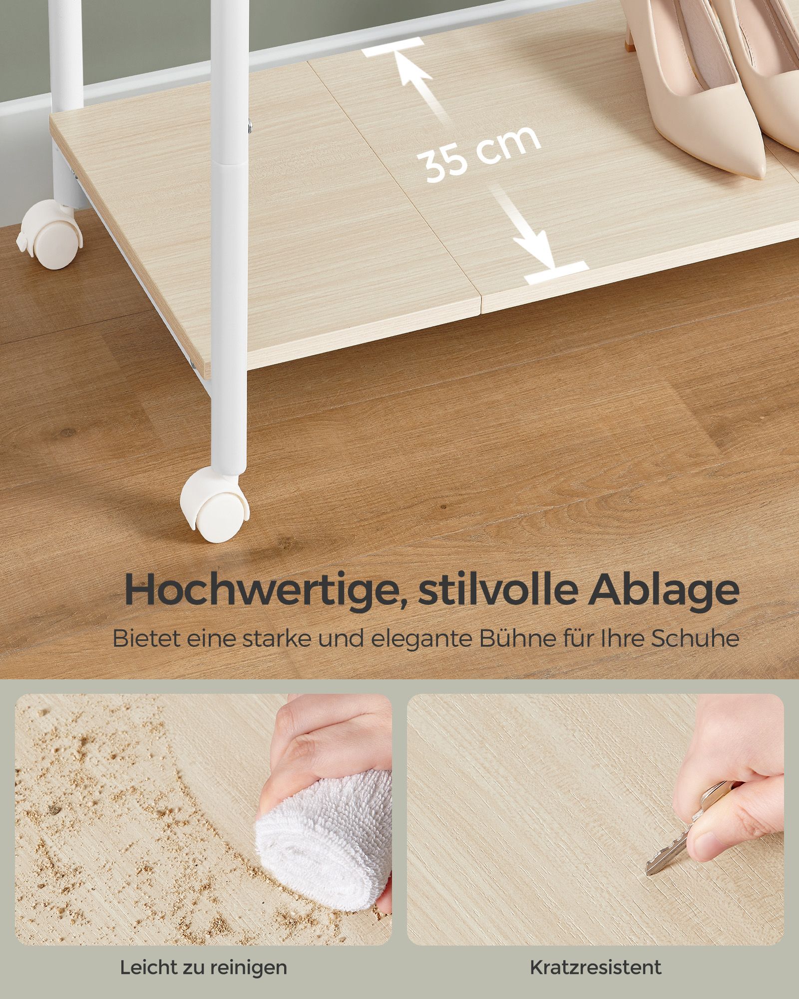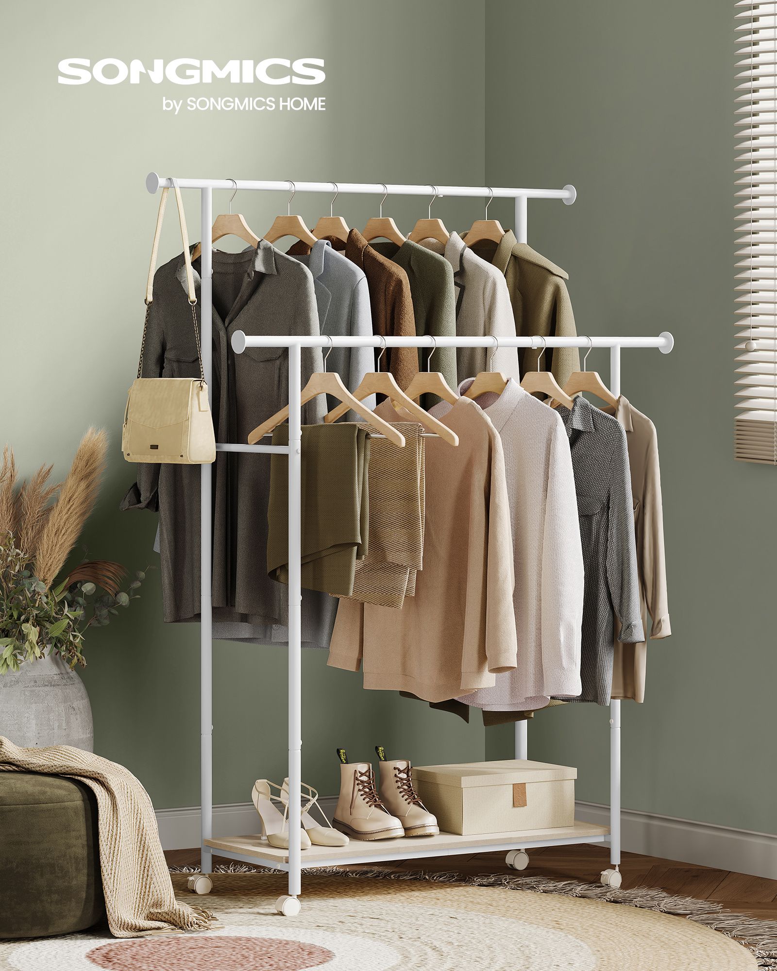 SONGMICS clothes rack on casters, clothes rail with shelf, 2 rails, coat rack, 98.5 cm wide, total load capacity up to 100 kg, steel frame