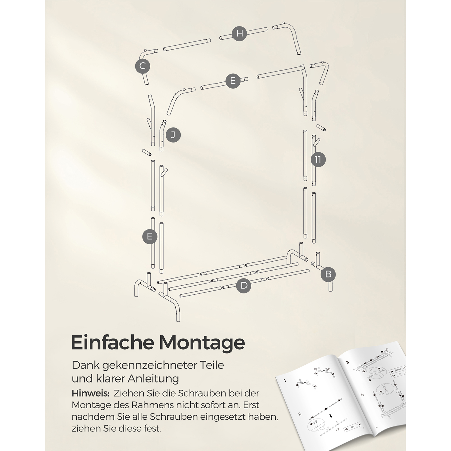 SONGMICS coat rack on casters, 2 coat rails, coat rack, coat stand made of steel tubes, load capacity up to 100 kg, 103.5 cm wide, multifunctional storage, black HSR107B01