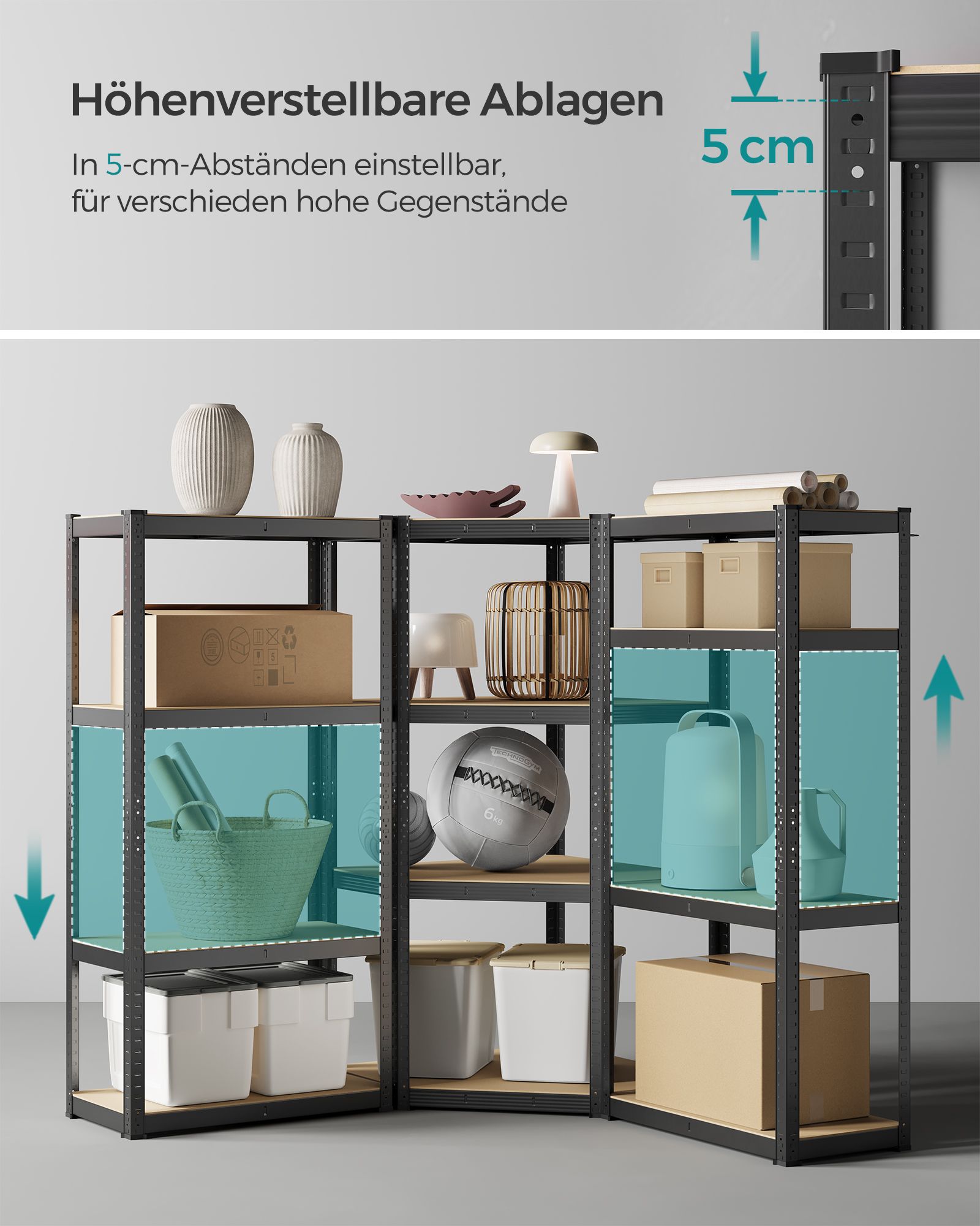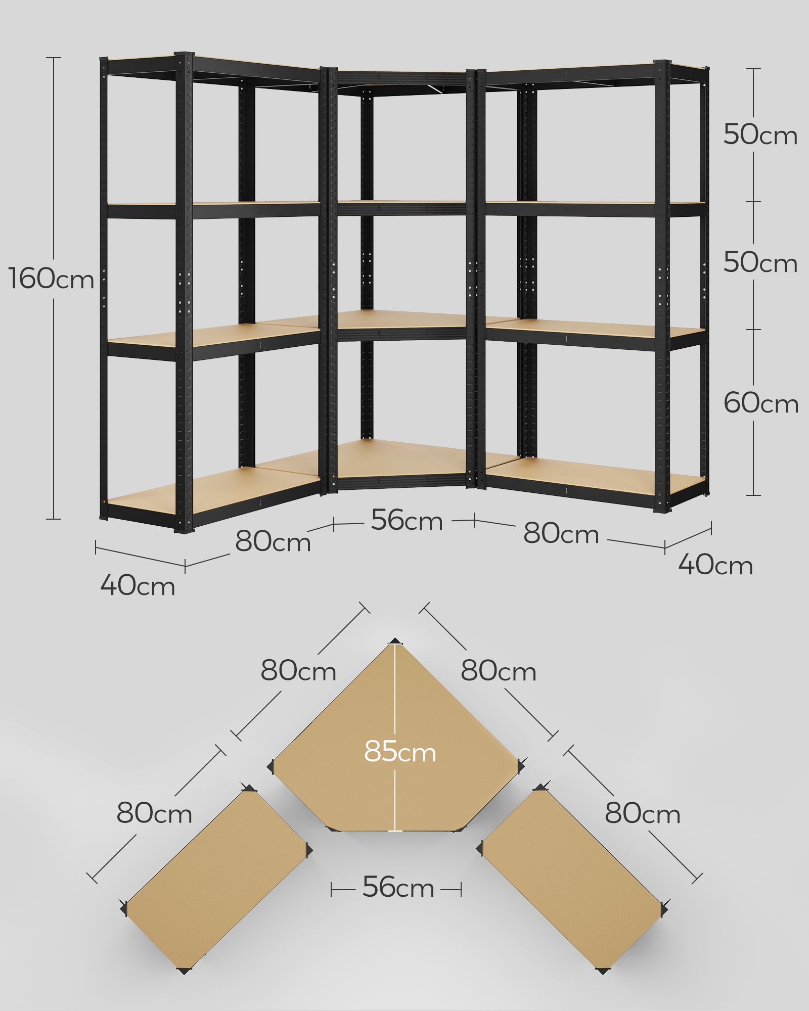 SONGMICS Corner Shelf Set 4 Levels, Heavy Duty Shelf, Metal, Storage Shelf for Garage, Storage Room, Basement Shelf, Load Capacity up to 1500 kg