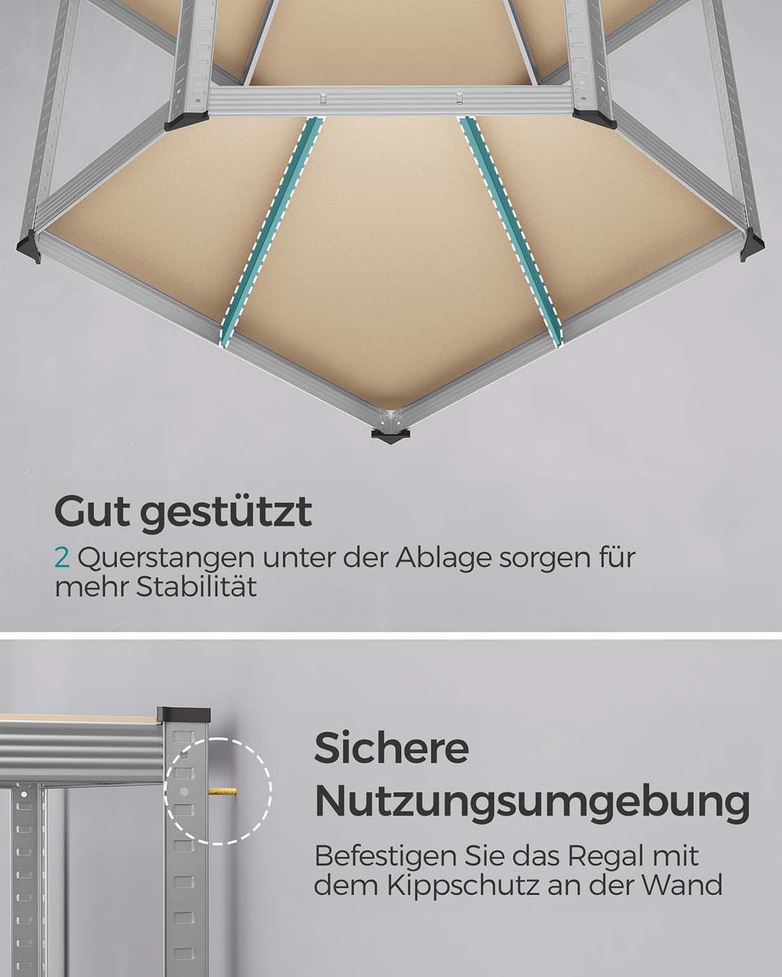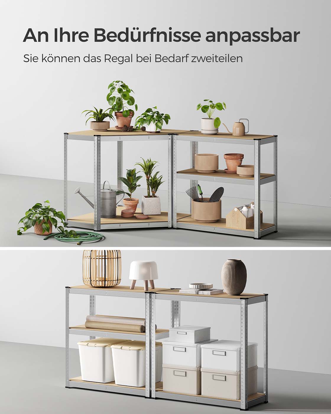 SONGMICS Corner Shelf Set 5 Levels, Heavy Duty Shelf, Metal, Storage Shelf for Garage, Storage Room, Basement Shelf, Load Capacity up to 2625 kg, Silver-Natural Beige GLR070E03