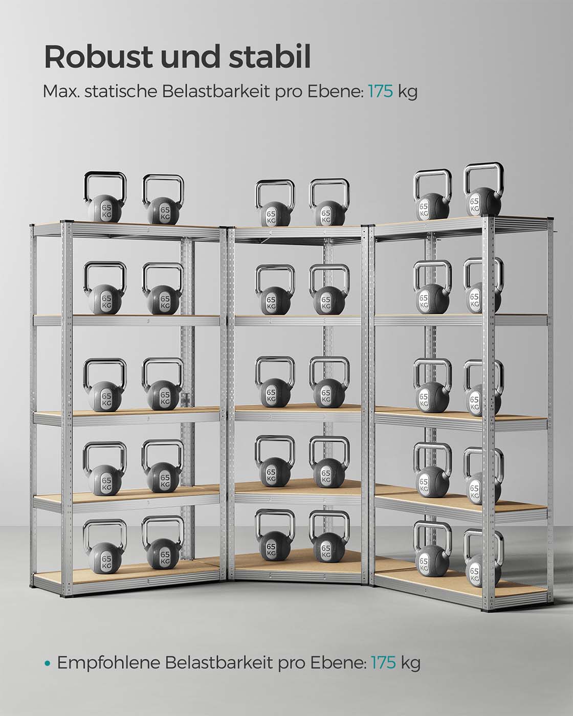 Max. static load capacity per shelf: 175 kg