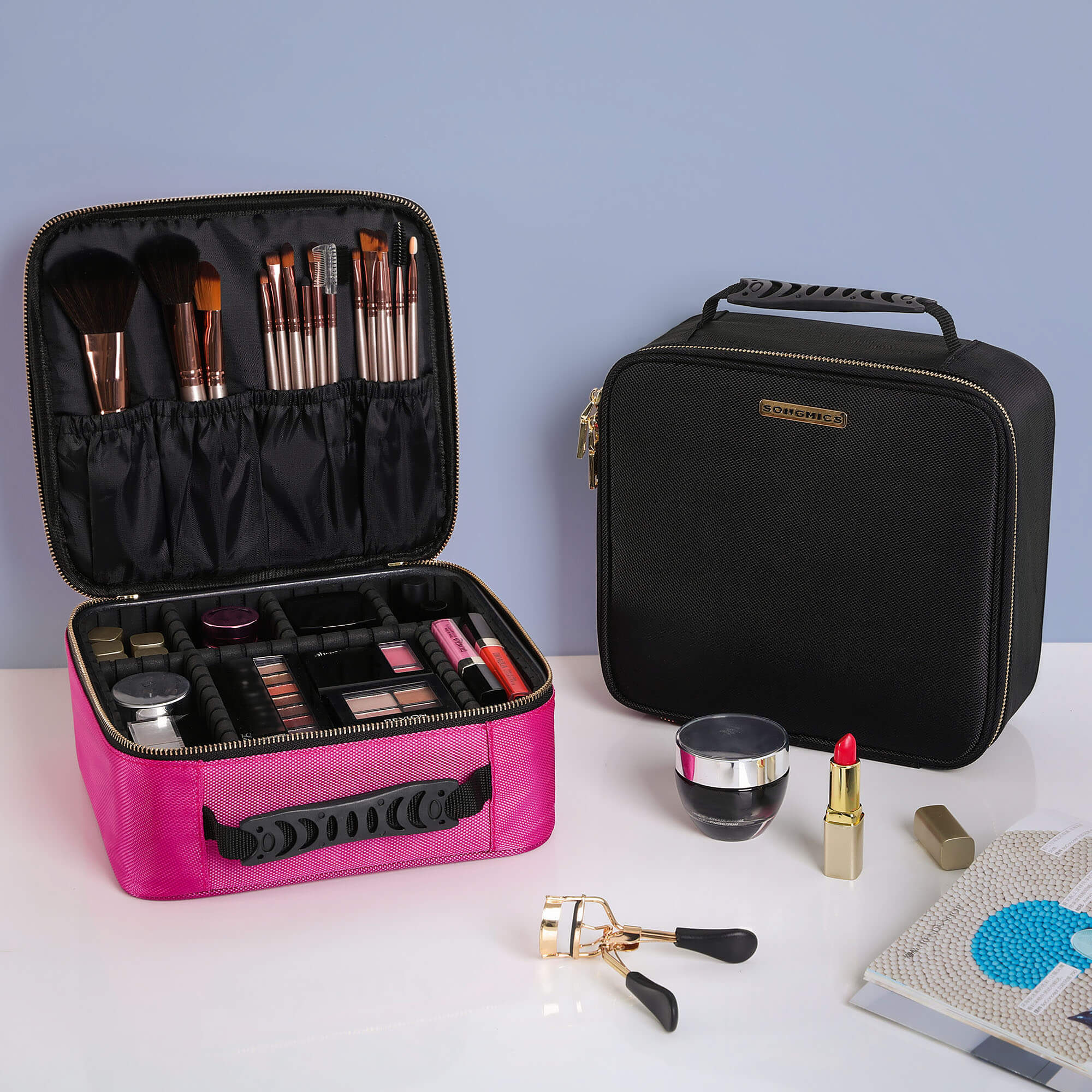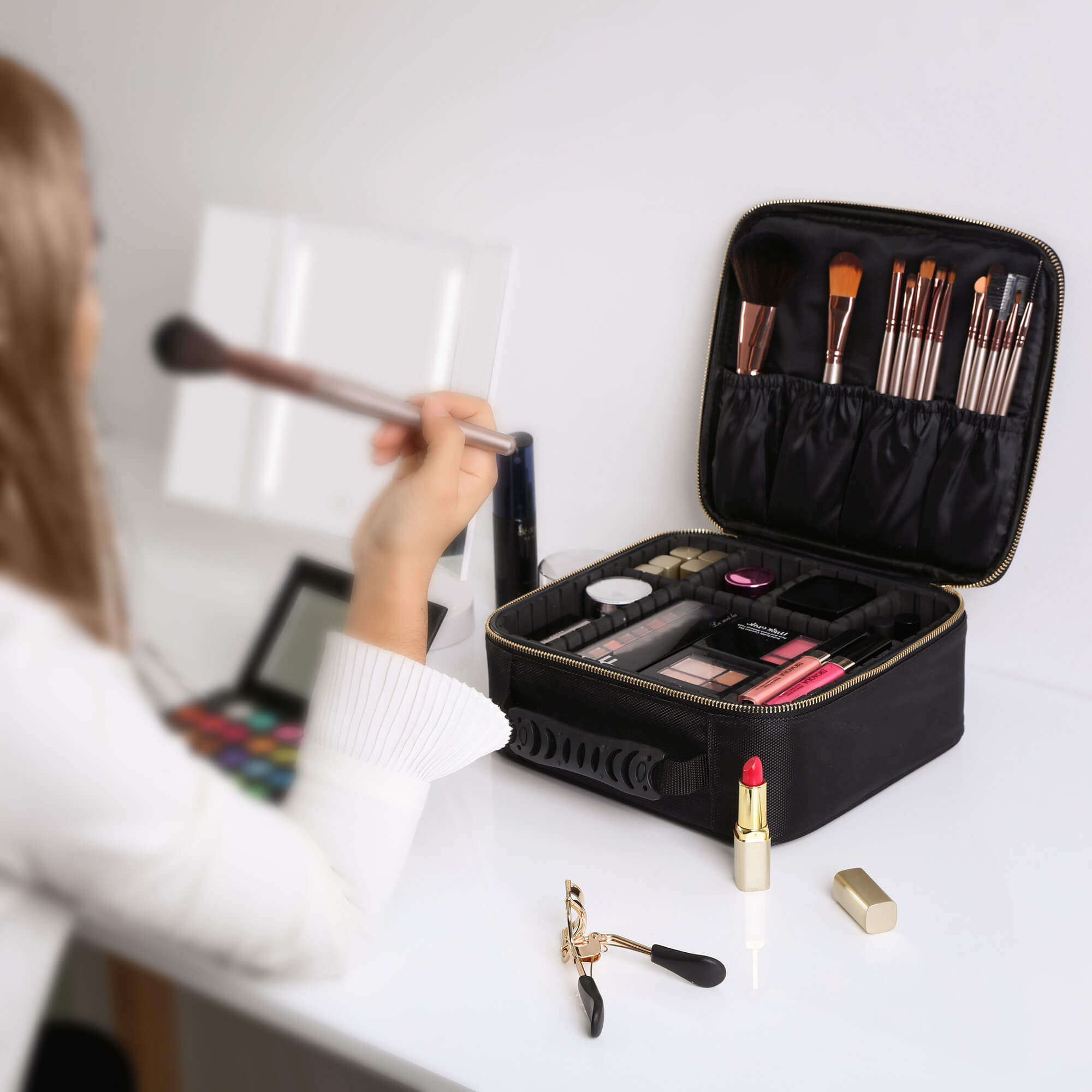 SONGMICS Cosmetics Organizer Makeup Bag Cosmetics Case for Suitcases with Handle (Black)