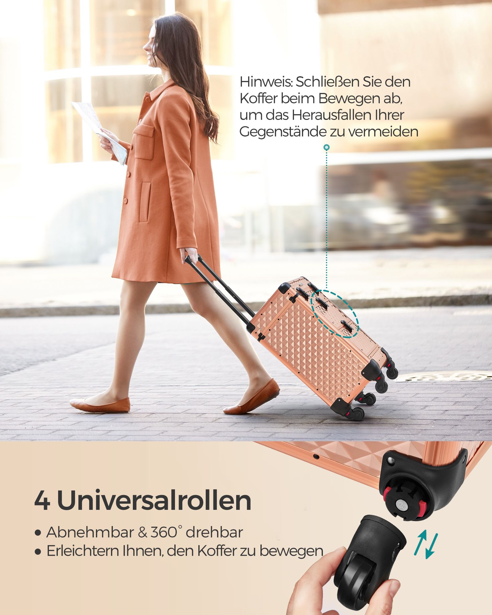 SONGMICS Cosmetics Case Trolley, Makeup Case 2 Drawers, Large Hairdressing Case, Makeup Case, 34 x 24 x 56 cm, 360° Swivel Casters, Travel, Hairdressers, Gift Idea