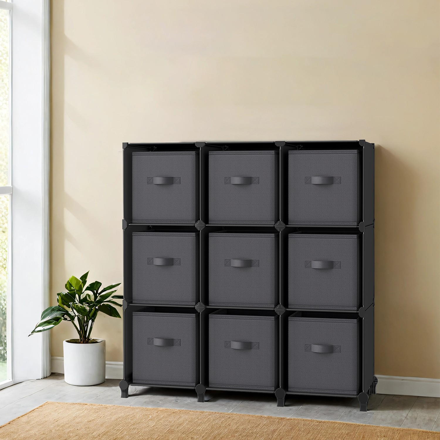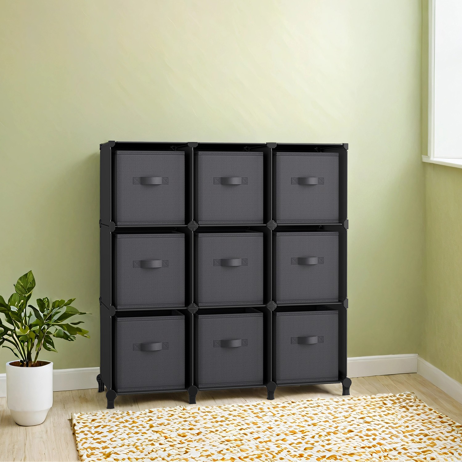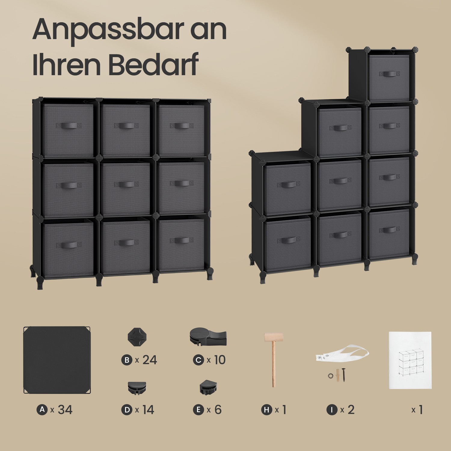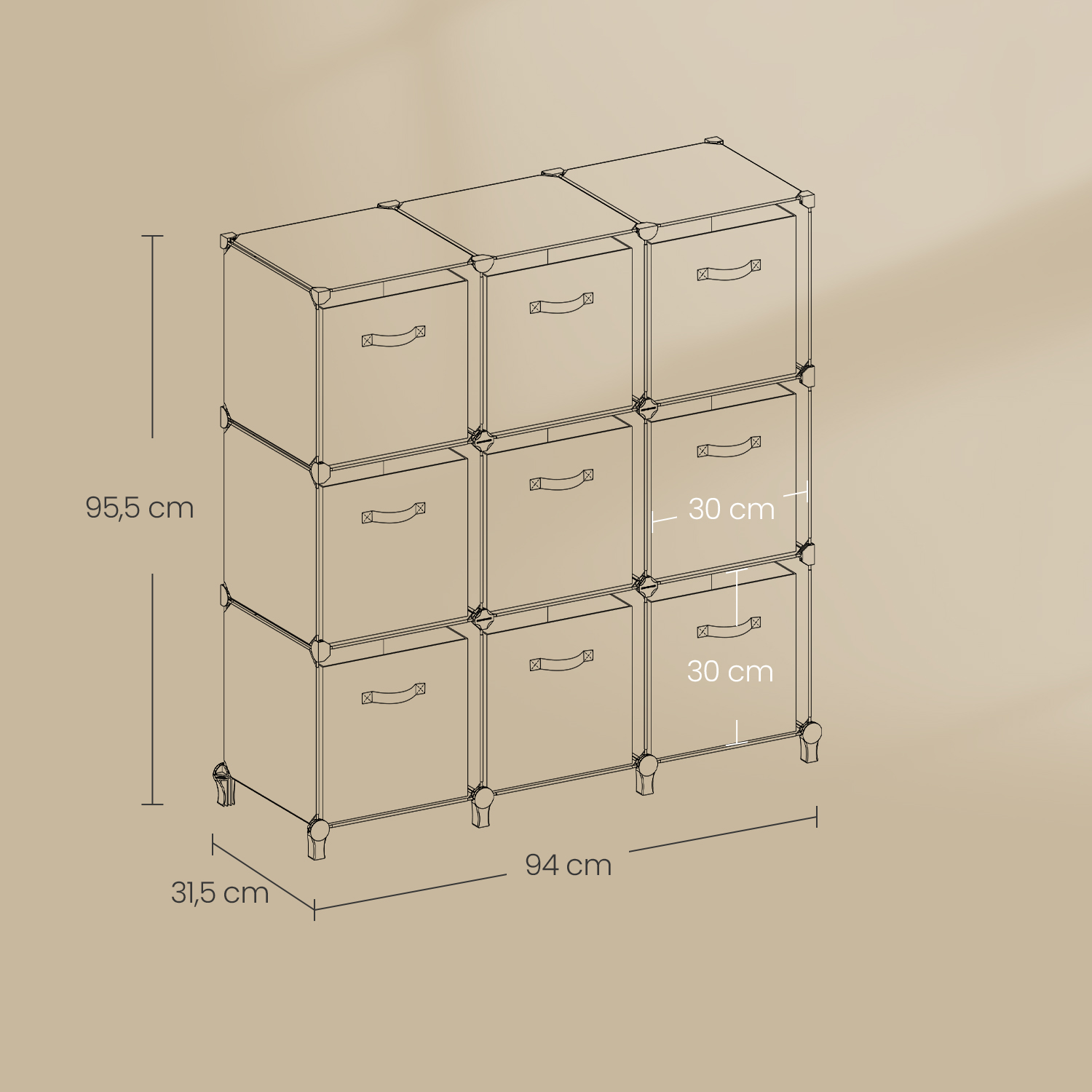 SONGMICS cube shelf with 9 boxes, shelving system, storage shelf with 9 cubes, DIY, expandable, space-saving, bedroom