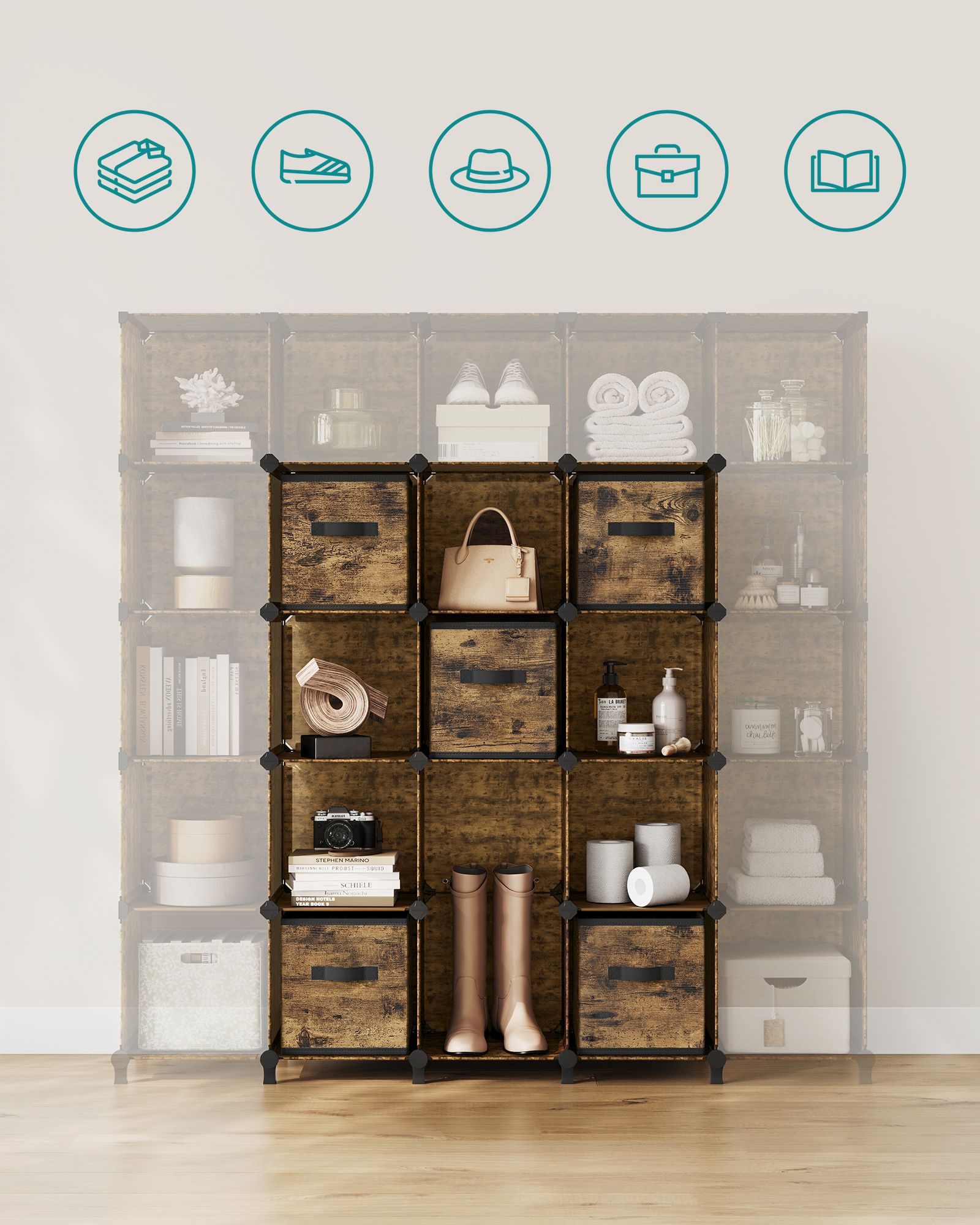 SONGMICS cube shelf with 9 boxes, shelving system, storage shelf with 9 cubes, DIY, expandable, space-saving, bedroom
