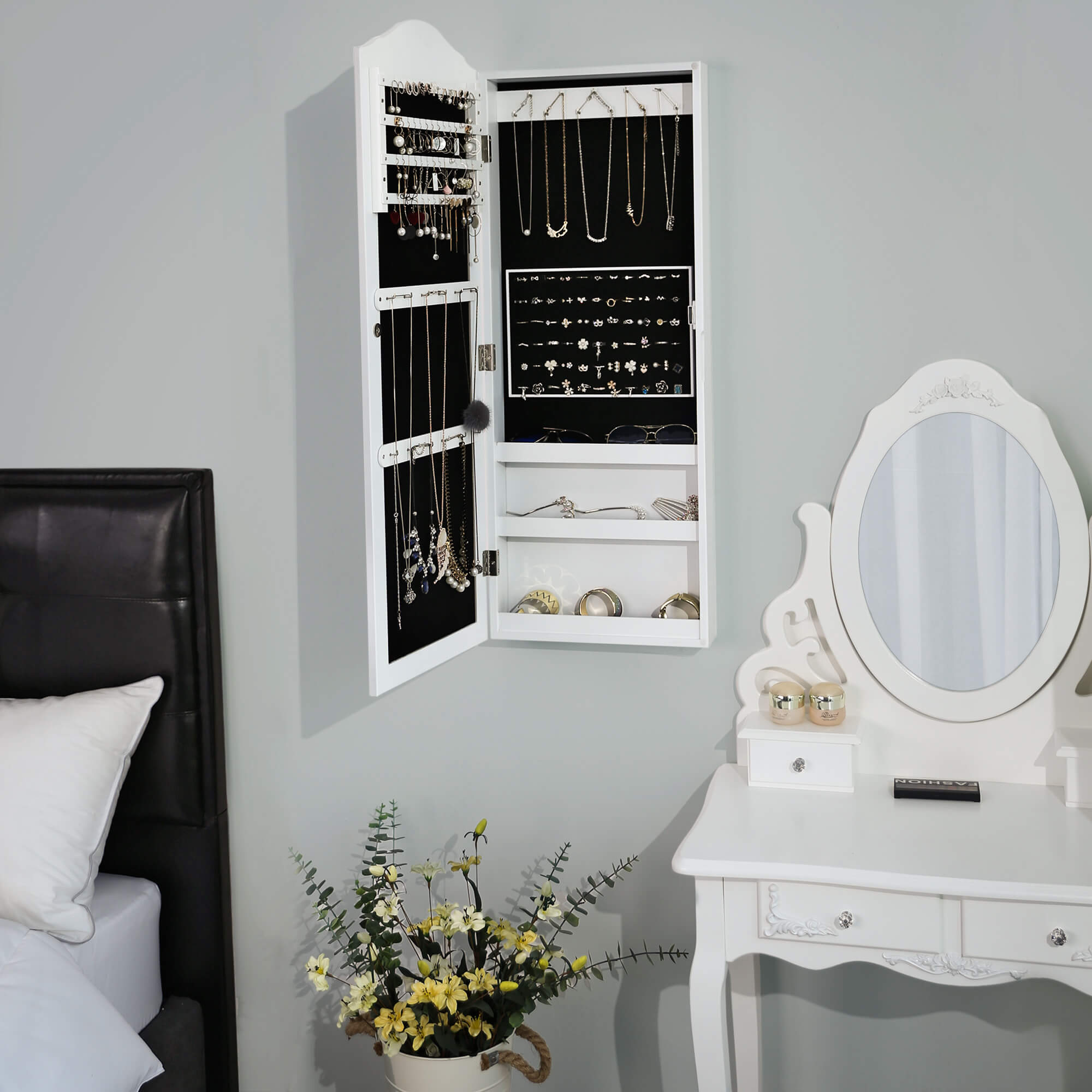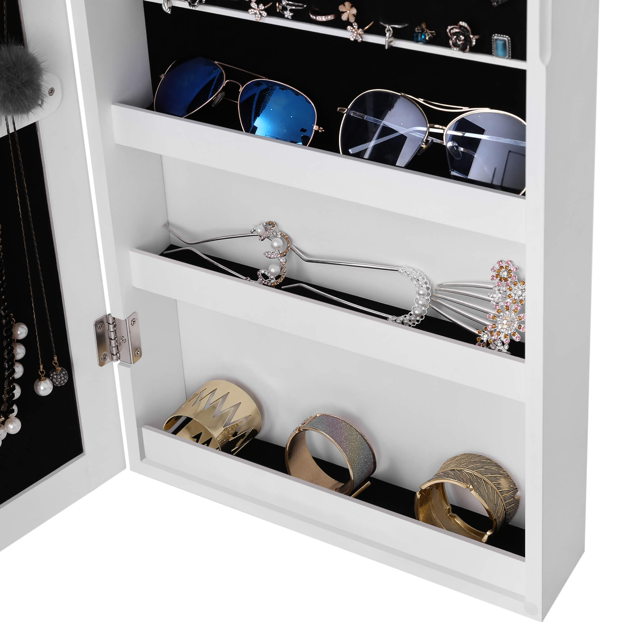 SONGMICS Hanging jewelry cabinet, with mirror and magnetic closure, jewelry storage, jewelry organizer JBC83W