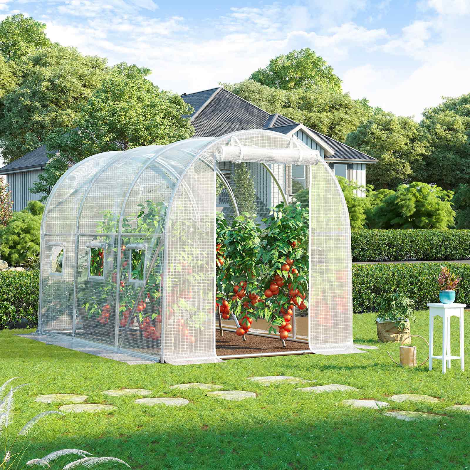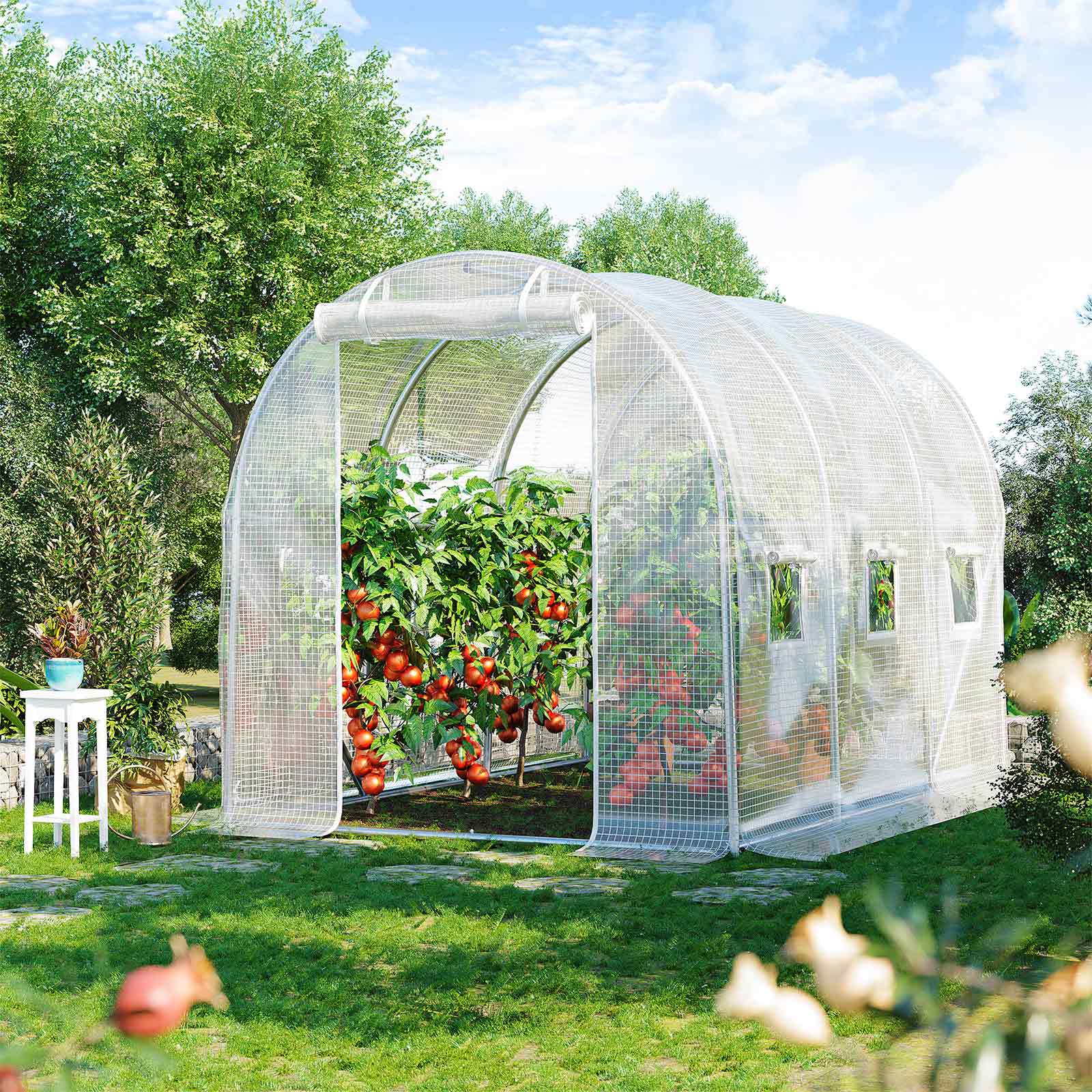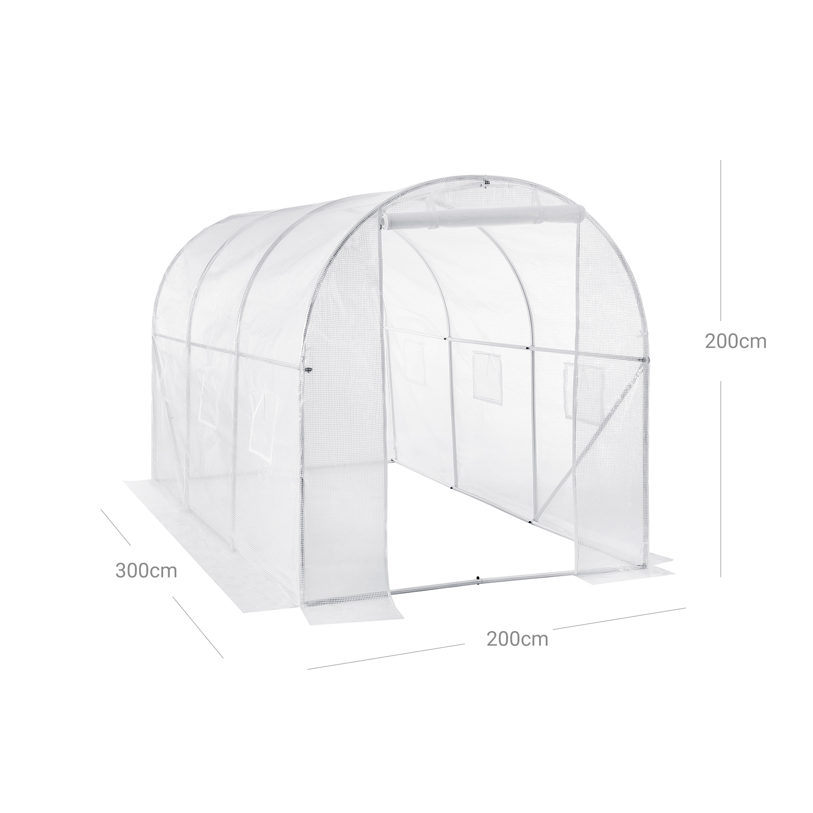 Why should you have a greenhouse? Do you want to sow seeds or grow your favorite flowers in winter? With this greenhouse, you can create a warm and safe paradise for your plants – a must-have for all gardening enthusiasts. Fruit, vegetables, flowers, plants Measuring 300 x 200 x 200 cm, this greenhouse creates a paradise for all plants. You can divide it into different areas, one for your favorite vegetables such as tomatoes and lettuce, one for delicious fruits such as grapes and strawberries, and one for other plants and flowers. With this greenhouse, your garden will remain beautiful even in winter! Product details:- Color: White – Material: Steel, PE – Size: 300 x 200 x 200 cm (L x W x H) – Weight: 22 kg Scope of delivery: – 1 x Greenhouse – 4 x Ground hooks – 1 x Accessory pack – 1 x Instructions (DE, EN, FR, ES, IT)