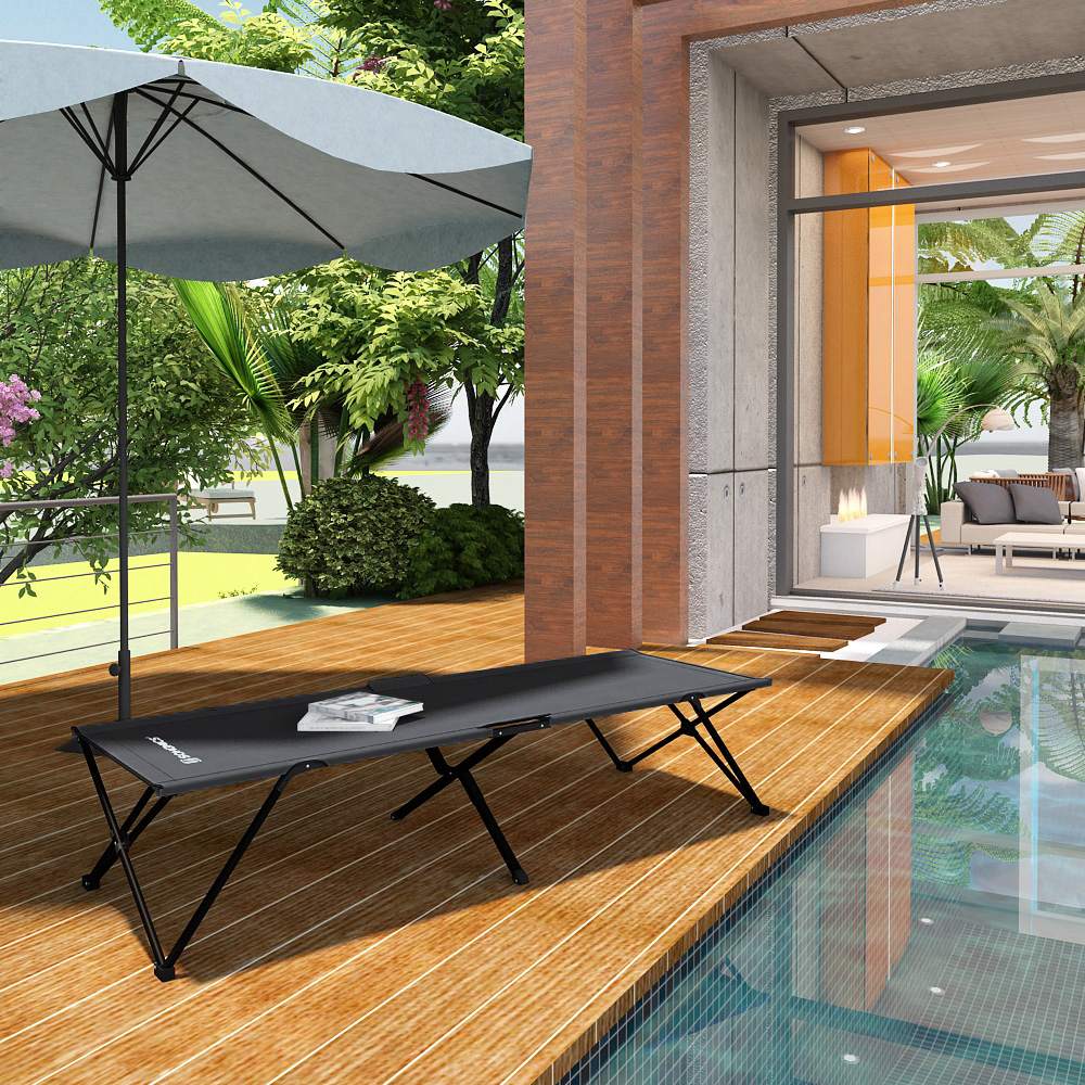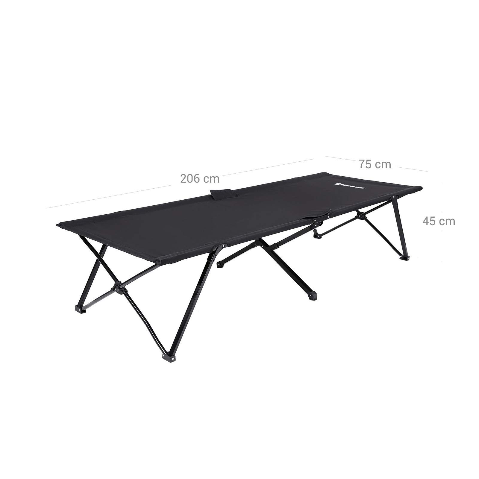 Reliable camp bed with steel frame, easy to handle and simple to set up. With the Songmics camp bed, you can feel the freedom under the starry sky. The great price sets this offer apart from other camp beds. The camp bed is ideal for your camping, hiking, and fishing trips. The extra-large lying surface offers plenty of space. The extra length allows you to lie down comfortably. And without end struts that get in the way of your head or feet when sleeping, the underside of the cover is instead fitted with cross straps for tensioning. It is significantly more comfortable to sleep on than an insulated mat, and its height provides additional protection from the cold ground. It has an easy-to-clean surface and is water and dirt repellent. Together with its exquisite upholstery and timeless design, it contributes to a tasteful ambience and also acts as an attractive eye-catcher. Product details: – Color: black (GCB25H); army green (GCB25J); blue (GCB25L) – Dimensions: 206 x 45 x 75 cm (W x H x D) – Net weight: approx. 8.9 kg – Gross weight: approx. 9.9 kg – Dimensions when folded: 102.5 x 15 x 15 cm – Statistical load capacity with even weight distribution: max. 260 kg Scope of delivery: – 1 x camp bed – 1 x carrying bag
