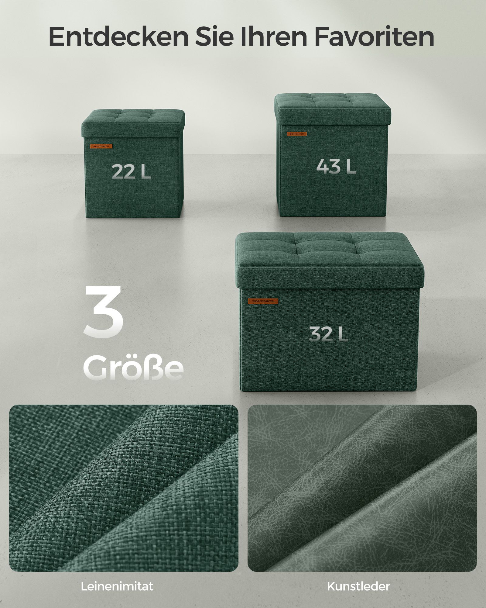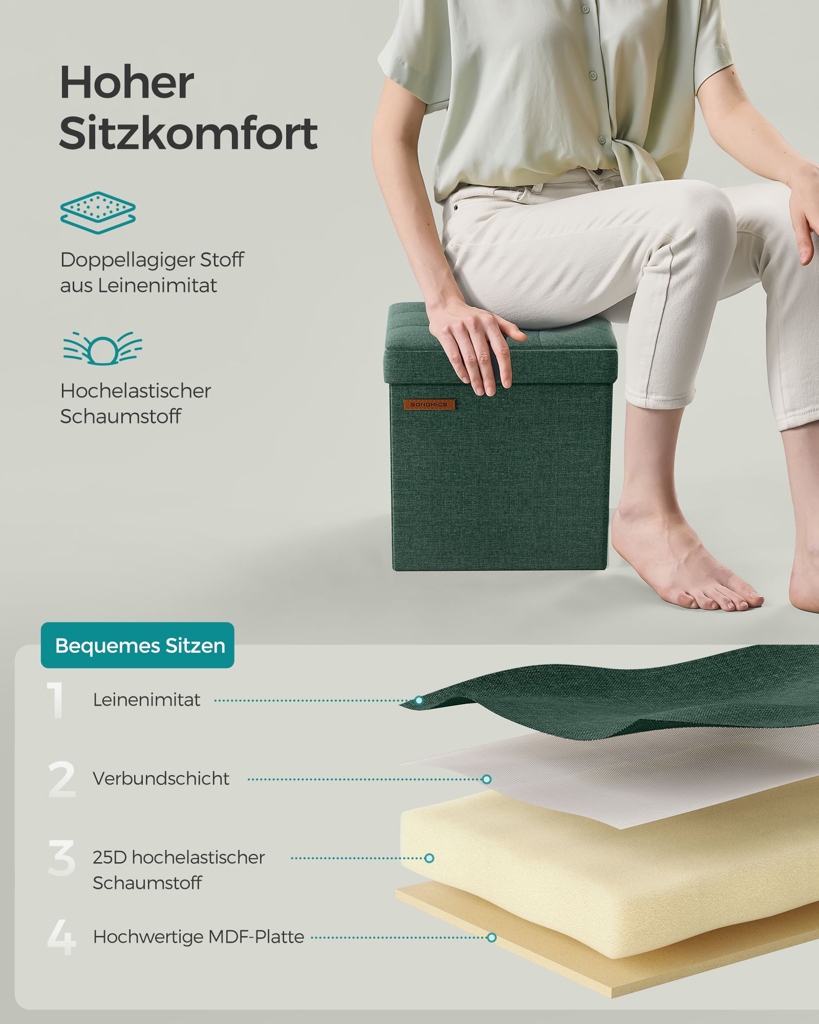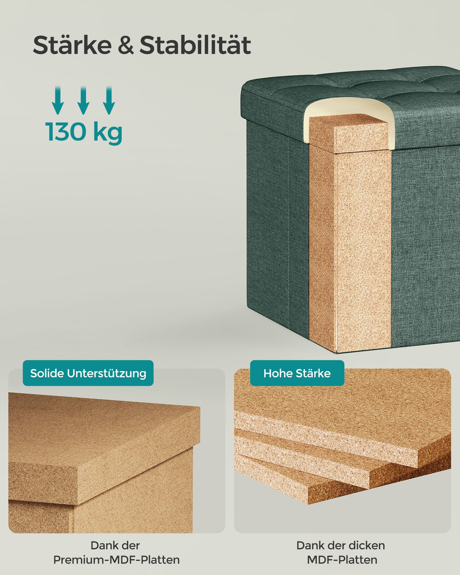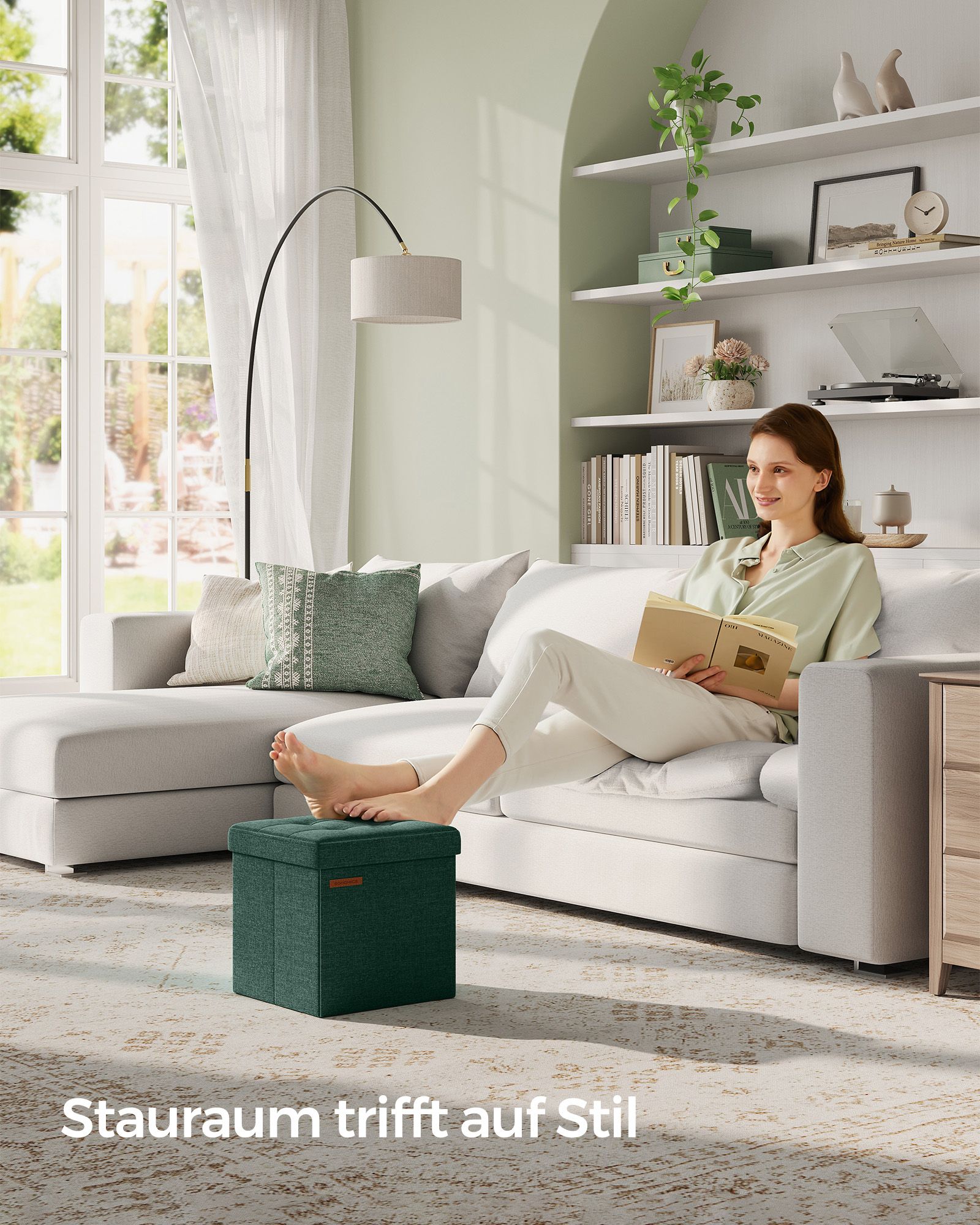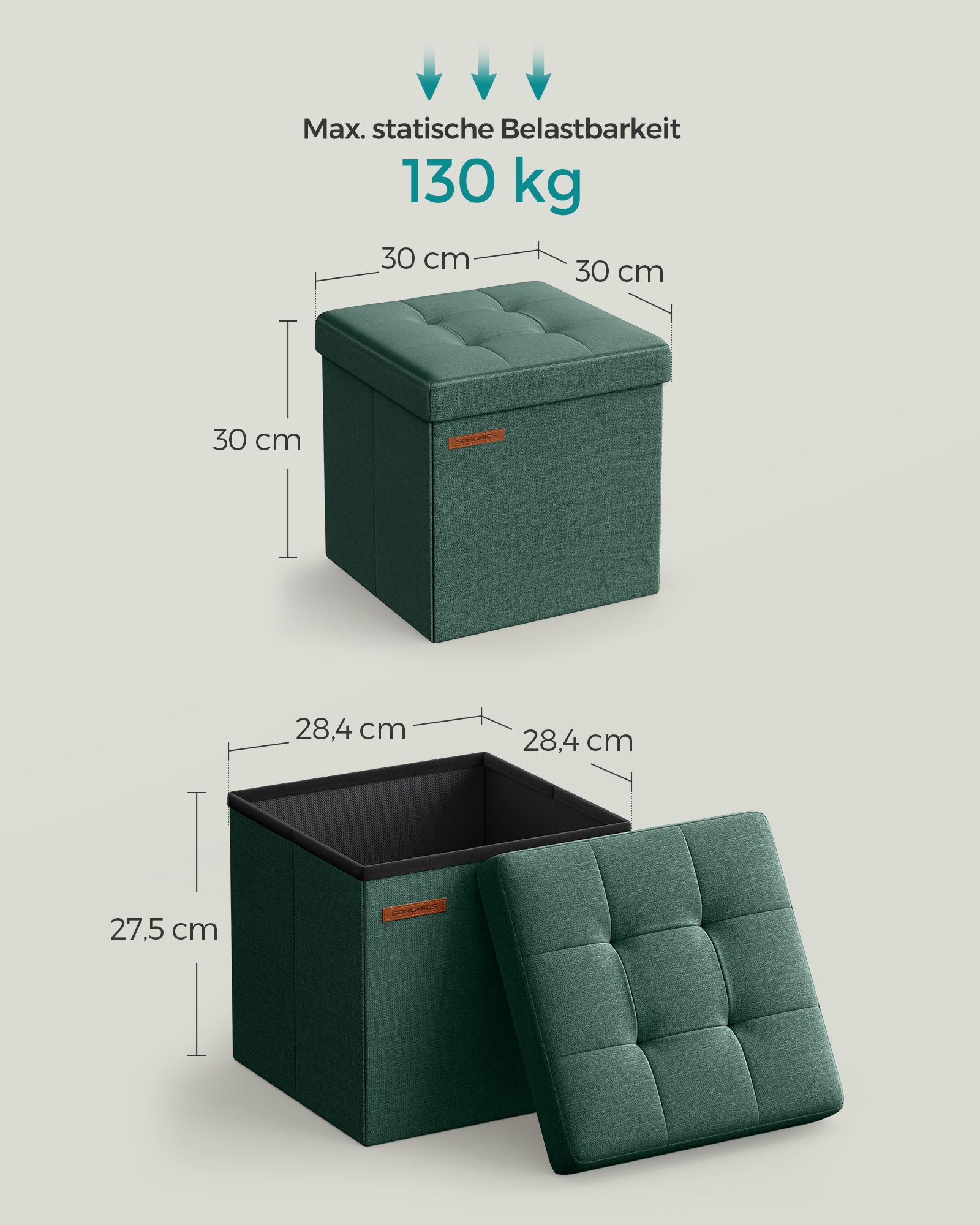 SONGMICS Storage Stool, Foldable Stool, Footstool, Folding Stool, Seat Cube for Living Room, Bedroom, 30 x 30 x 30 cm, Dark Gray LSF028G01