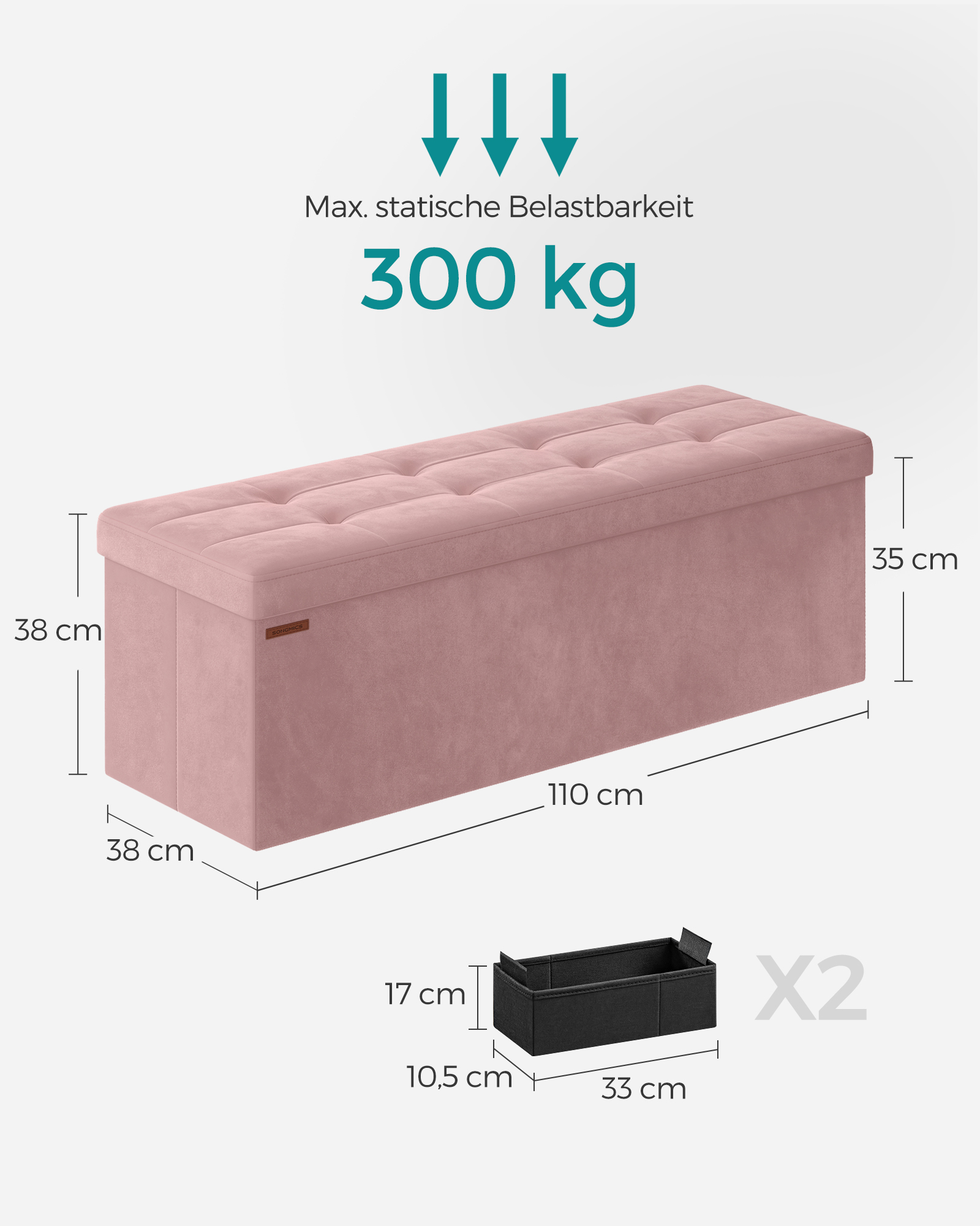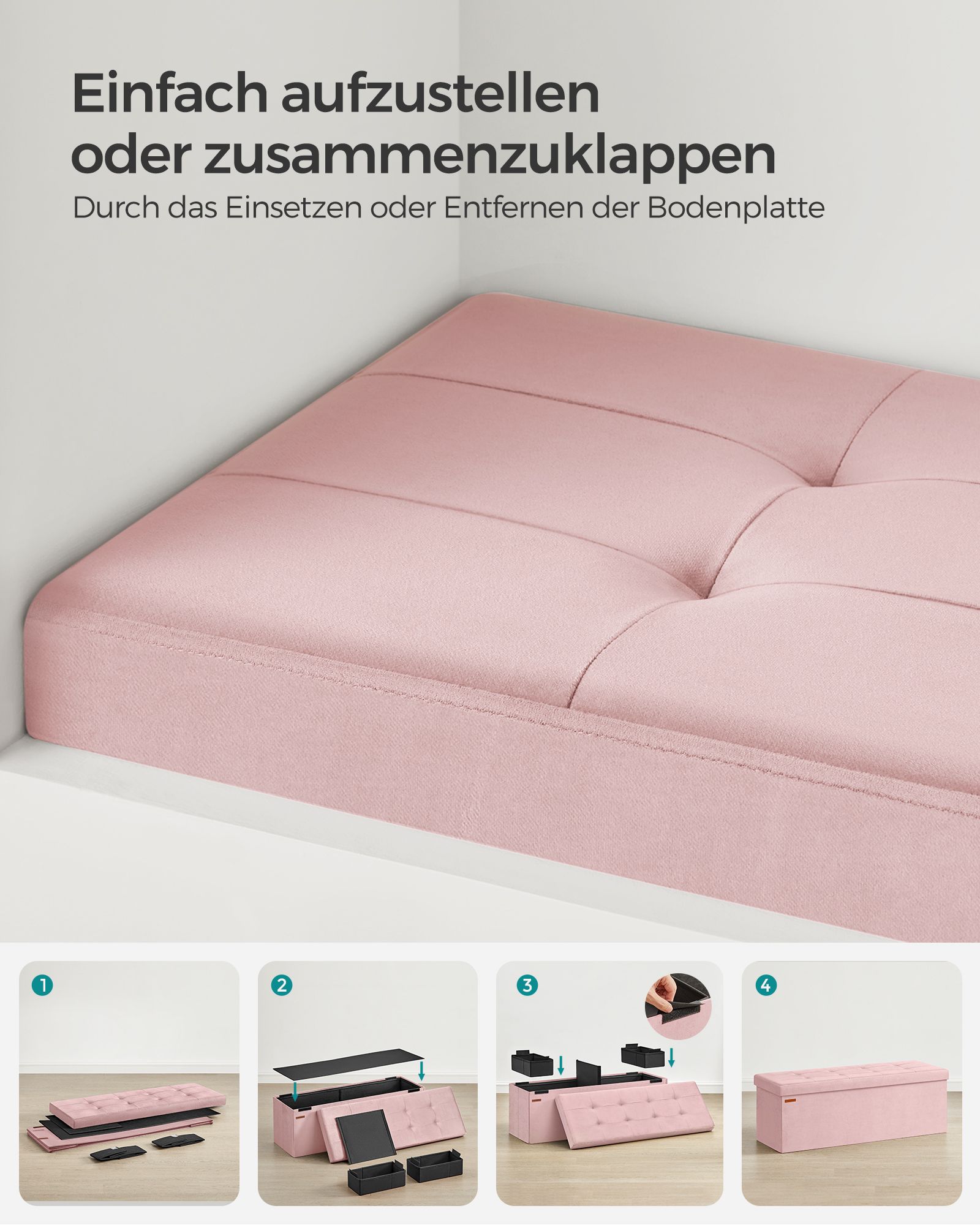 SONGMICS velvet storage bench, folding seat chest, 2 extra storage boxes, for hallway, living room, bedroom