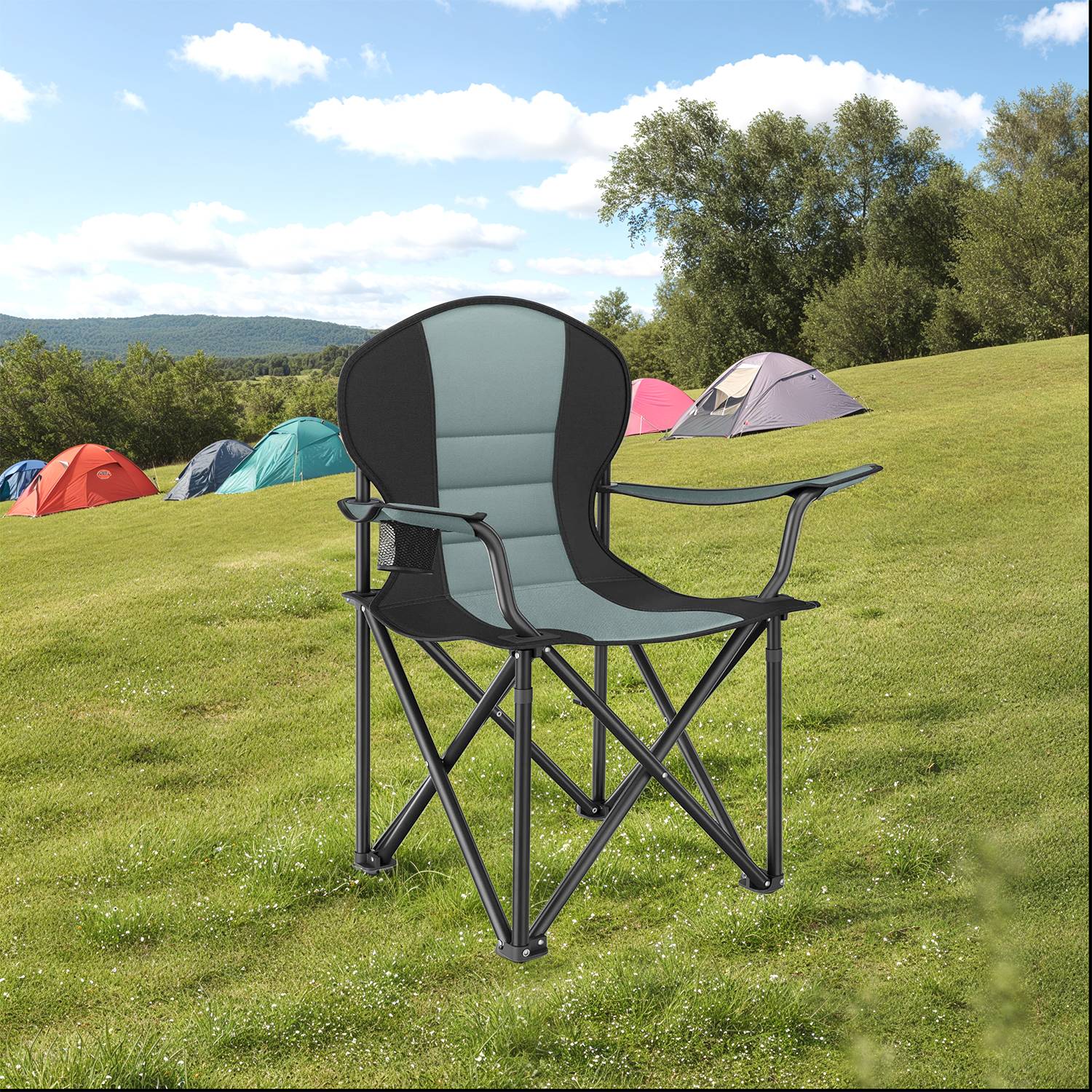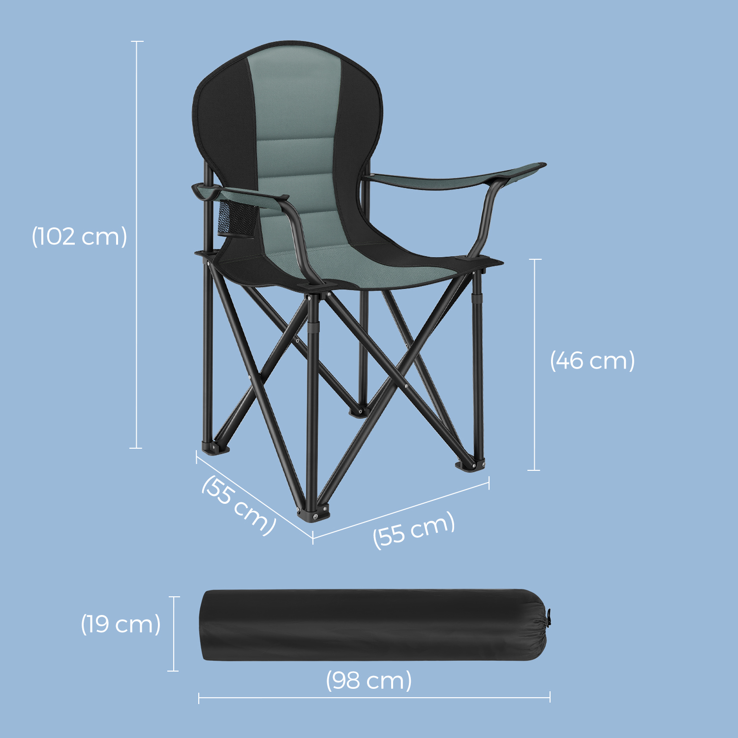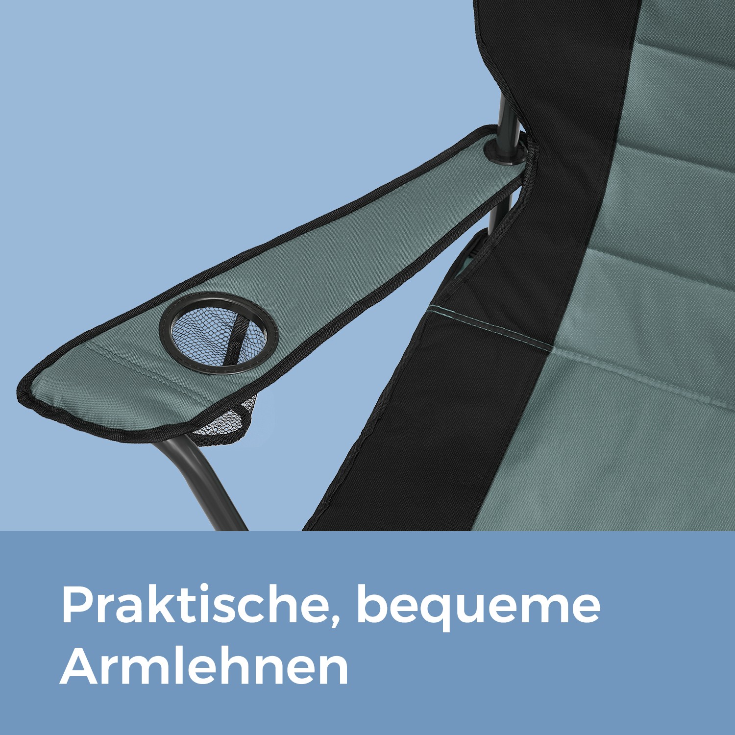 Folding beach chair, camping chair, load capacity up to 250 kg, folding chair with cup holder, foam padding, outdoor chair, green-black