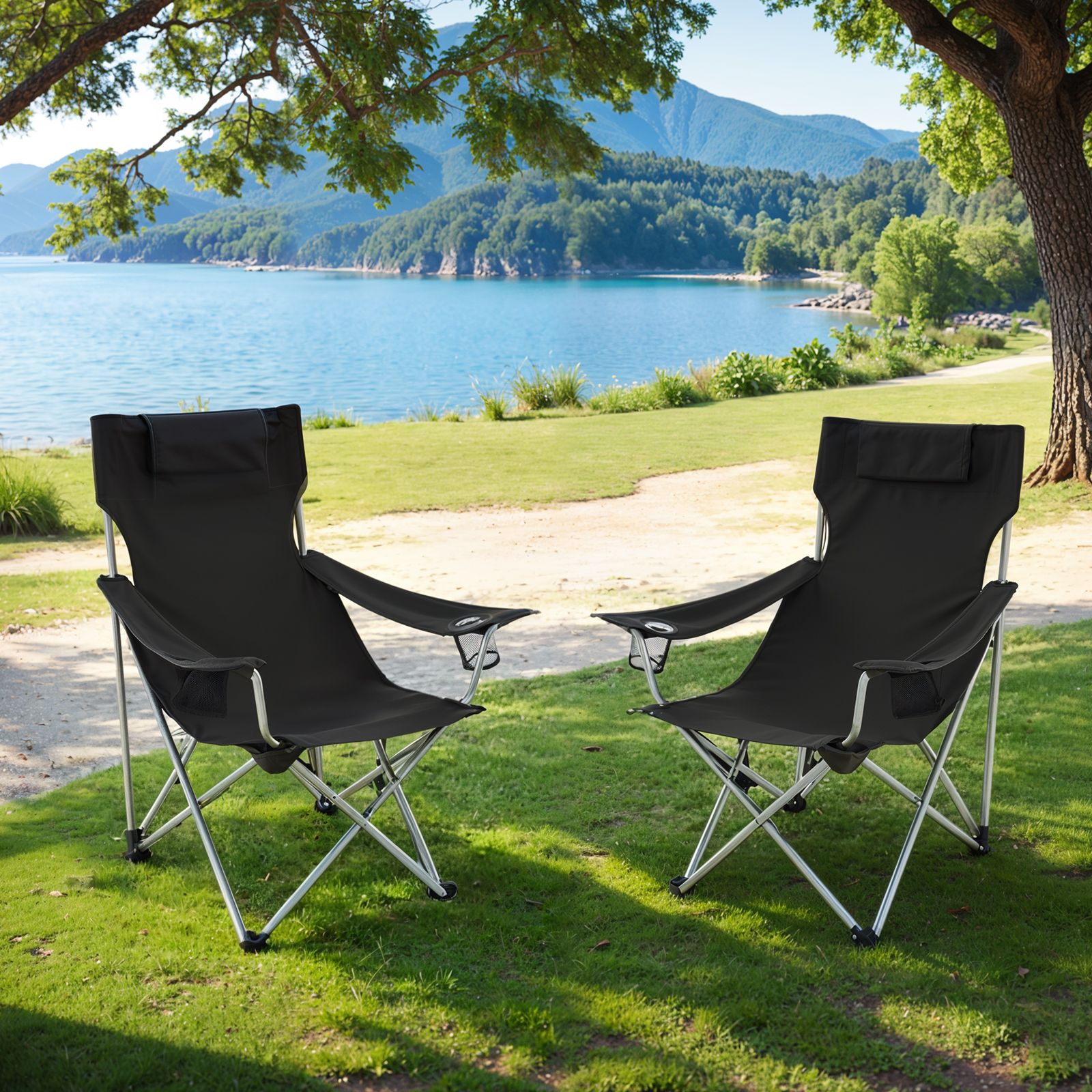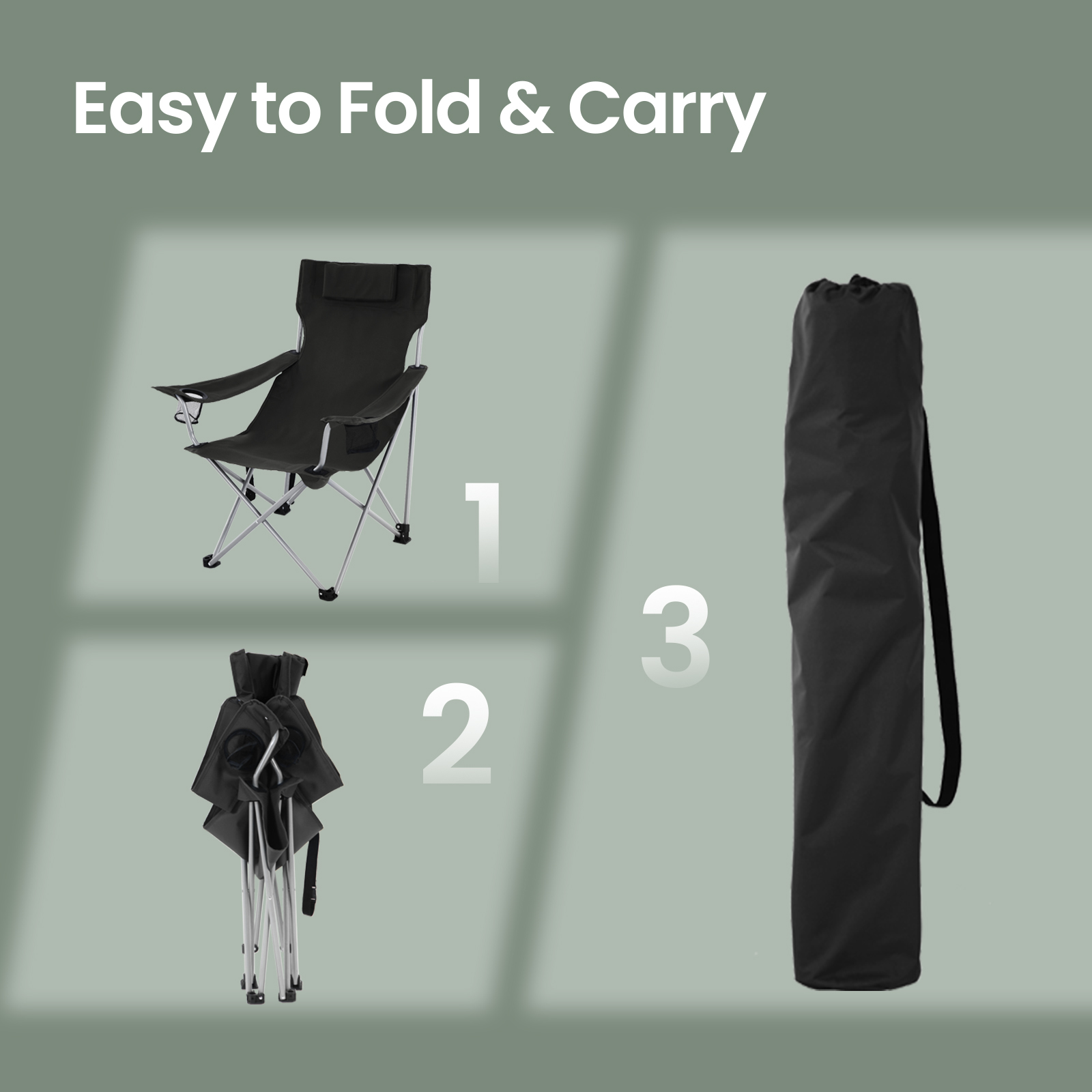 Escape the stresses of working life and immerse yourself in nature. SONGMICS has developed a range of camping chairs to offer you comfort outdoors. Sit down on one of these chairs and relax your body and soul. Comfort in your hand luggage After a long day full of activities, you will surely want to sit down on this outdoor chair, which has a soft headrest and practical armrests, and relax. Are you planning a trip and your destination is far away from the campsite? This chair weighs only 3.8 kg. Simply fold it up and take it with you! Wherever you want This folding chair is hard to beat in terms of versatility. It is perfect for camping trips. However, if you are a passionate angler, you can also take it with you to the river or the sea. This folding chair is also ideal if you want to have a picnic in the park with your family. Product details: – Color: Black – Material: Iron frame, 600D Oxford fabric – Overall size: 81 x 70 x 91 cm (L x W x H) – Package size: 98 x 17 x 15 cm – Weight: 3.8 kg – Max. static load capacity: 150 kg Scope of delivery:- 1 x camping chair – 1 x carrying bag SONGMIES Notes: – The maximum load capacity of the camping chair is 150 kg. Please do not exceed this maximum weight. – Please unfold the camping chair completely before use. – Protect the product from rain; do not expose the camping chair to strong sunlight for long periods of time. Product description